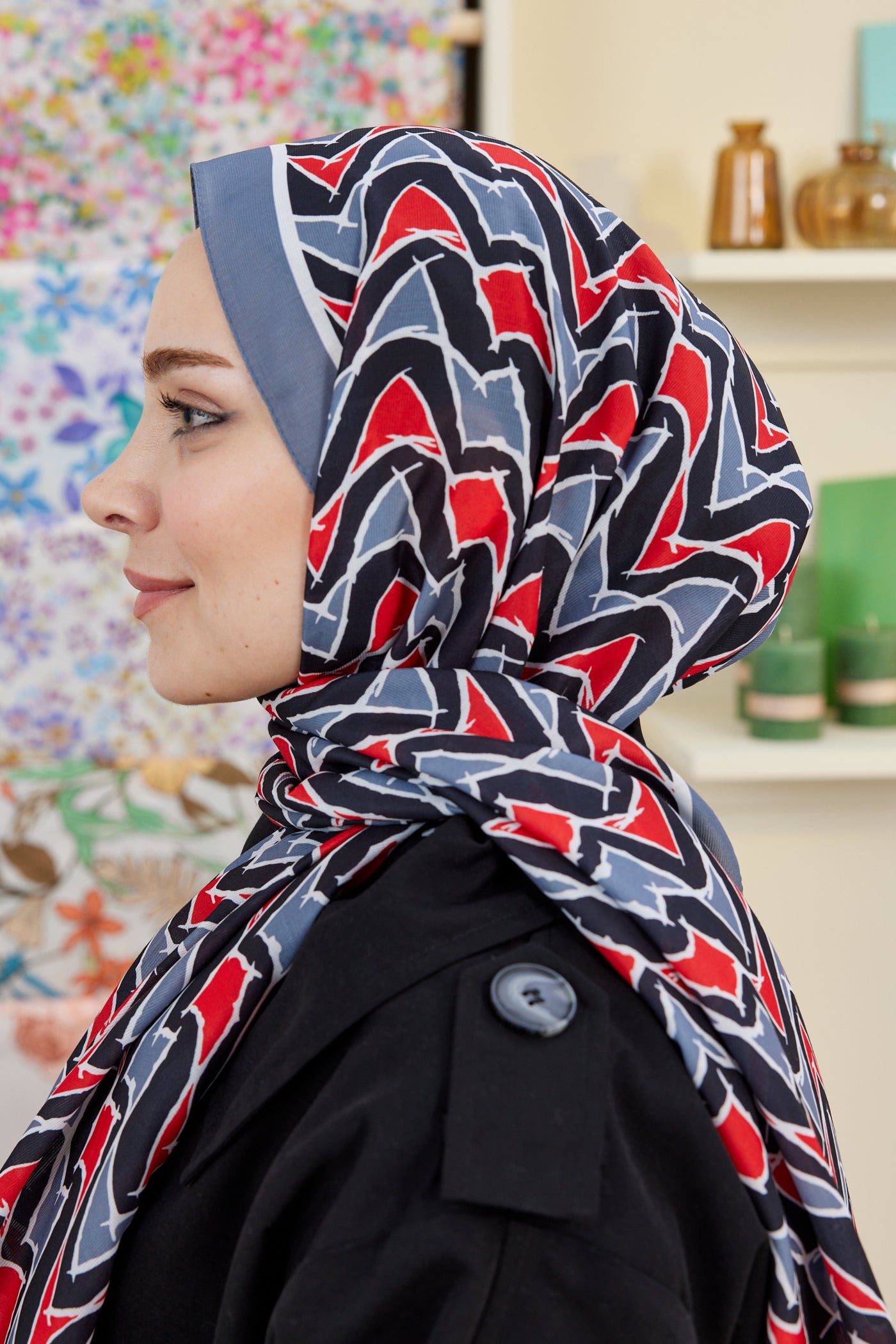 Pro Line Vera Desen Şal - Kırmızı - Gri