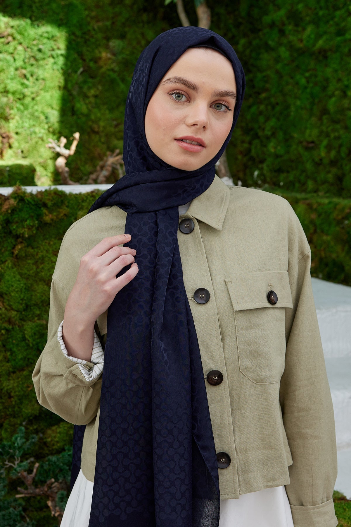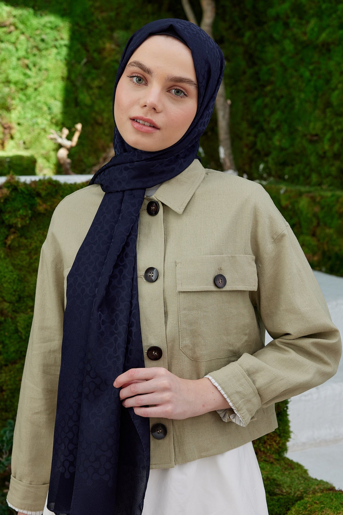 Jakar Janjan Koza Desen Şal - Koyu Lacivert