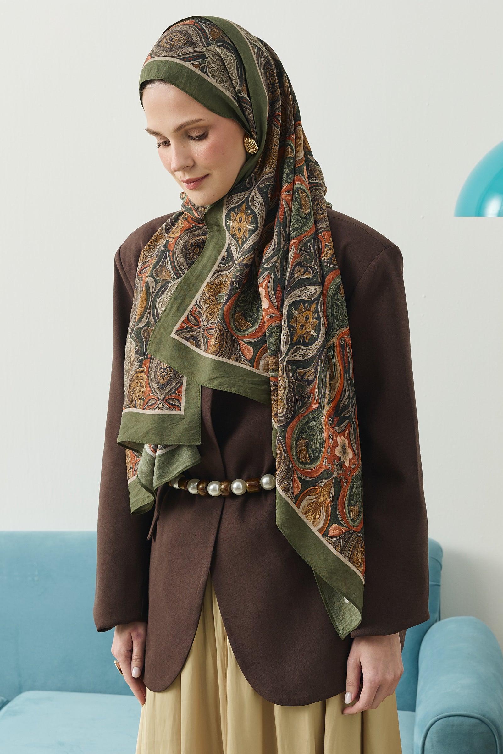 Koleksiyonda yer alan desenler; floral, geometrik ve etnik motiflerin modern yorumlarıyla zenginleştirilmiştir. Bu çeşitlilik sayesinde sade kombinleri tamamlayan zarif ve dikkat çekici bir stil sunar.