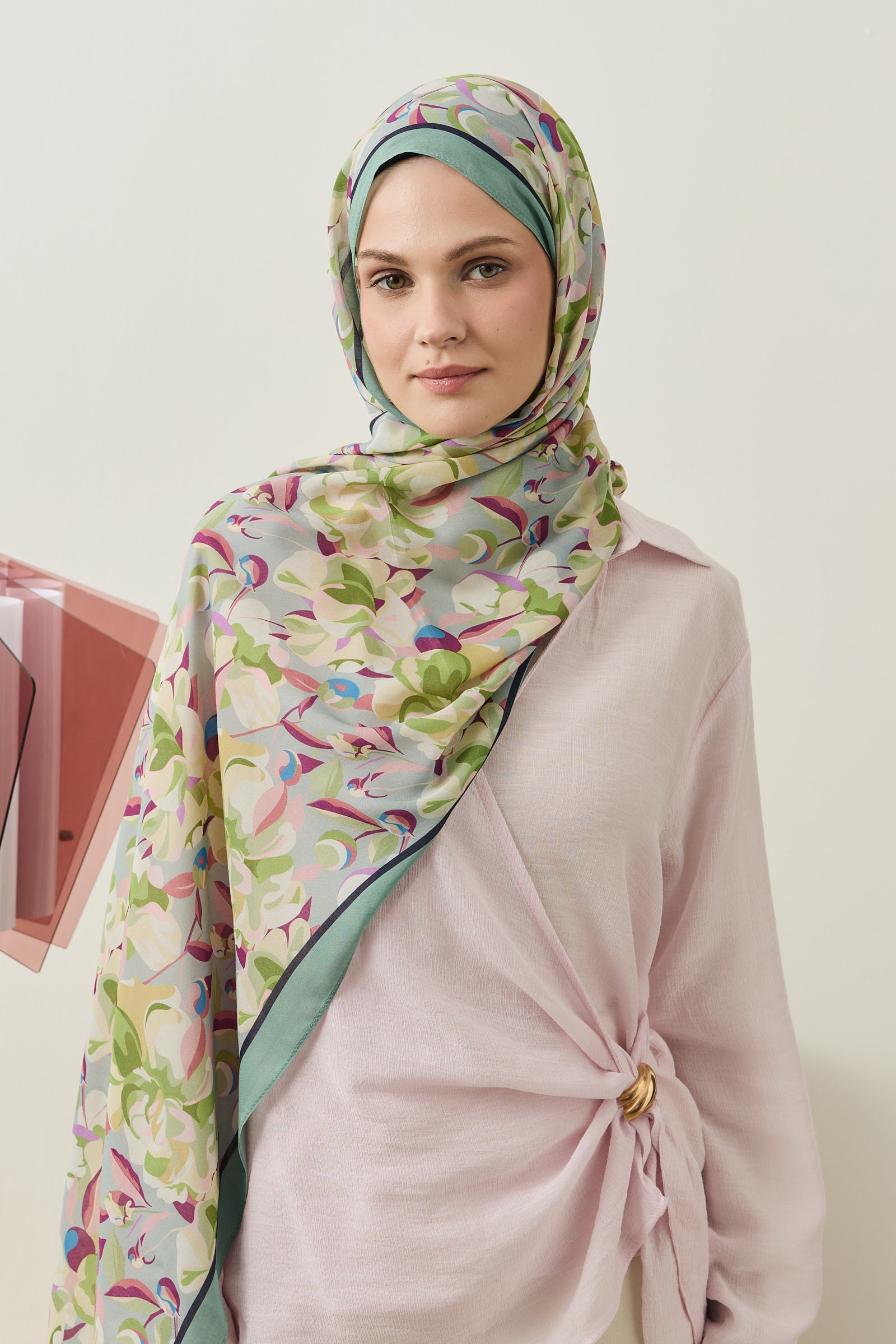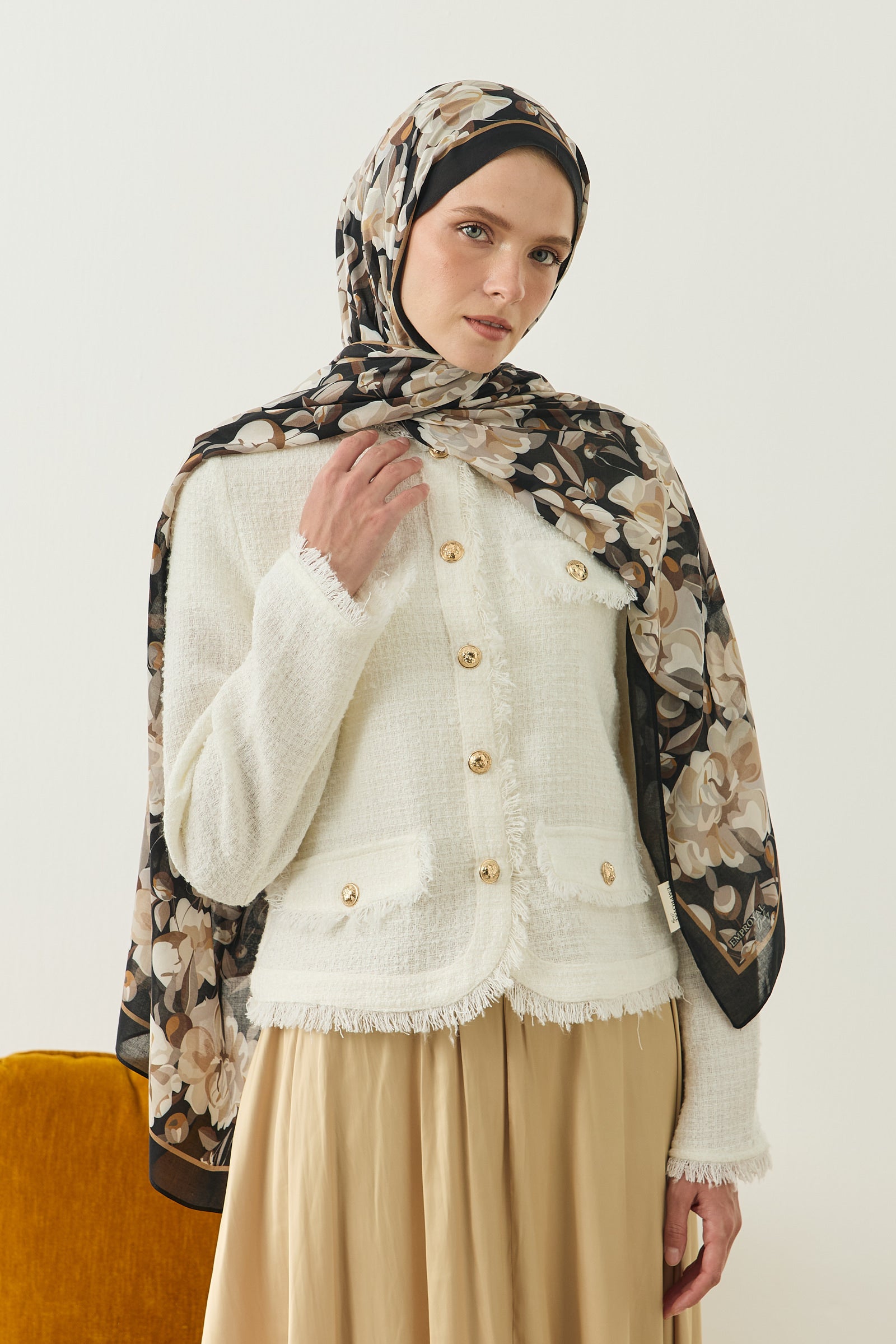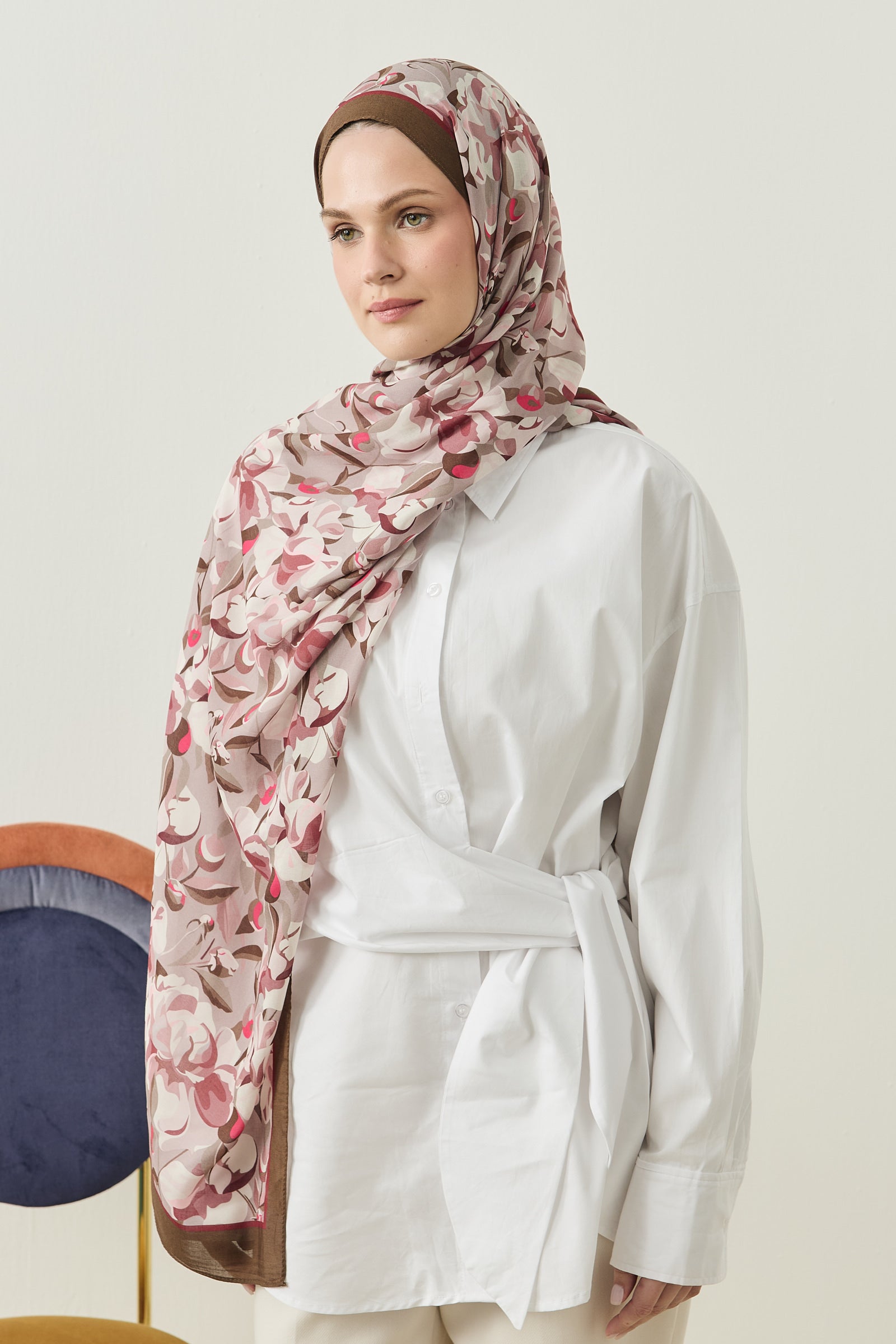 Organik Pamuk Saria Desen Şal Koleksiyonu, zarif ve dengeli desen yapısıyla sade ama dikkat çekici bir stil sunar. Akıcı ve düzenli formu, şallara modern ve estetik bir karakter kazandırırken günlük kombinlerle kolayca uyum sağlar.
