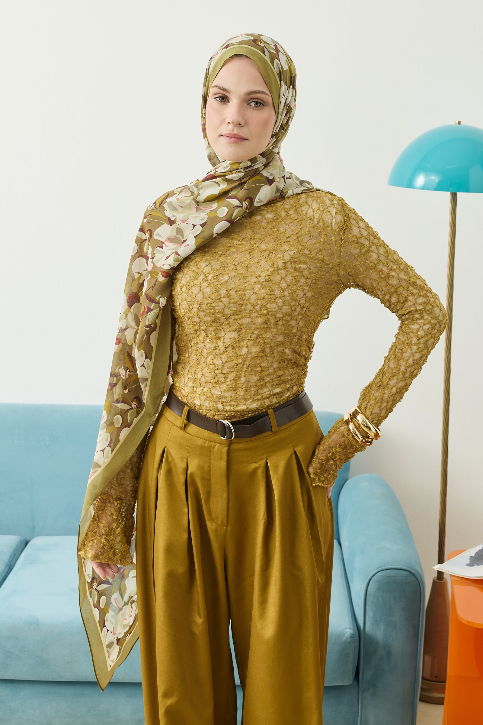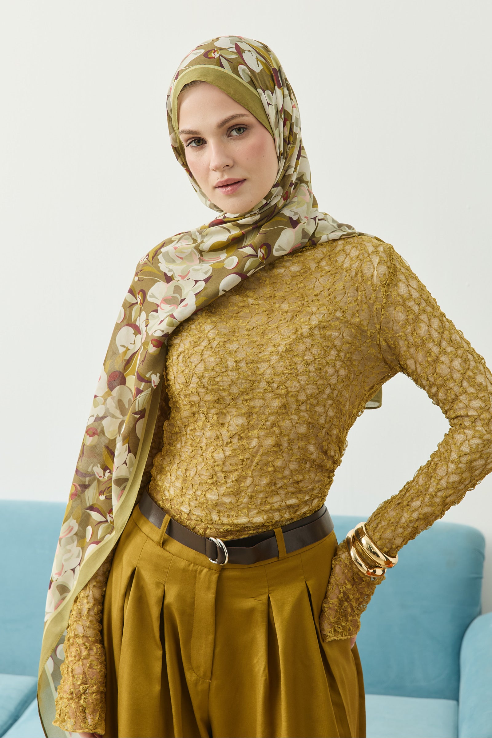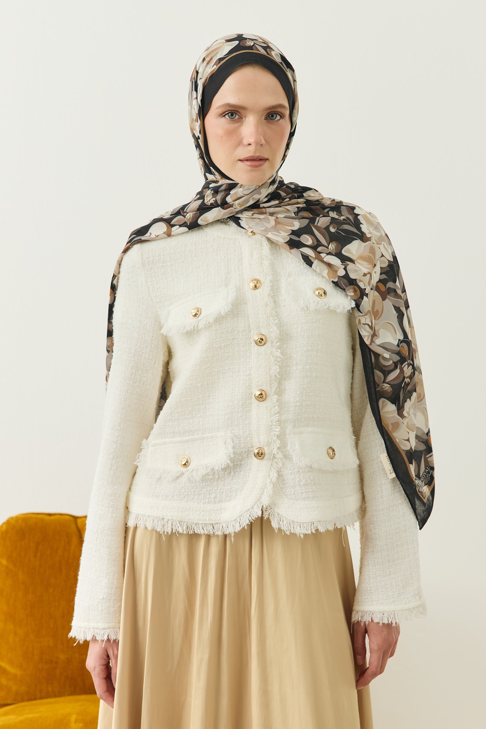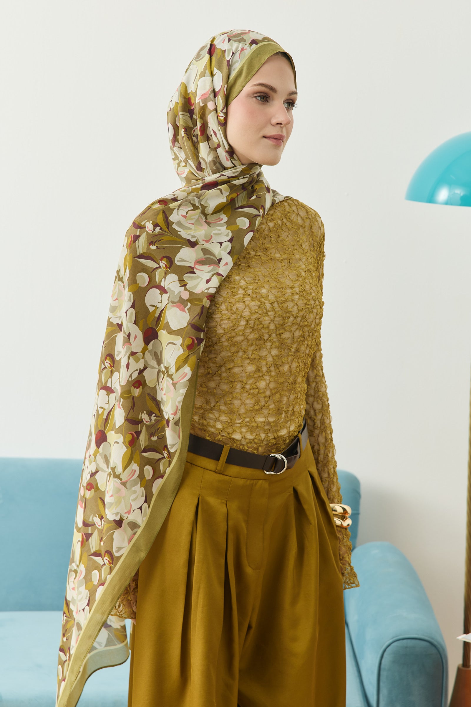 Organik Pamuk Saria Desen Şal Koleksiyonu, zarif ve dengeli desen yapısıyla sade ama dikkat çekici bir stil sunar. Akıcı ve düzenli formu, şallara modern ve estetik bir karakter kazandırırken günlük kombinlerle kolayca uyum sağlar.