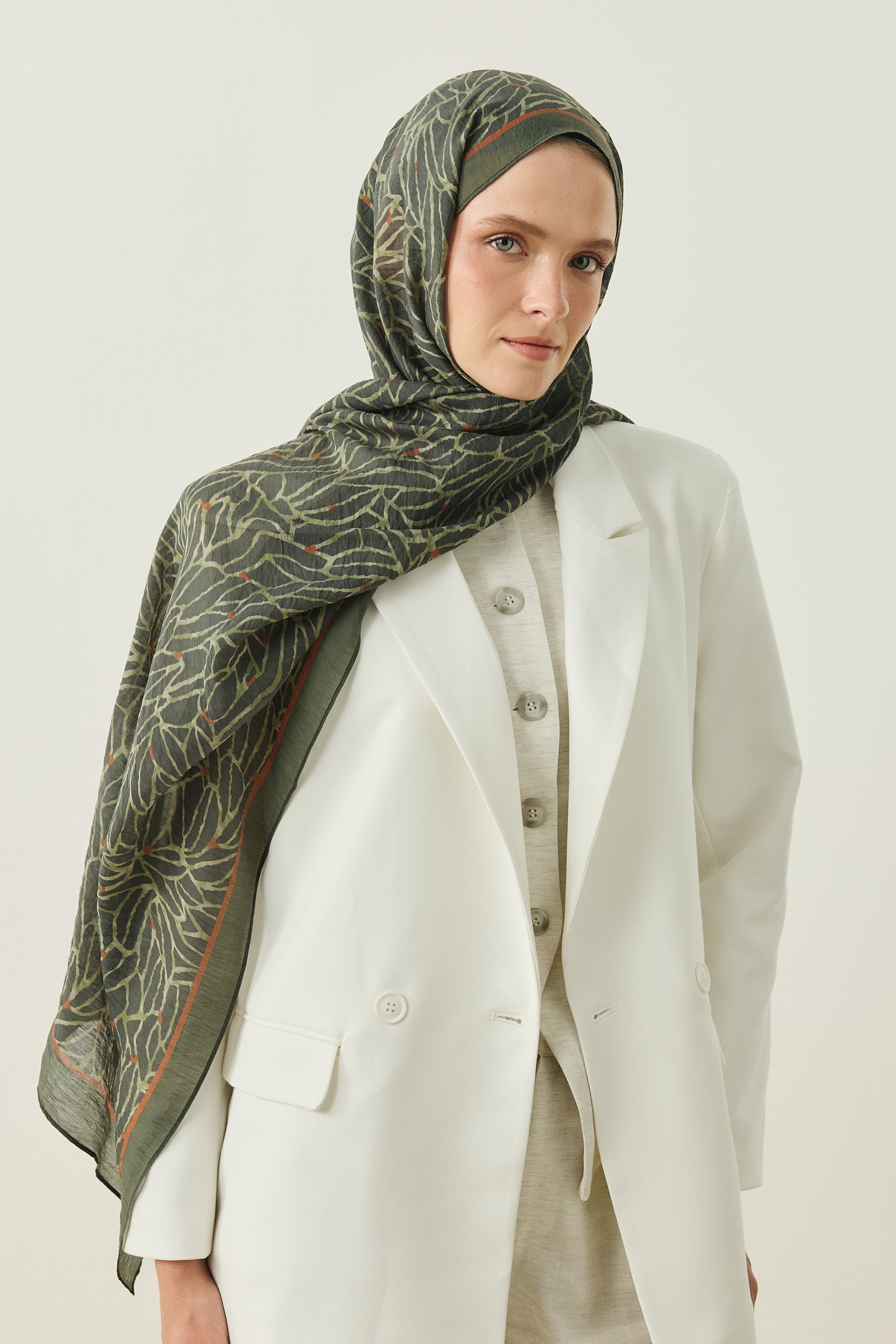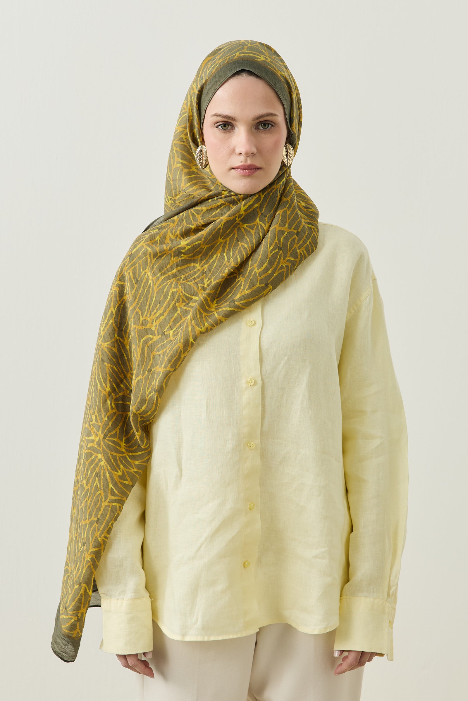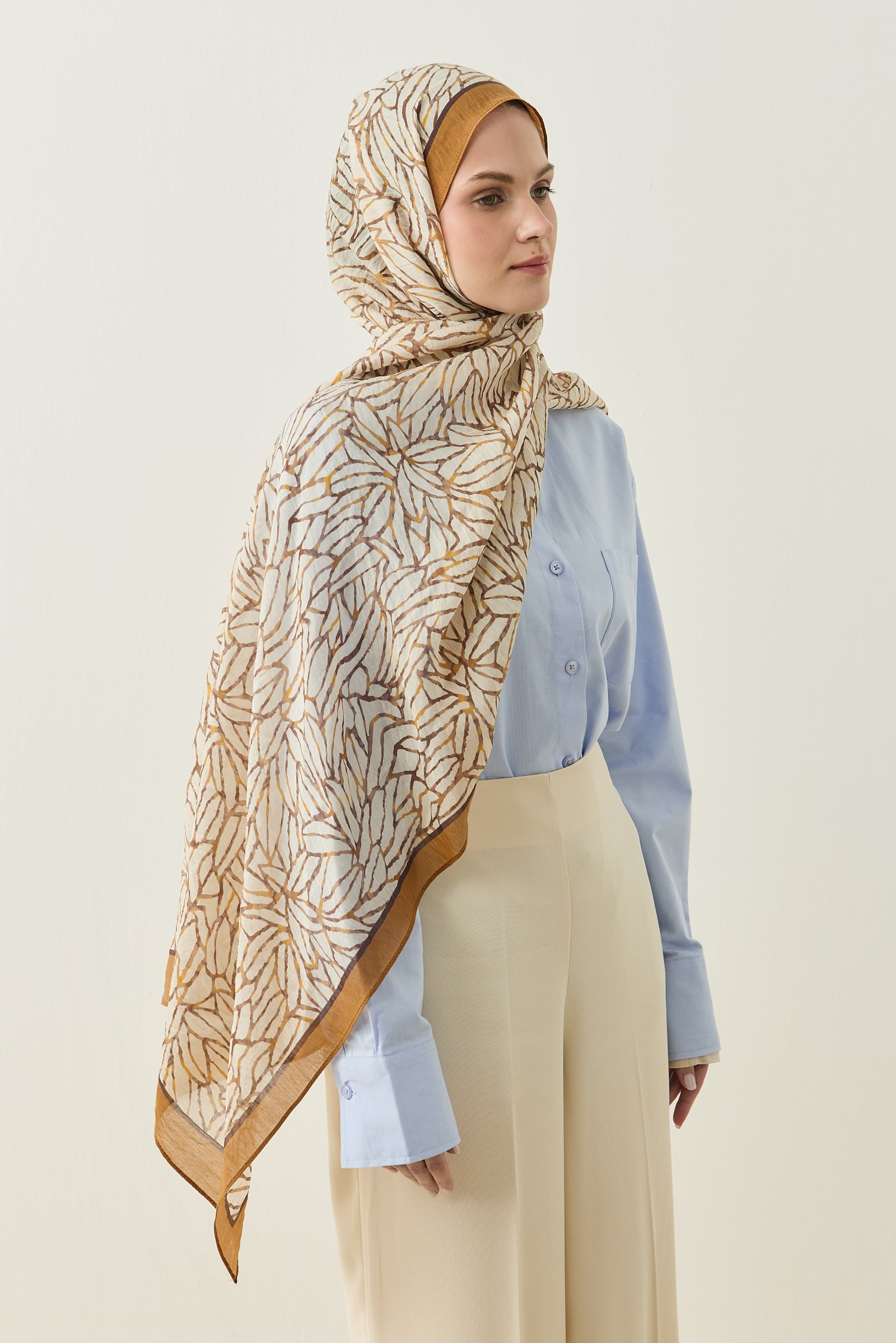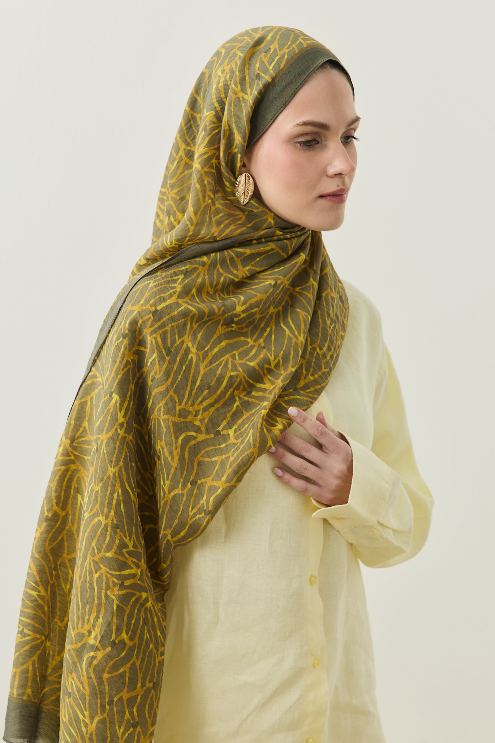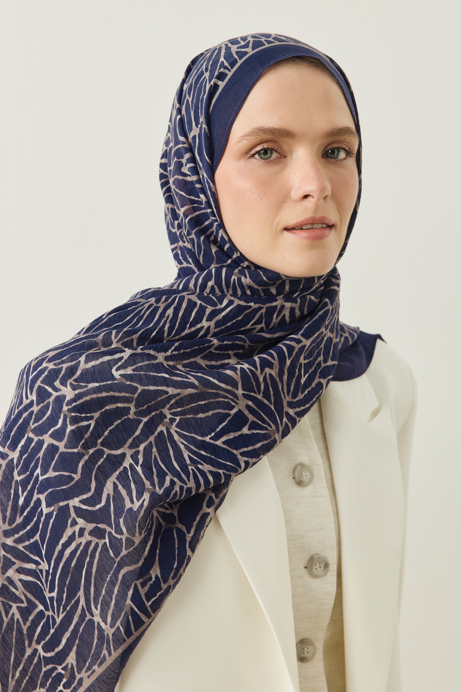 Tenline Alvor Desen Şal Koleksiyonu, modern çizgisel yaprak formları ve dinamik desen akışıyla öne çıkan özgün tasarımlardan oluşur. İnce ve keskin hatlarla oluşturulan desen yapısı, şallara hareketli ve enerjik bir görünüm kazandırırken sade kombinlere güçlü bir stil dokunuşu sunar.