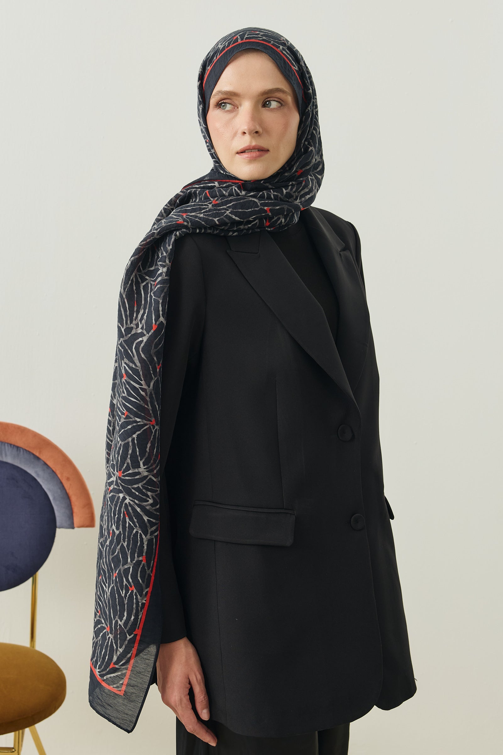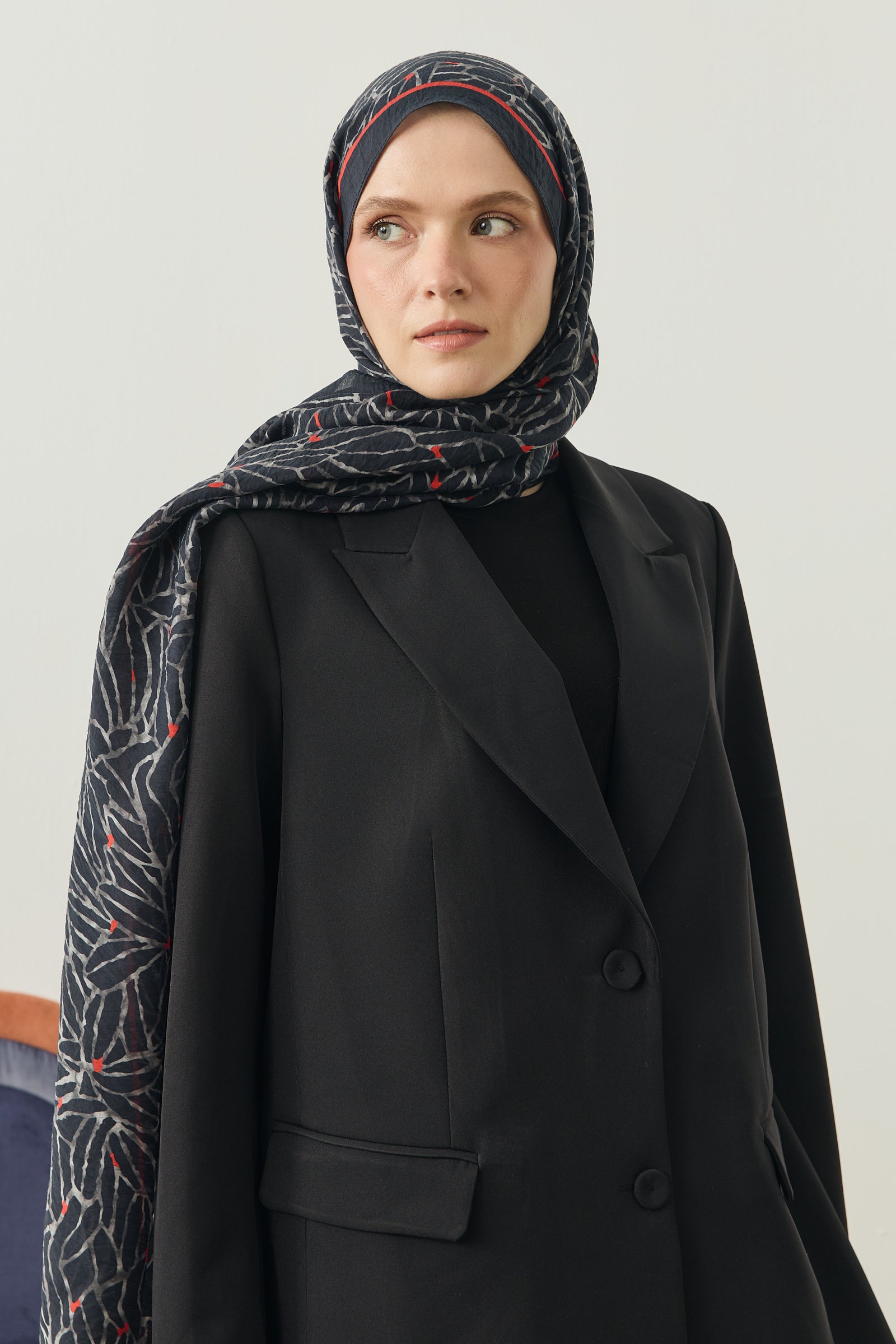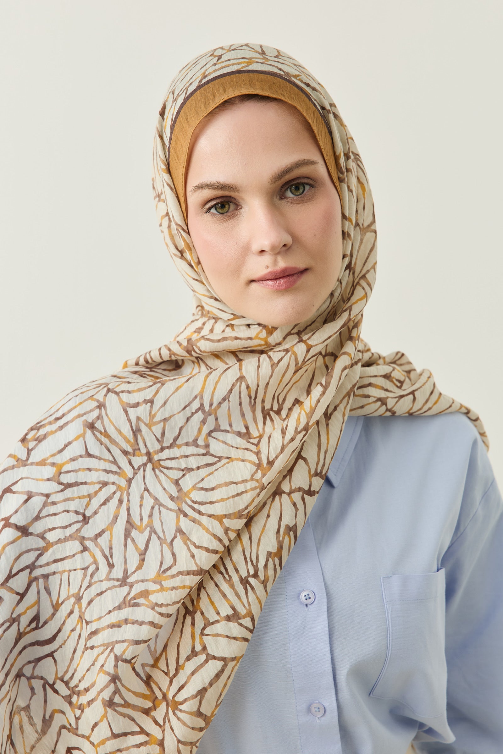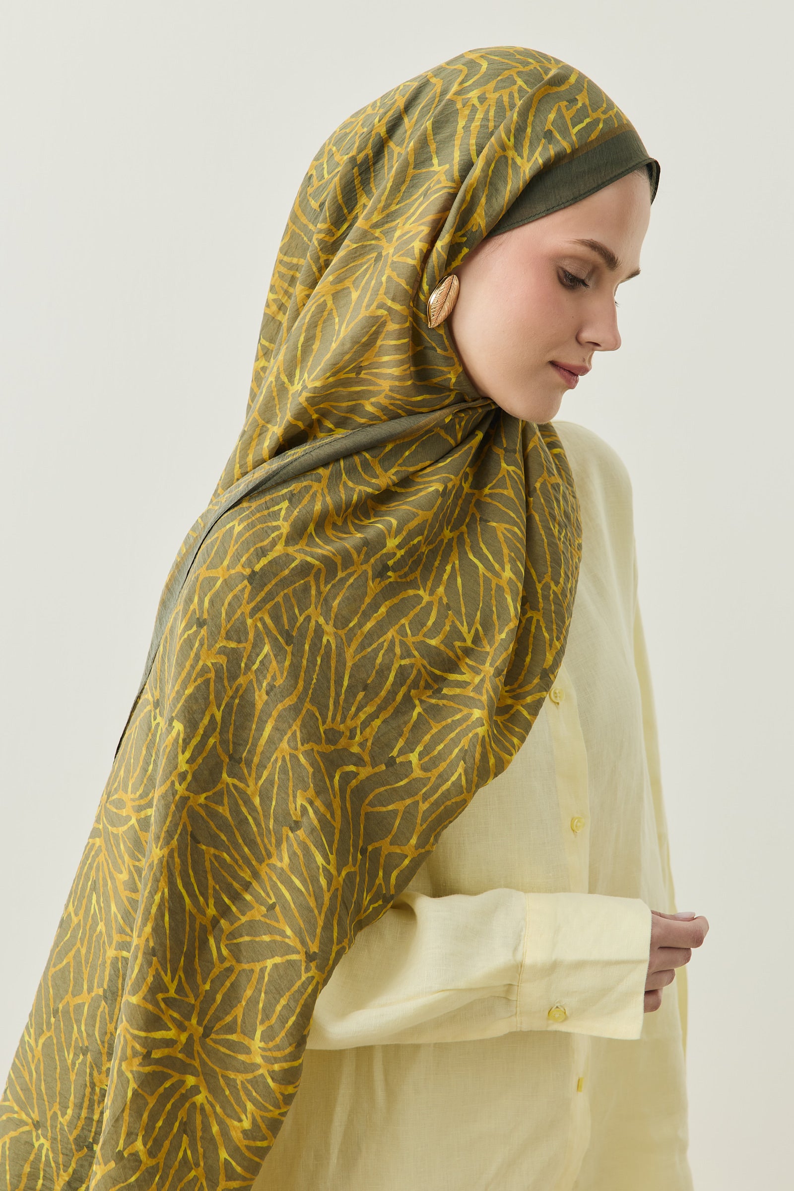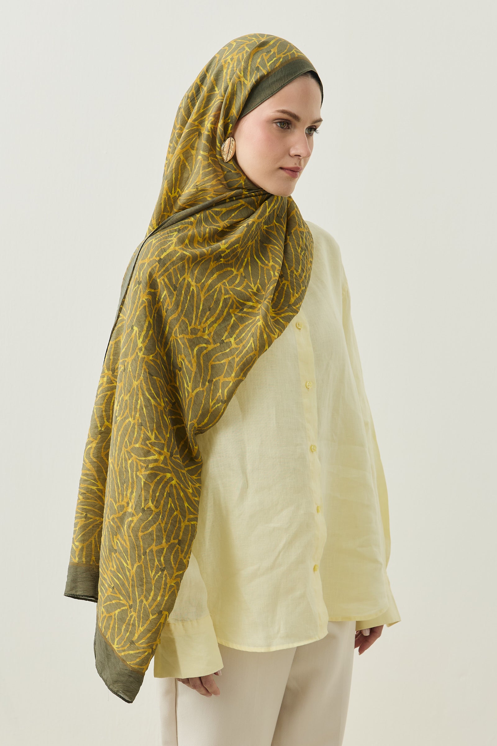 Tenline Alvor Desen Şal Koleksiyonu, modern çizgisel yaprak formları ve dinamik desen akışıyla öne çıkan özgün tasarımlardan oluşur. İnce ve keskin hatlarla oluşturulan desen yapısı, şallara hareketli ve enerjik bir görünüm kazandırırken sade kombinlere güçlü bir stil dokunuşu sunar.