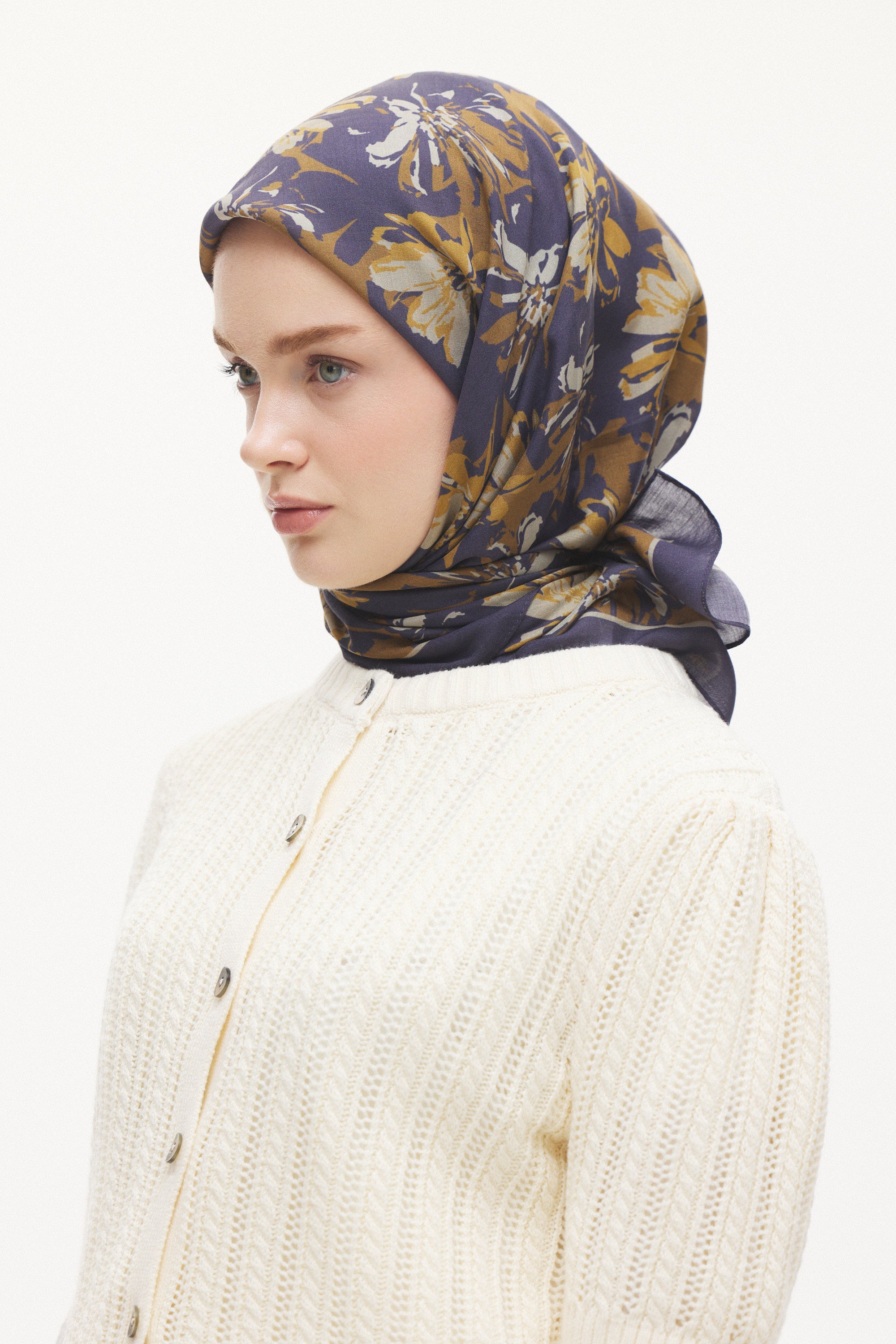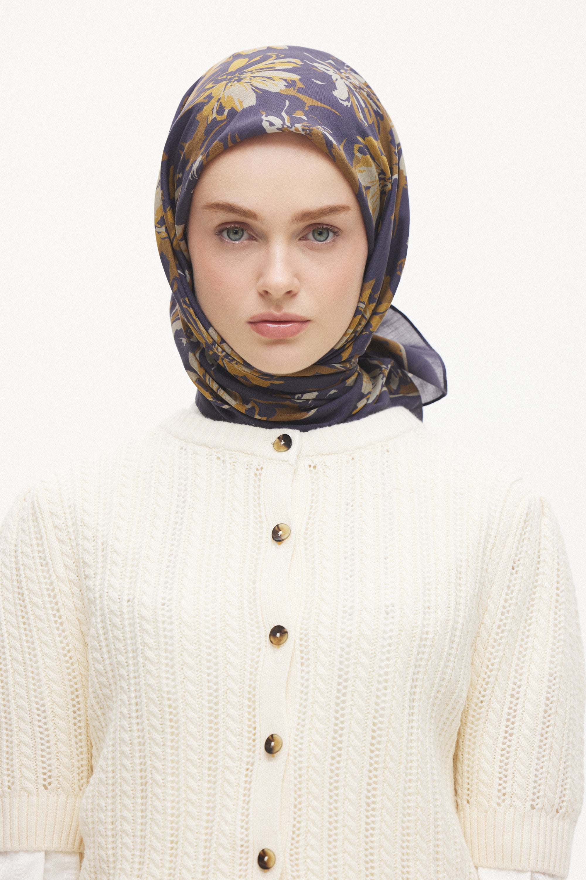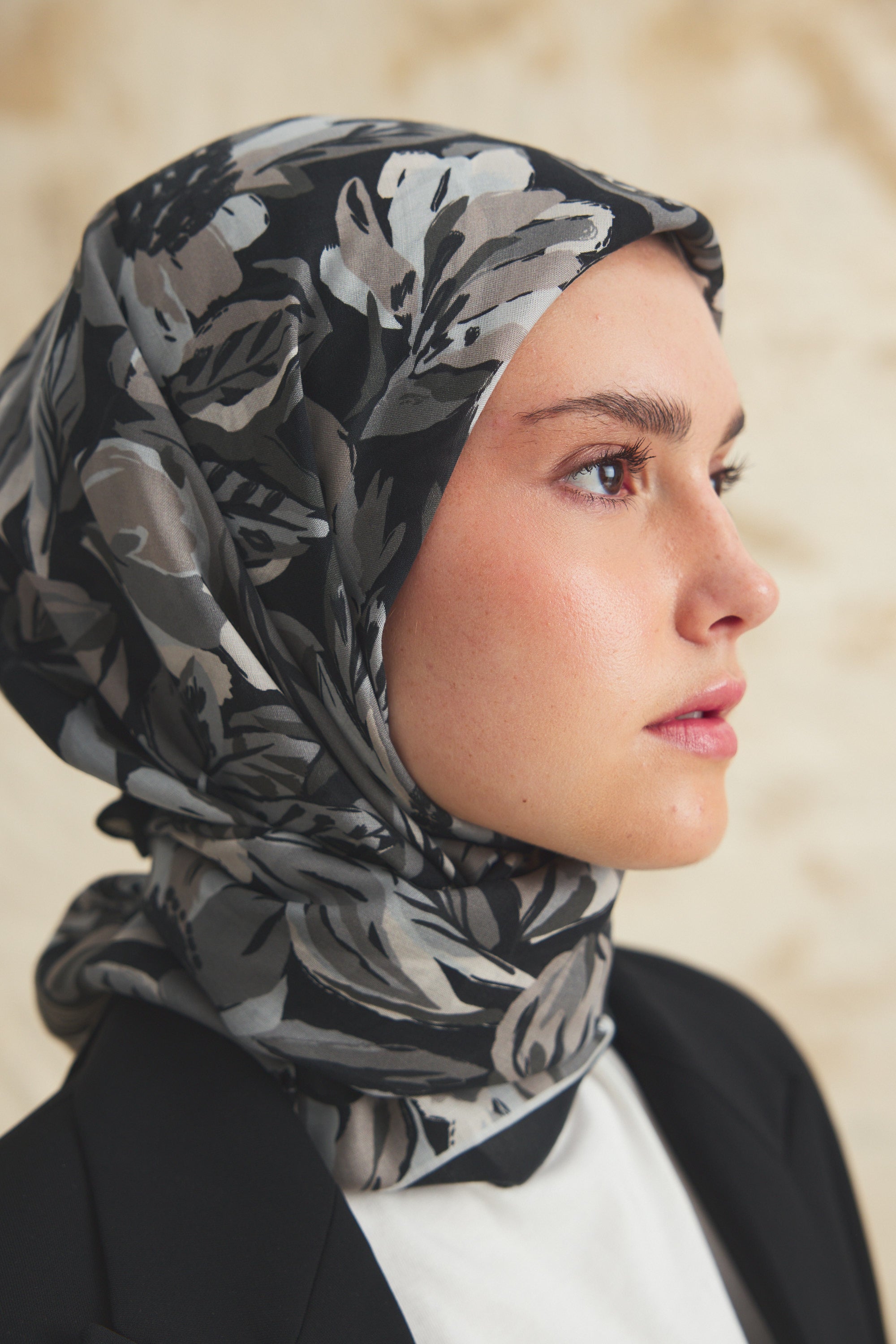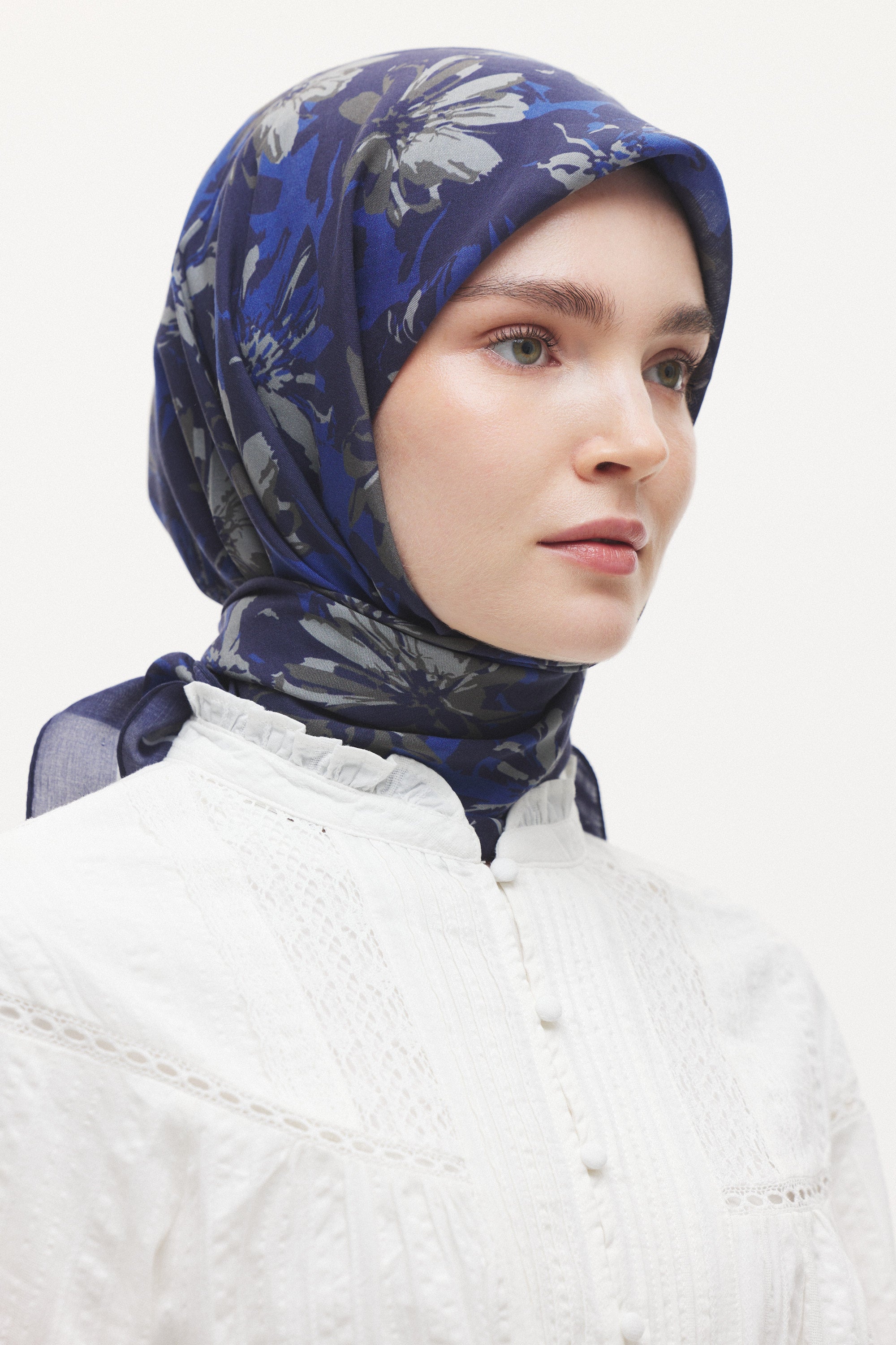 Velune Eşarp – Florea Nuit Desen, gecenin derin tonlarından ilham alan sofistike bir tasarım yorumudur. Floral motiflerin modern bir kompozisyonla yeniden kurgulandığı bu desen, güçlü ama zarif bir stil ifadesi sunar.