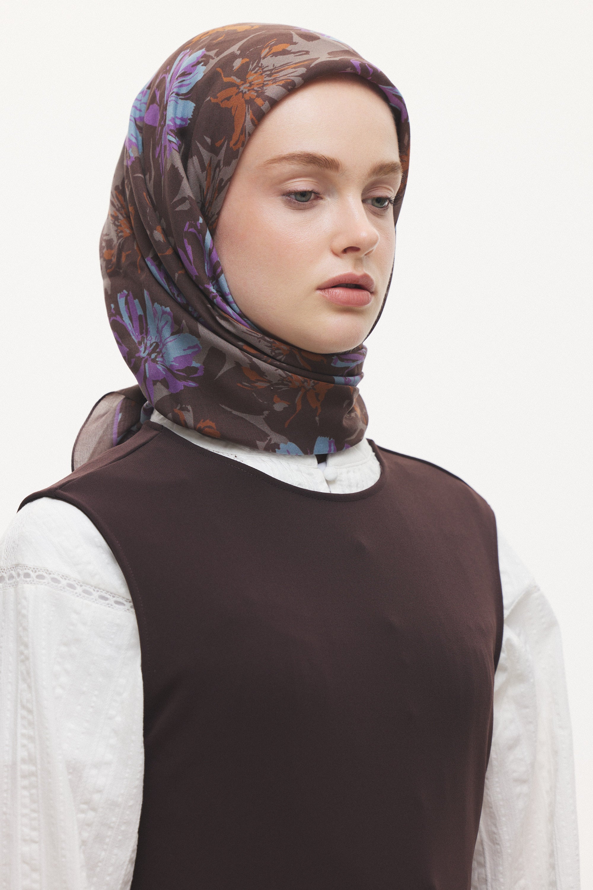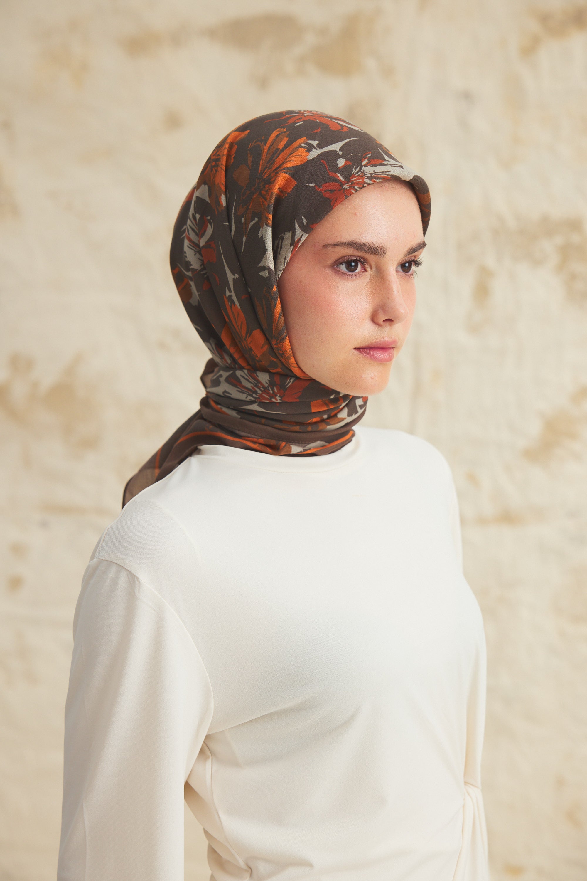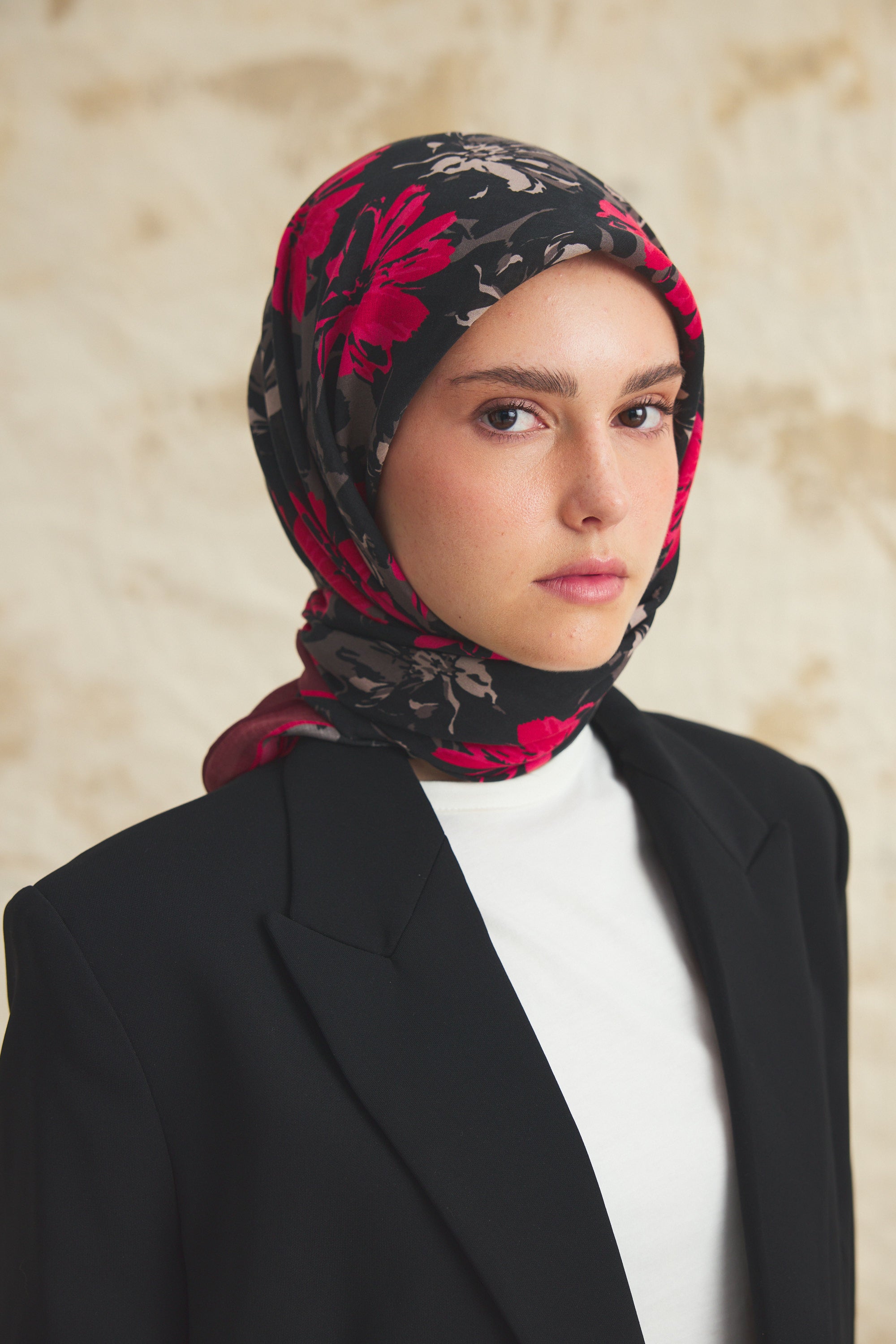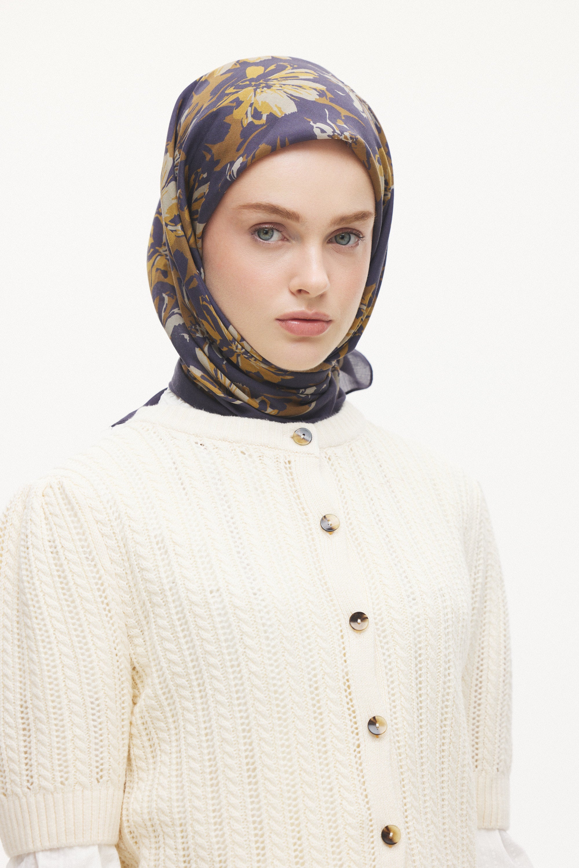 Velune Eşarp – Florea Nuit Desen, gecenin derin tonlarından ilham alan sofistike bir tasarım yorumudur. Floral motiflerin modern bir kompozisyonla yeniden kurgulandığı bu desen, güçlü ama zarif bir stil ifadesi sunar.