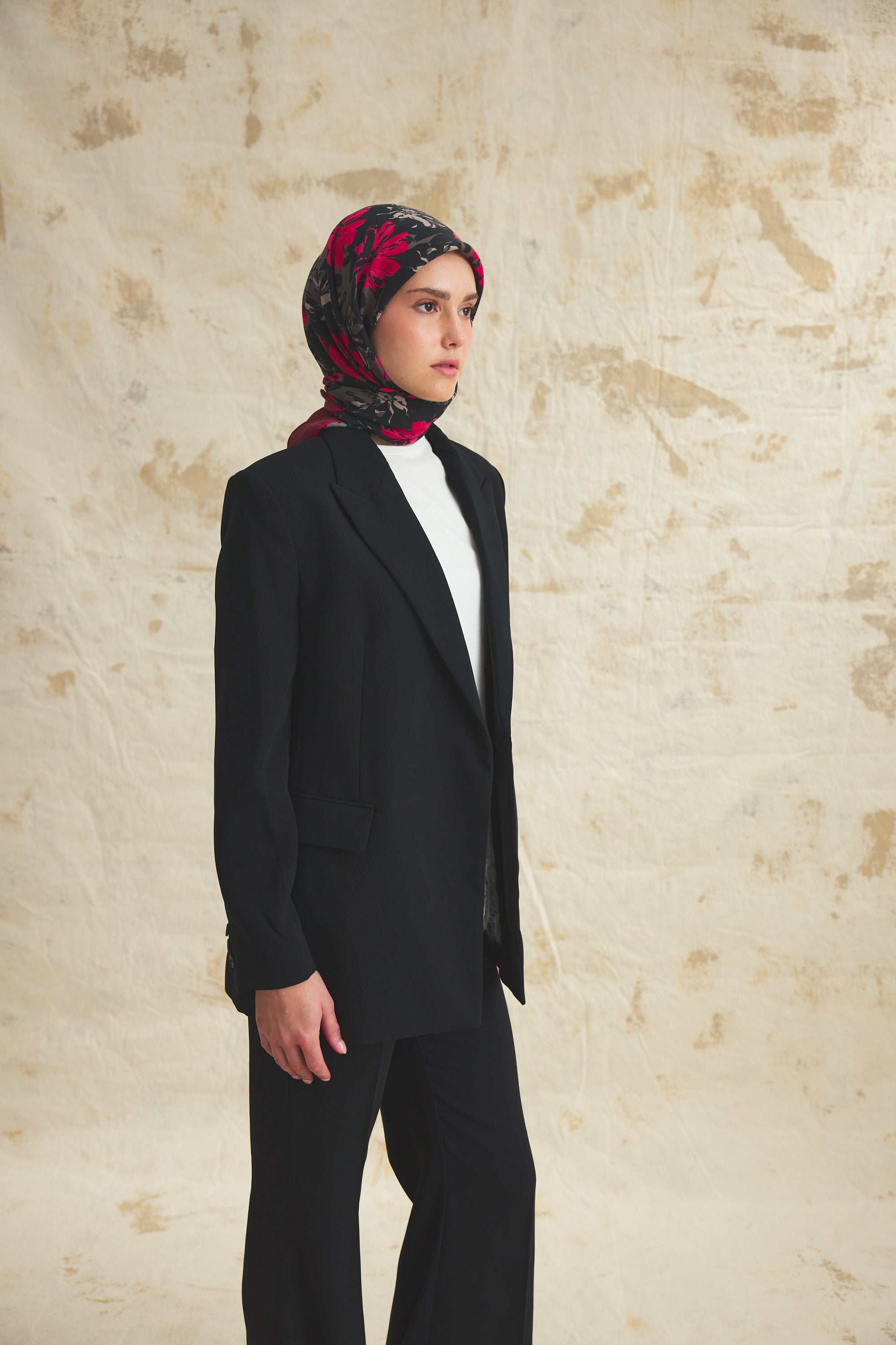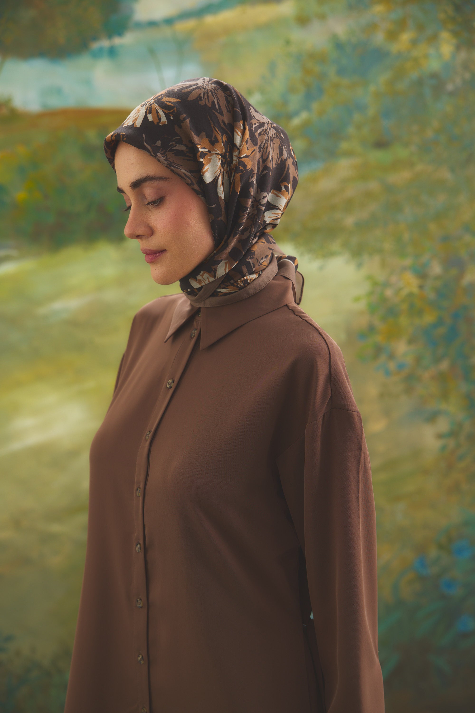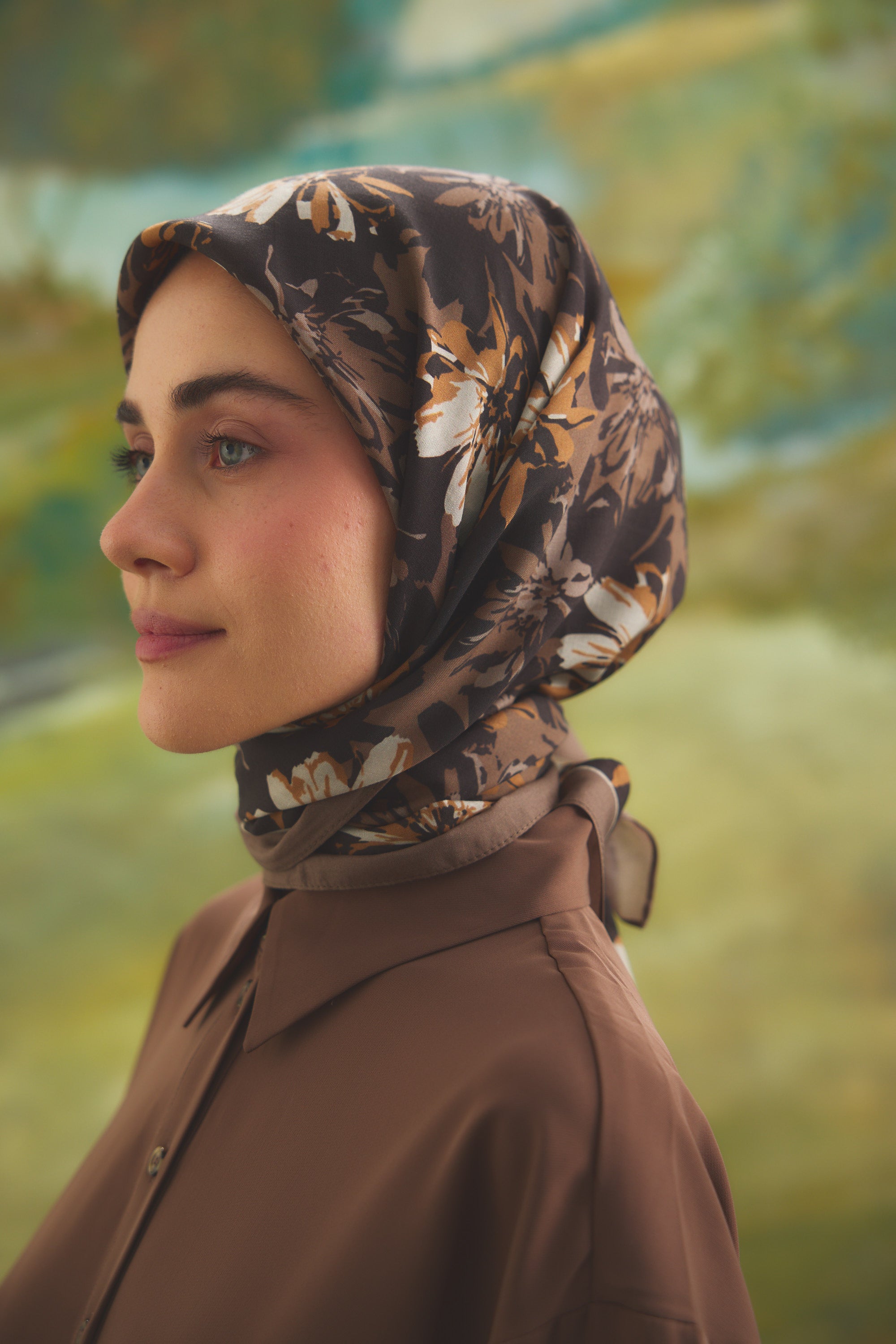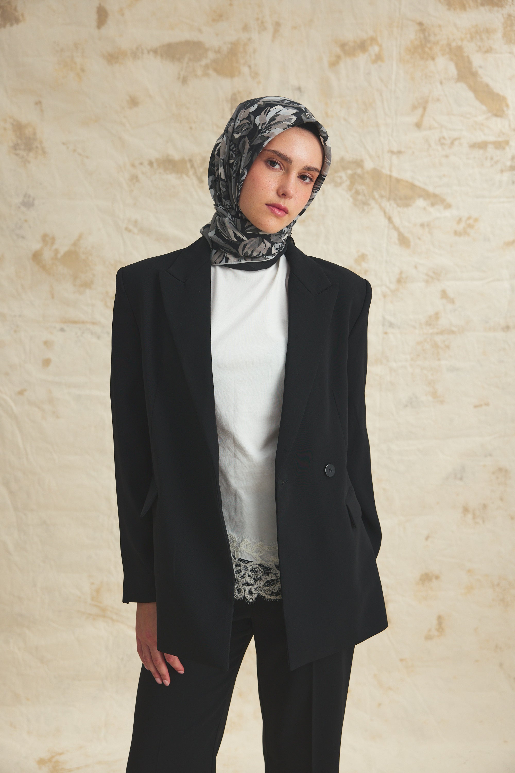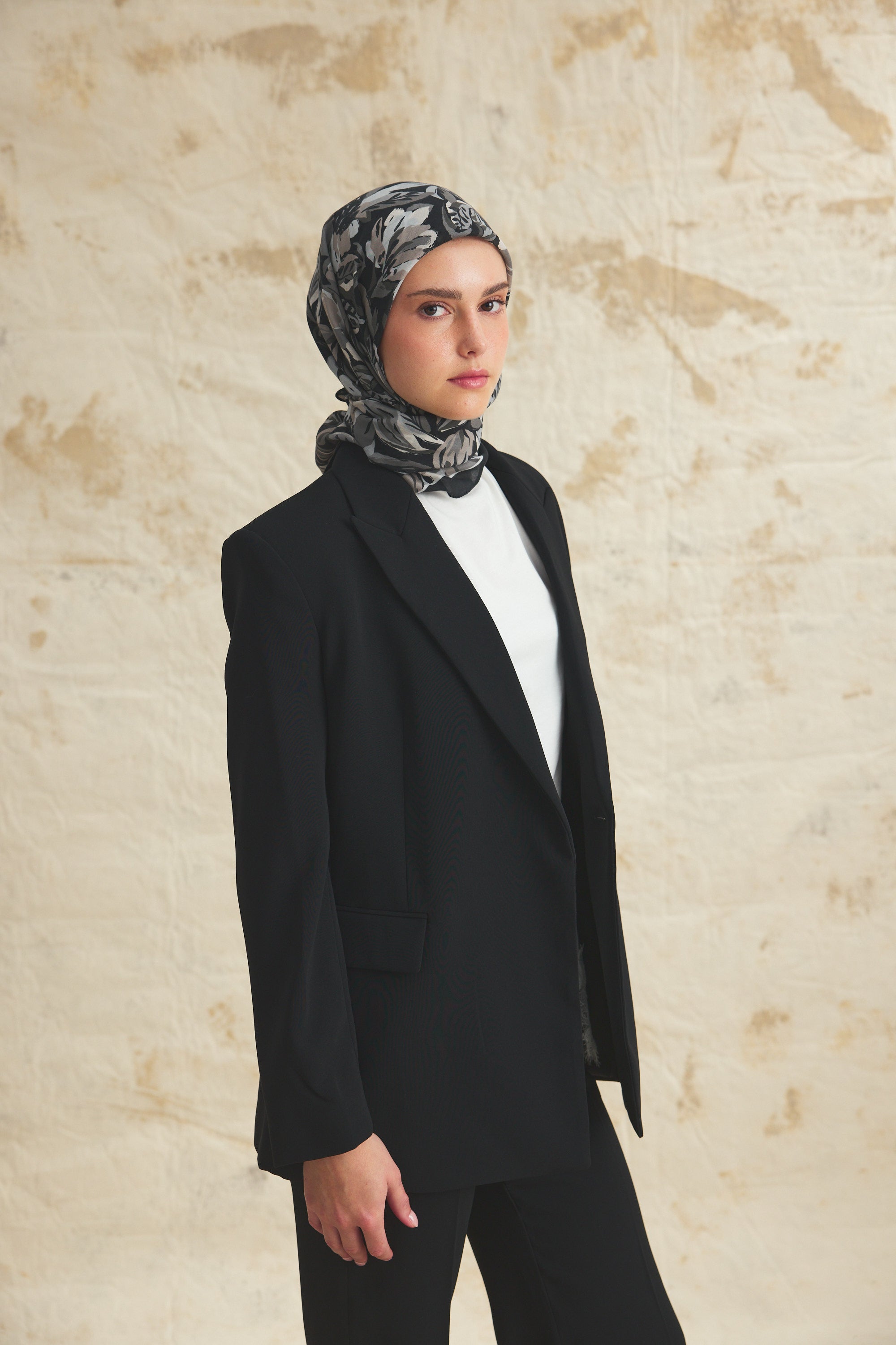Florea Nuit desen, koyu ve rafine tonların dengeli geçişleriyle zamansız bir etki yaratır. Günlük kombinlere derinlik kazandırırken, akşam stilinde daha güçlü ve dikkat çekici bir tamamlayıcıya dönüşür. Floral dokunuşların sofistike yorumu, klasik ve modern stil arasında kusursuz bir denge kurar.