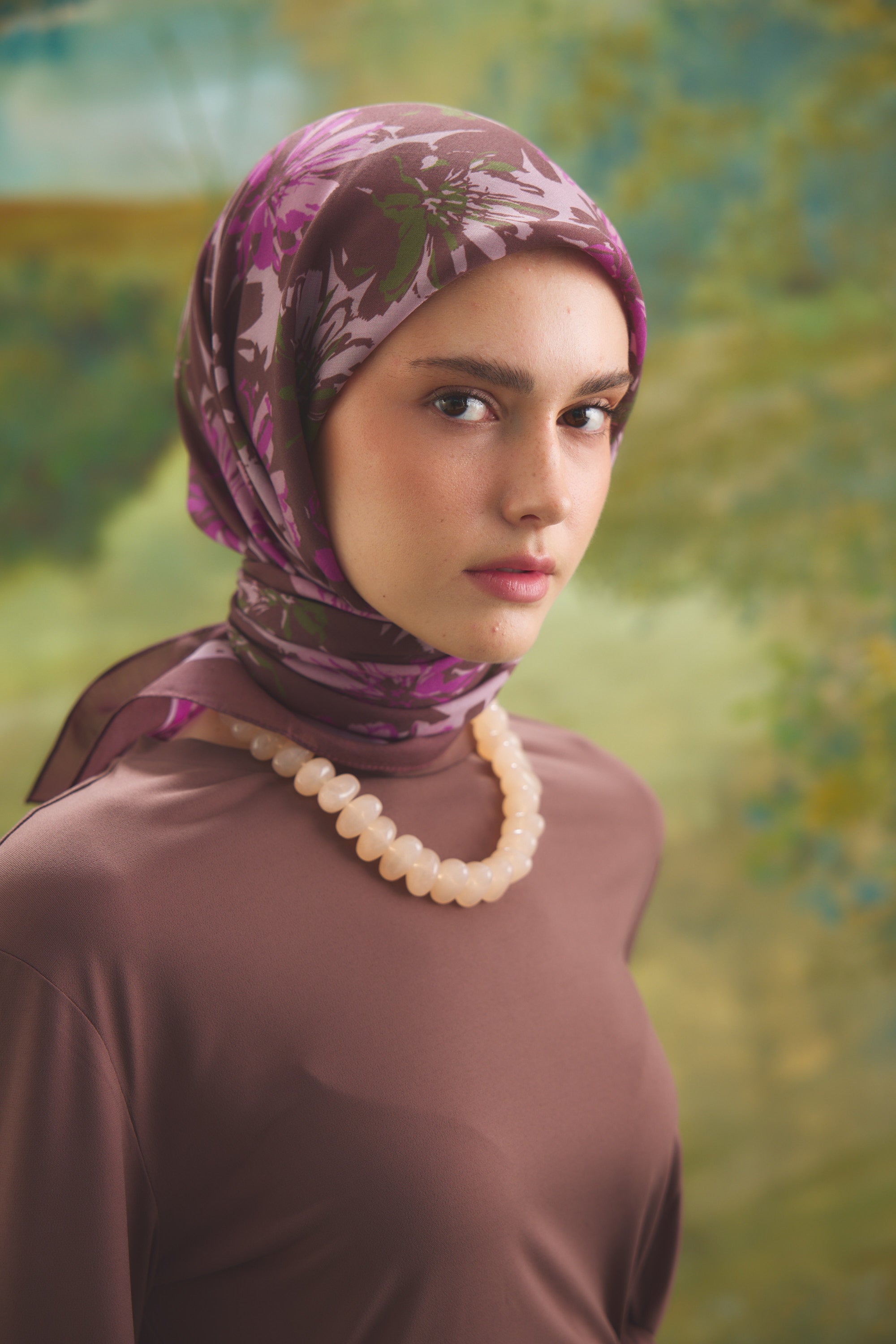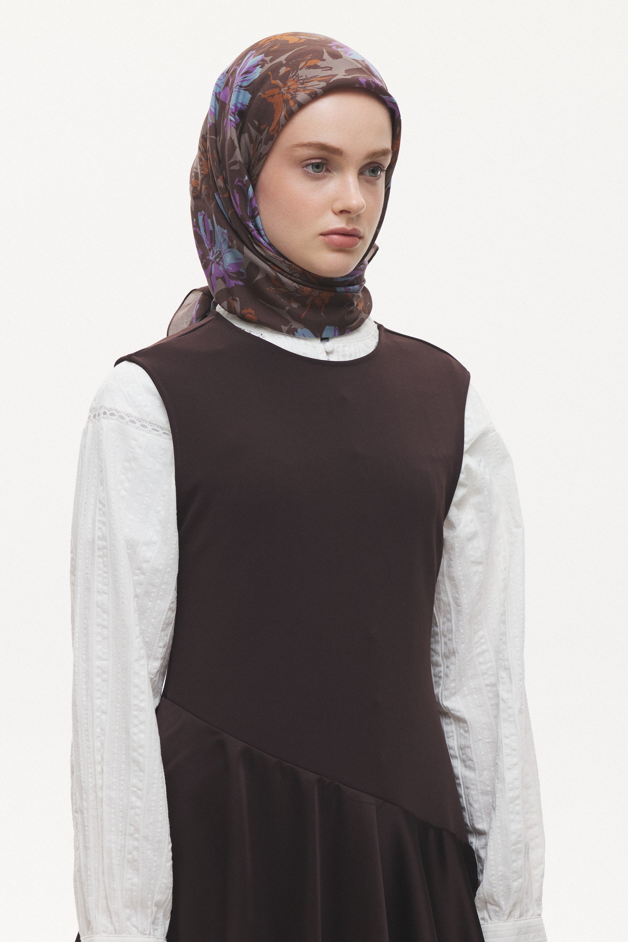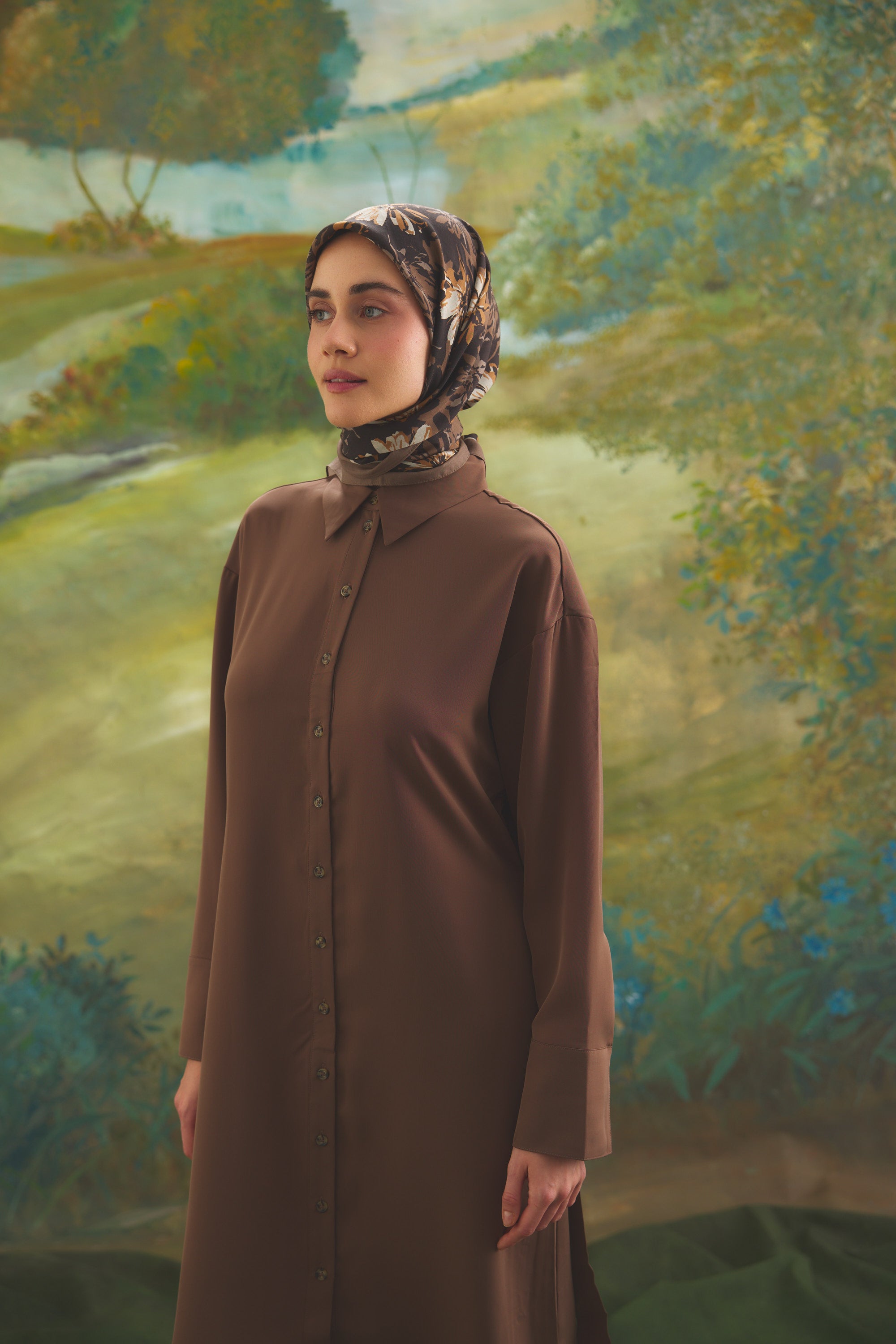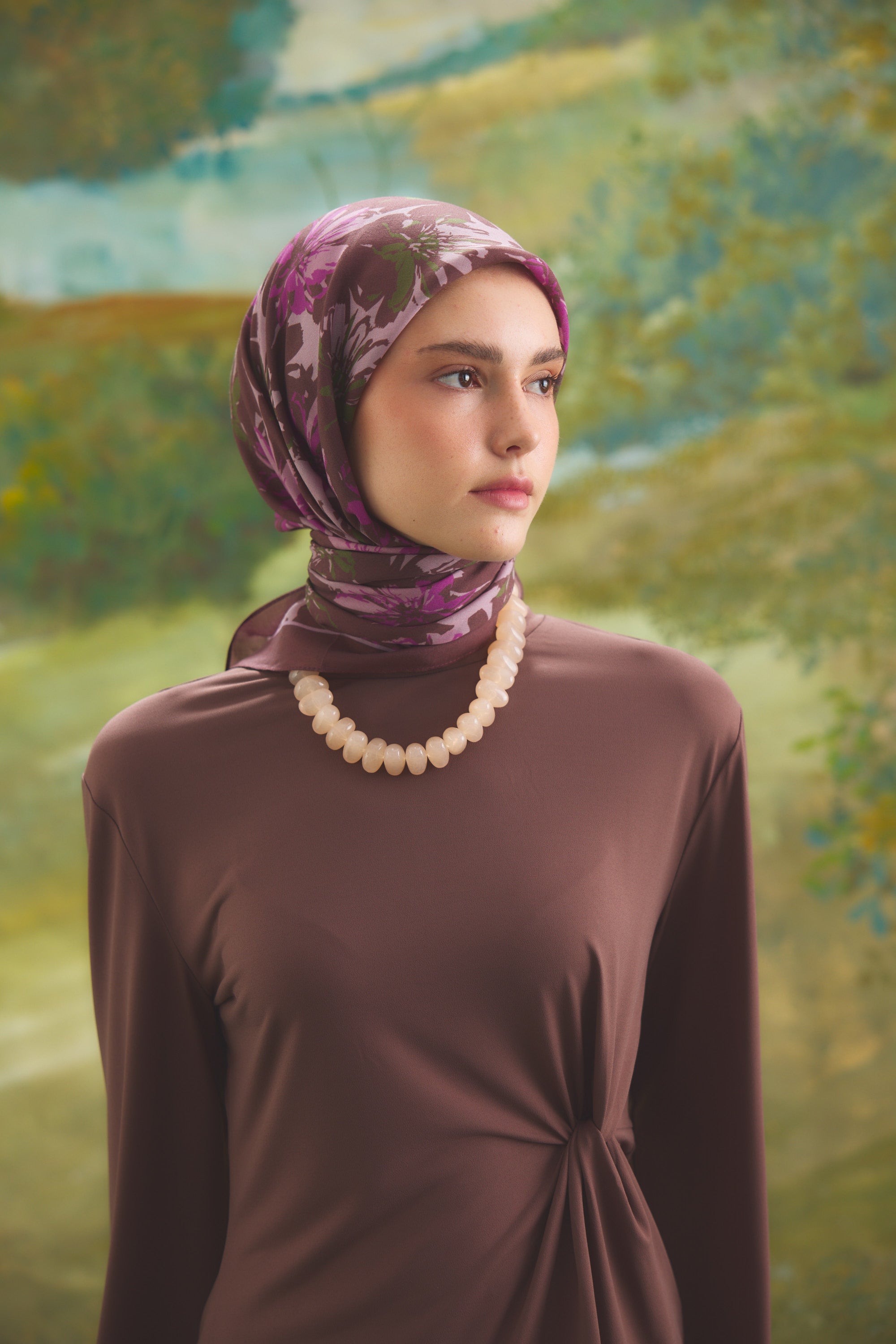 Florea Nuit desen, koyu ve rafine tonların dengeli geçişleriyle zamansız bir etki yaratır. Günlük kombinlere derinlik kazandırırken, akşam stilinde daha güçlü ve dikkat çekici bir tamamlayıcıya dönüşür. Floral dokunuşların sofistike yorumu, klasik ve modern stil arasında kusursuz bir denge kurar.