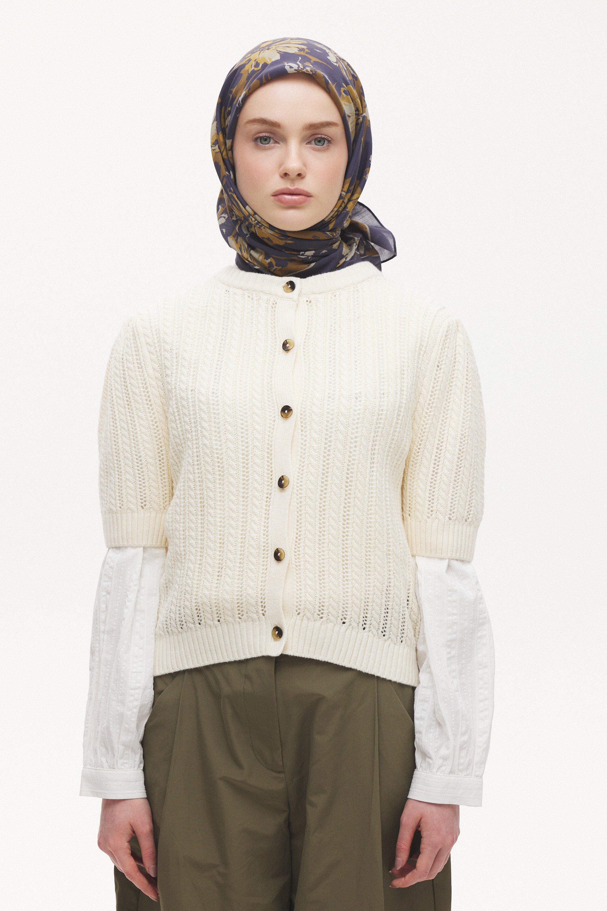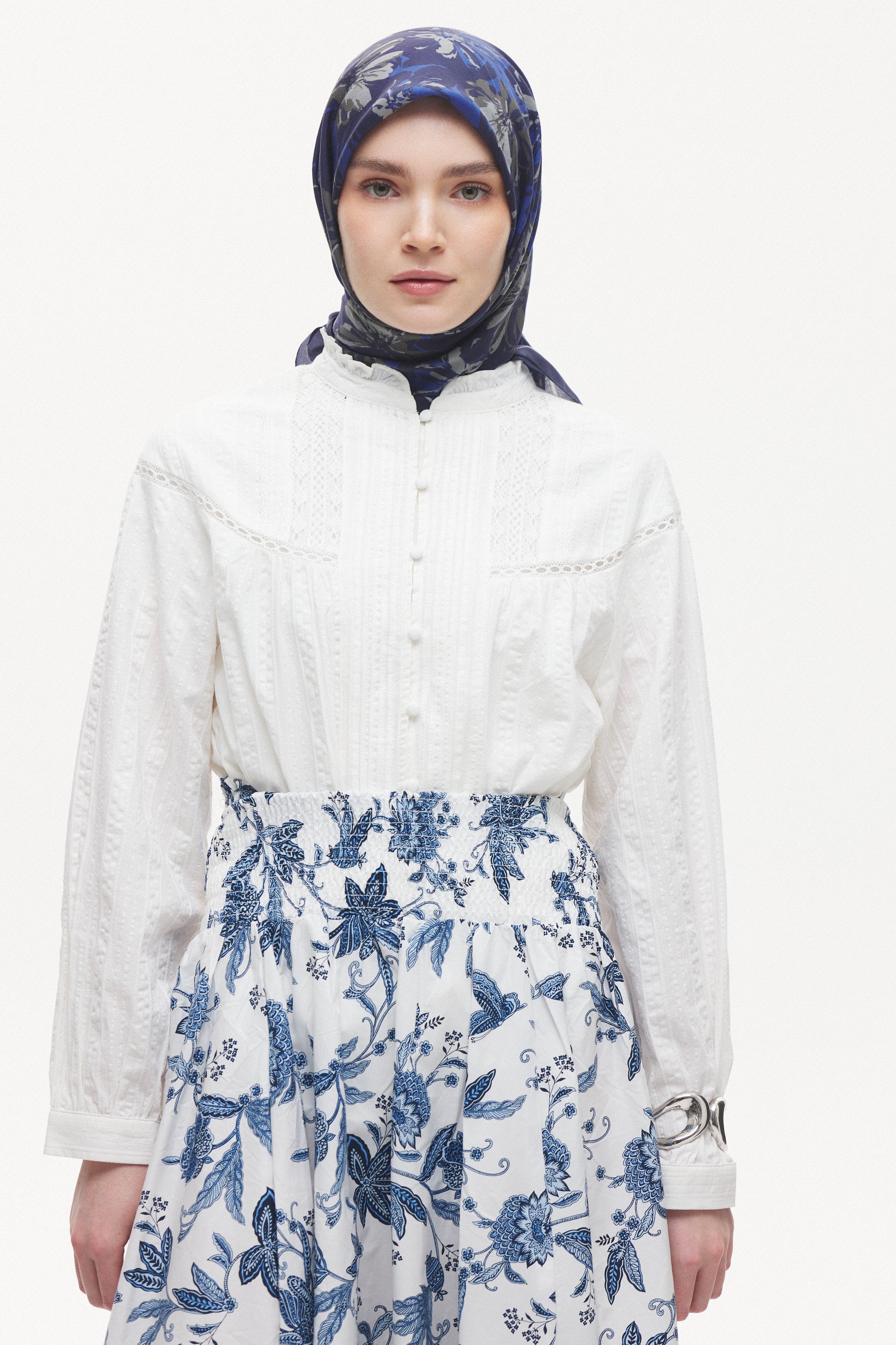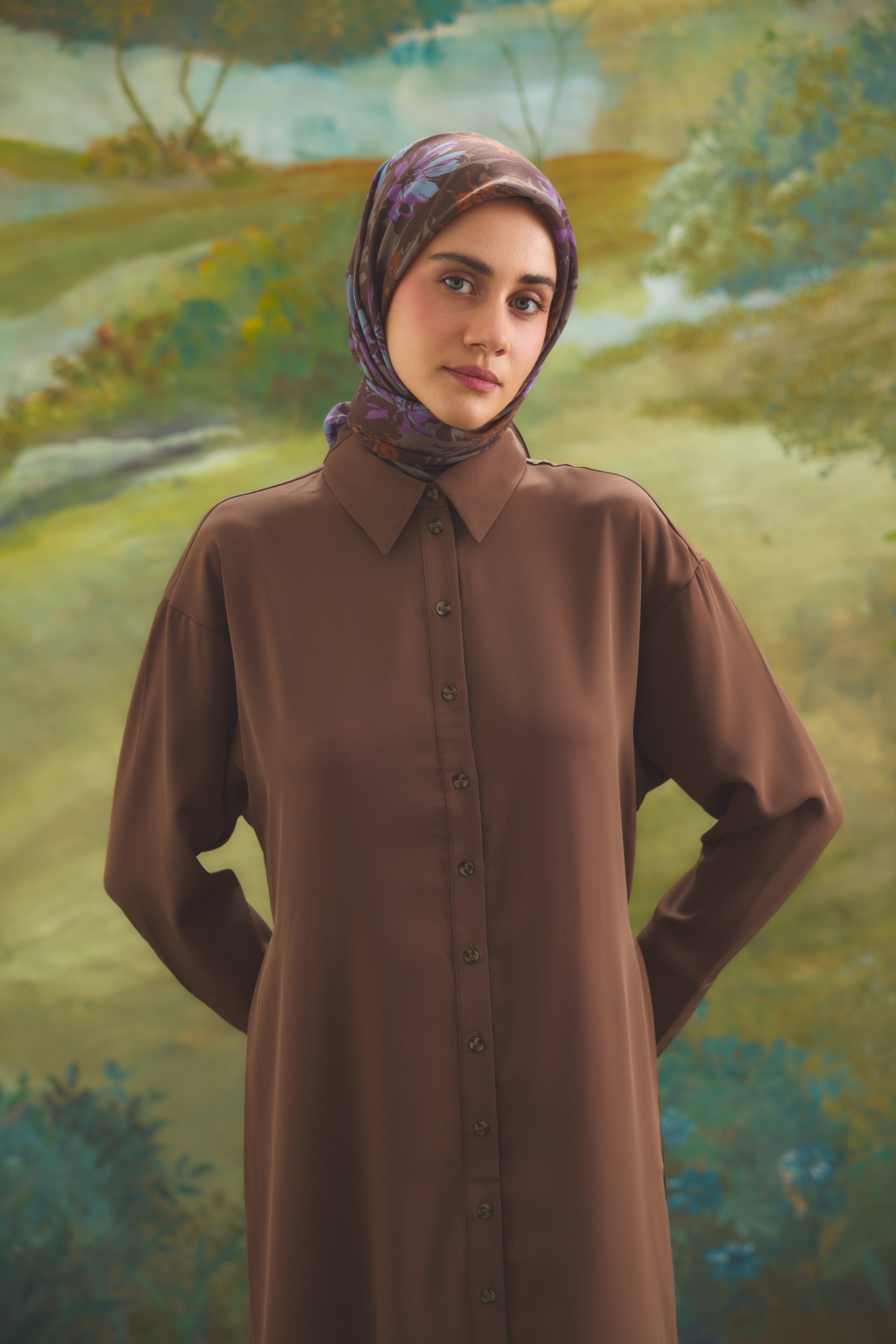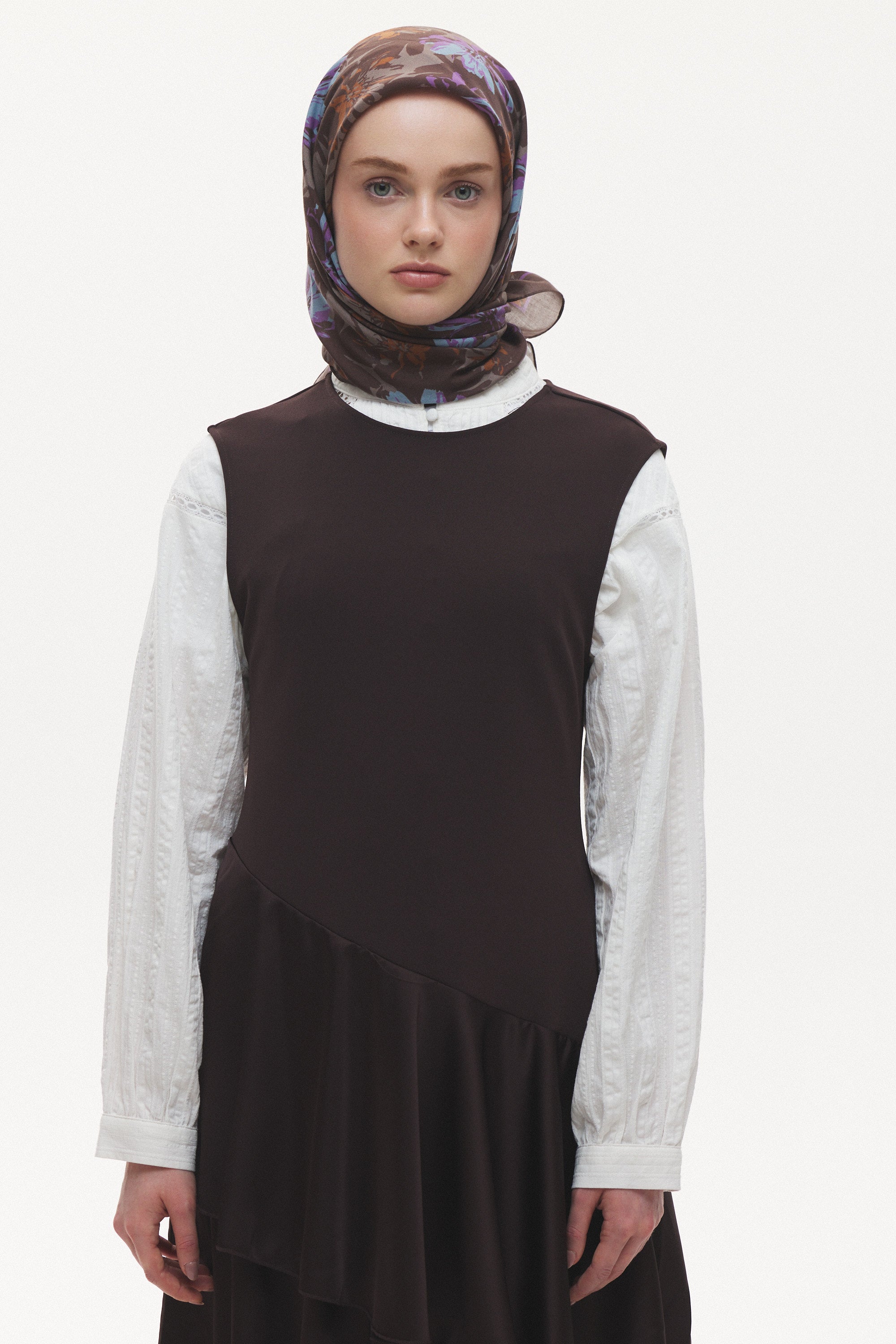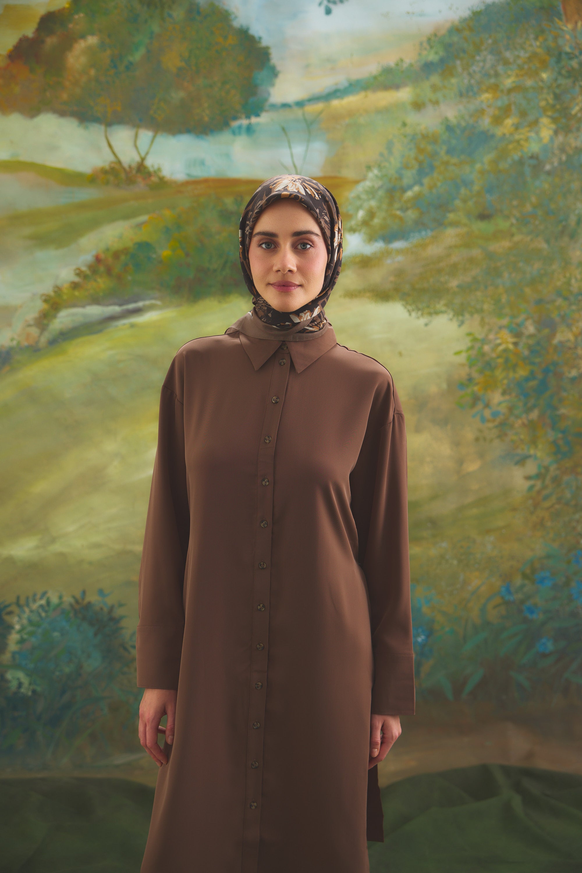Florea Nuit desen, koyu ve rafine tonların dengeli geçişleriyle zamansız bir etki yaratır. Günlük kombinlere derinlik kazandırırken, akşam stilinde daha güçlü ve dikkat çekici bir tamamlayıcıya dönüşür. Floral dokunuşların sofistike yorumu, klasik ve modern stil arasında kusursuz bir denge kurar.