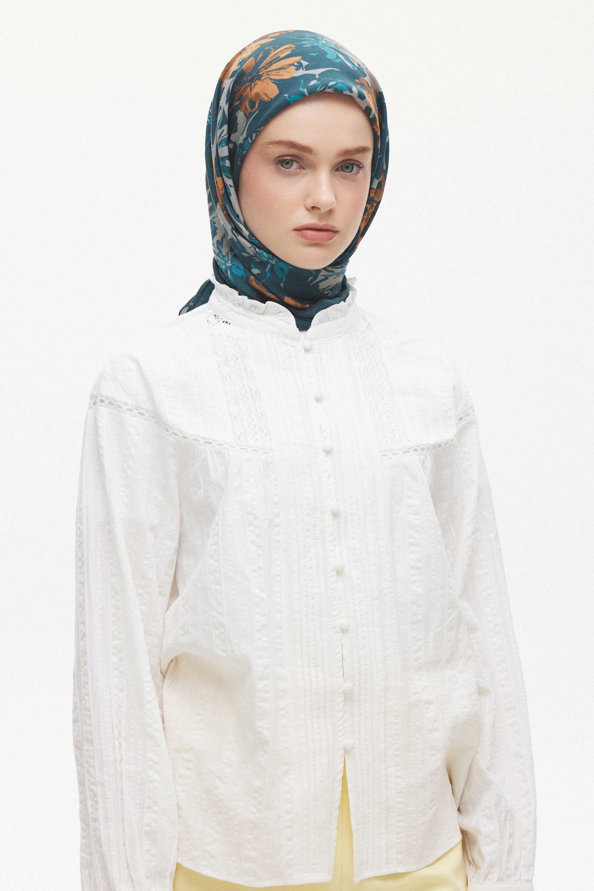 Velune Eşarp – Florea Nuit Desen, stilini detaylarla ifade eden ve seçkin bir duruş arayan kadınlar için tasarlanmıştır. Hafifliği, akışkan yapısı ve özgün desen diliyle Emproyal’in premium tasarım anlayışını yansıtır.
