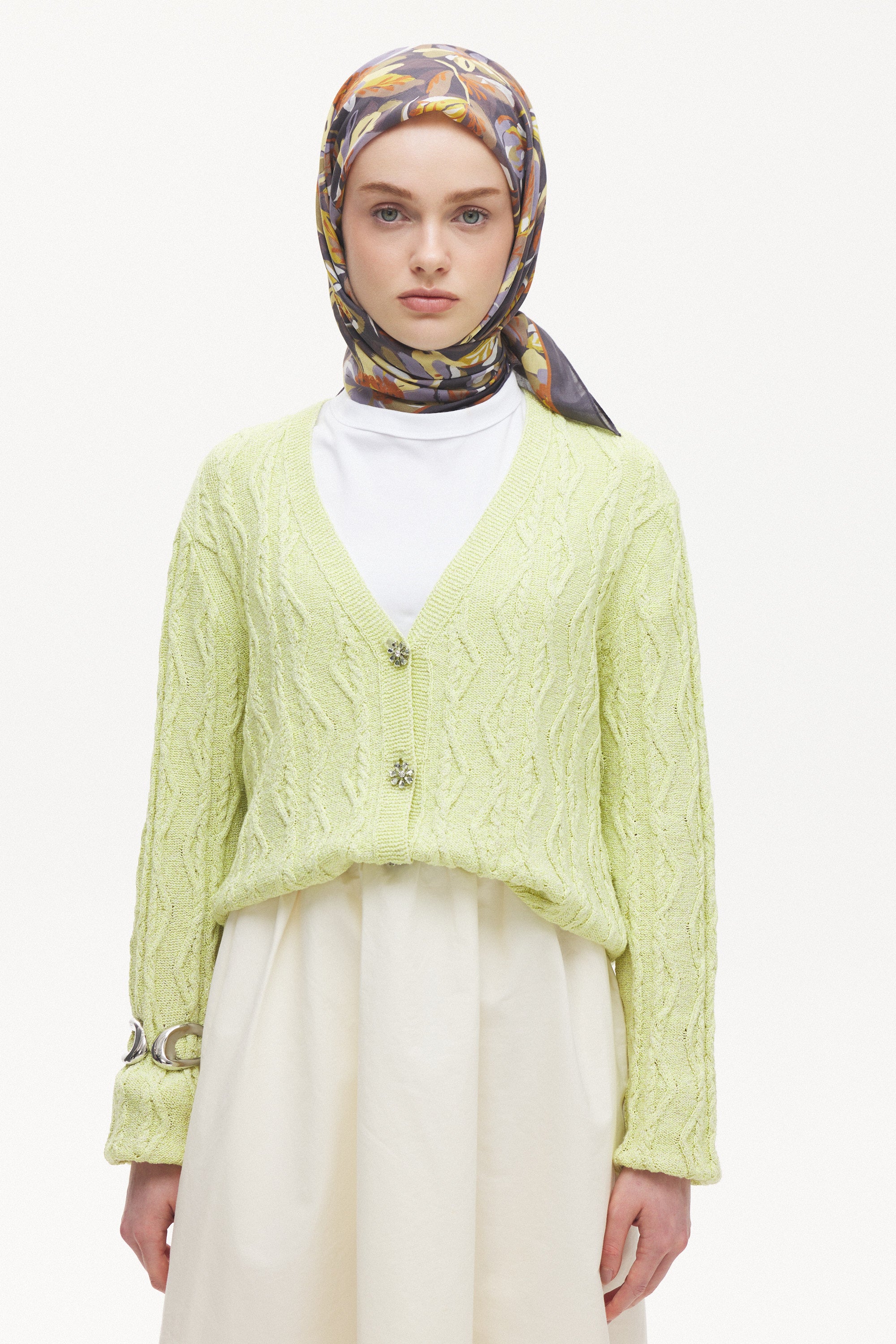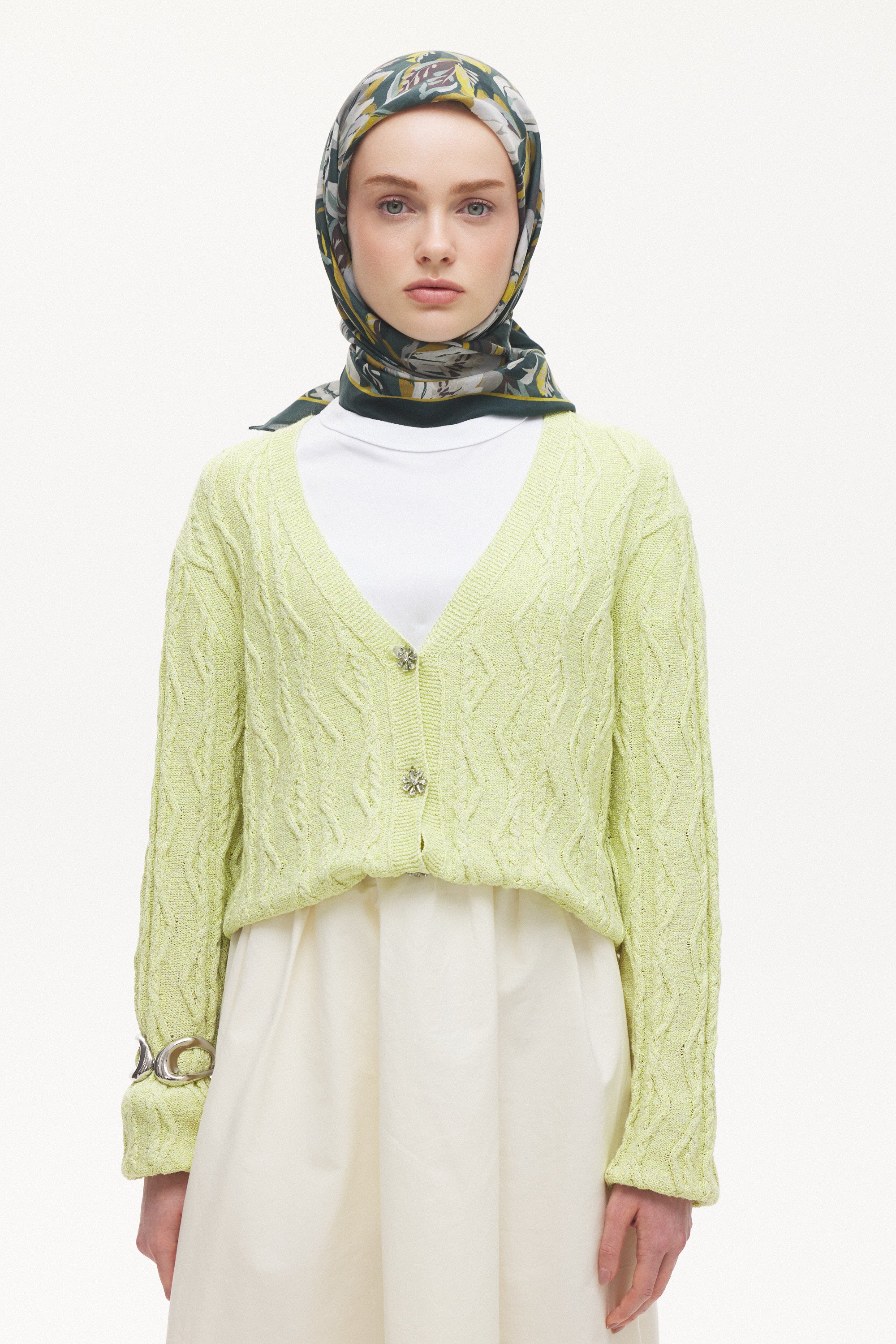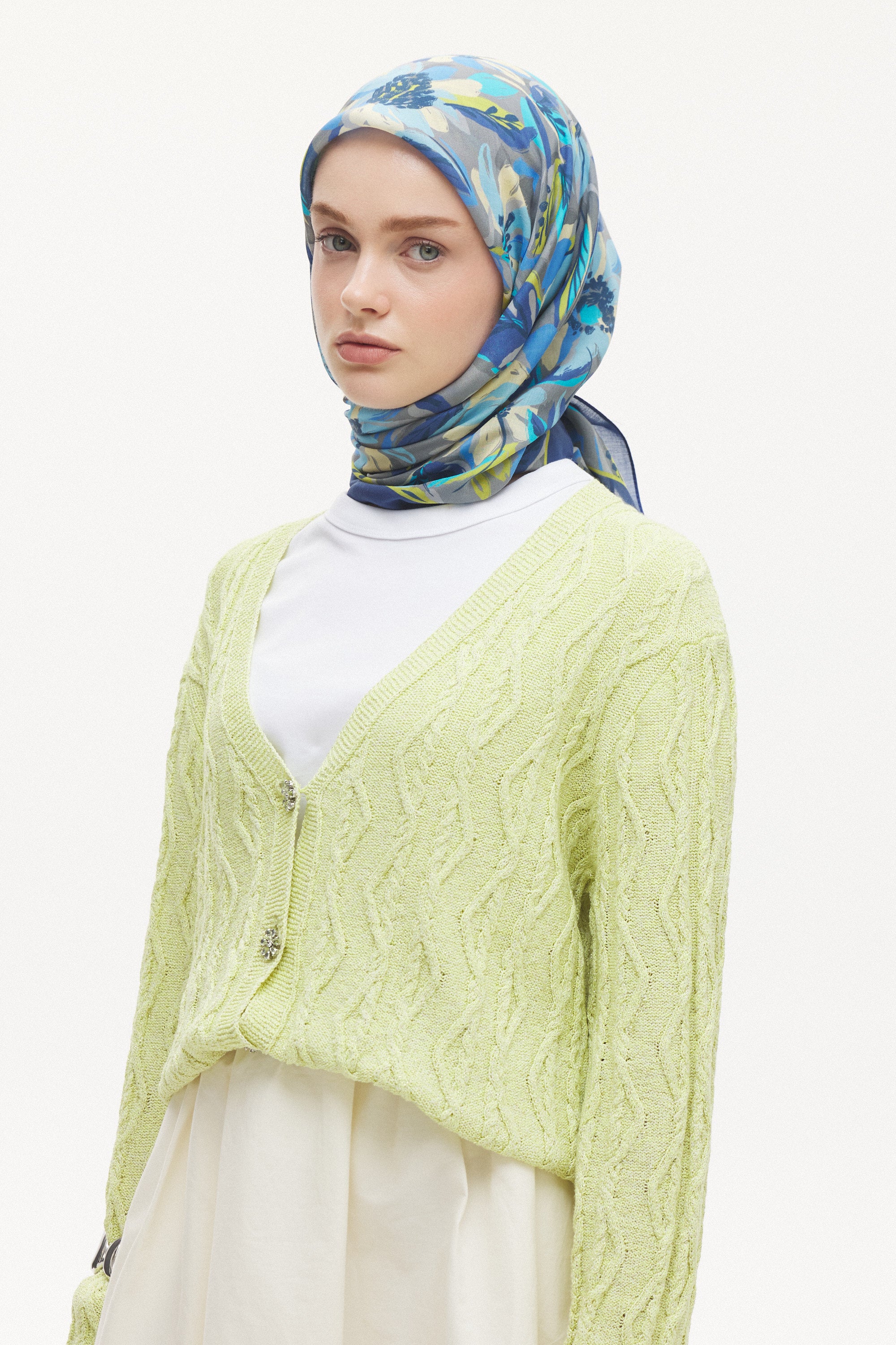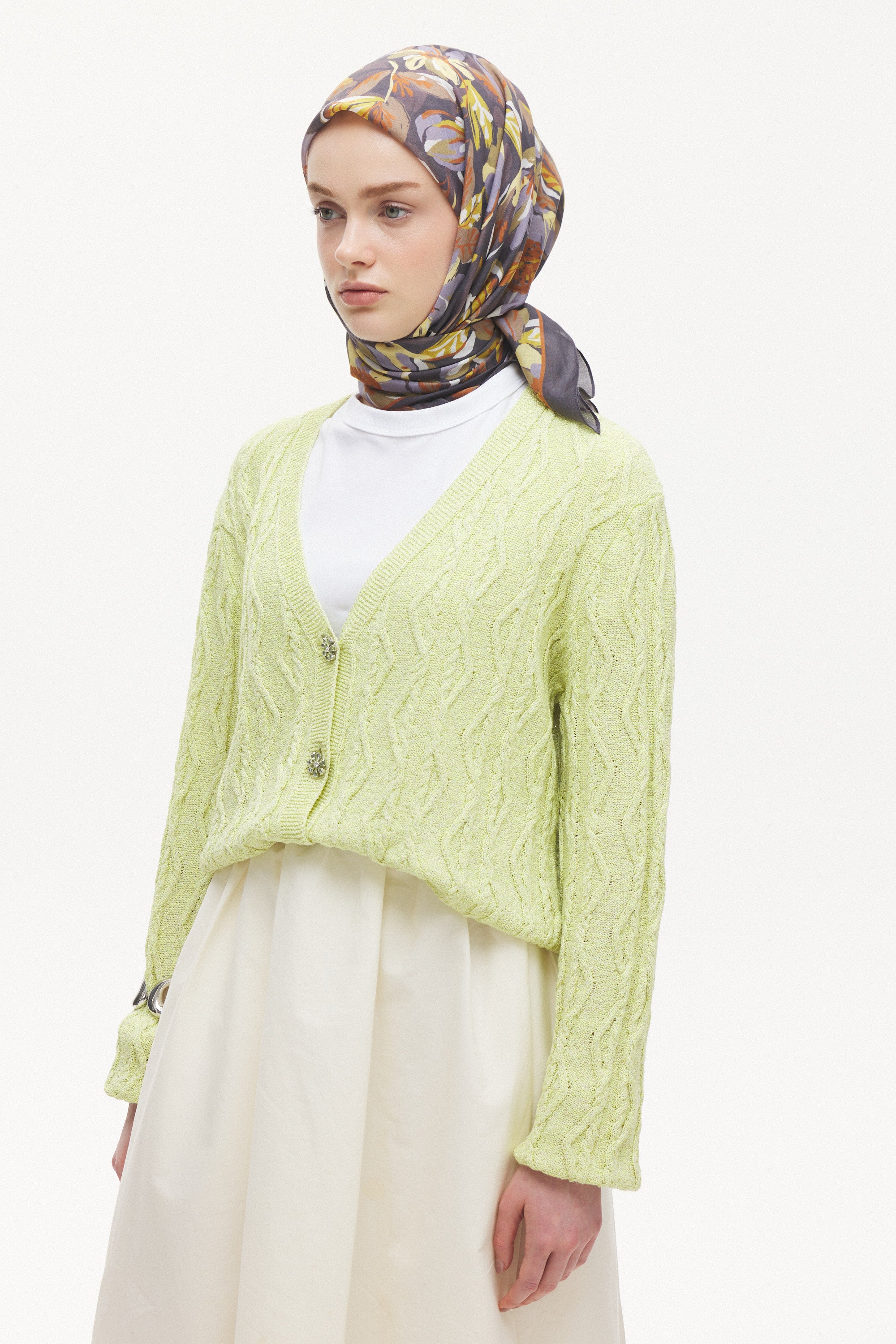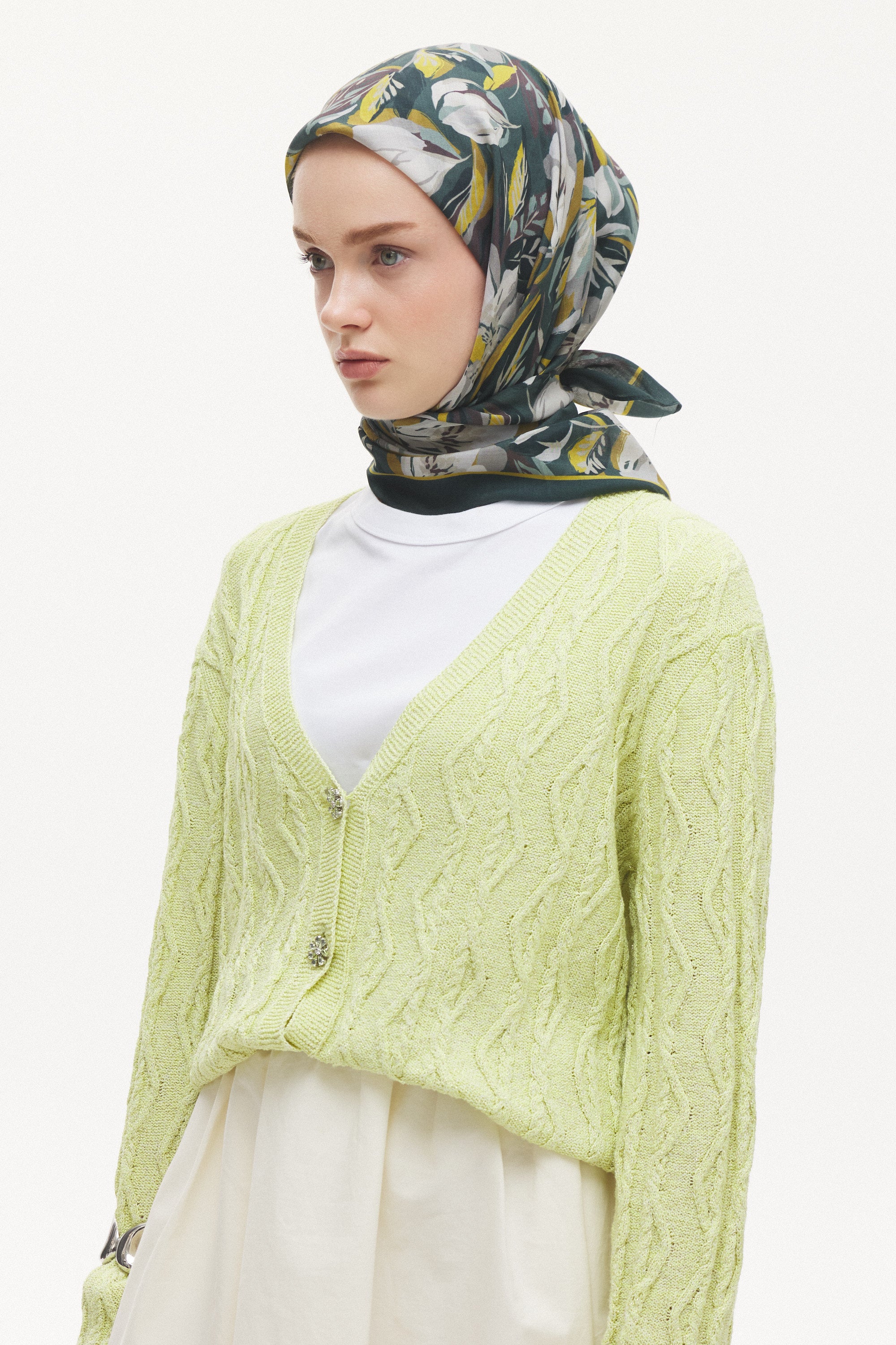 Maison Botanique desen, rafine renk geçişleri ve dengeli motif yapısıyla zamansız bir stil sunar. Günlük kombinlere yumuşak bir hareket katarken, özel anlarda zarif ve seçkin bir tamamlayıcıya dönüşür. Doğal esintilerle şekillenen bu tasarım, abartıdan uzak ama karakter sahibi bir görünüm yaratır.