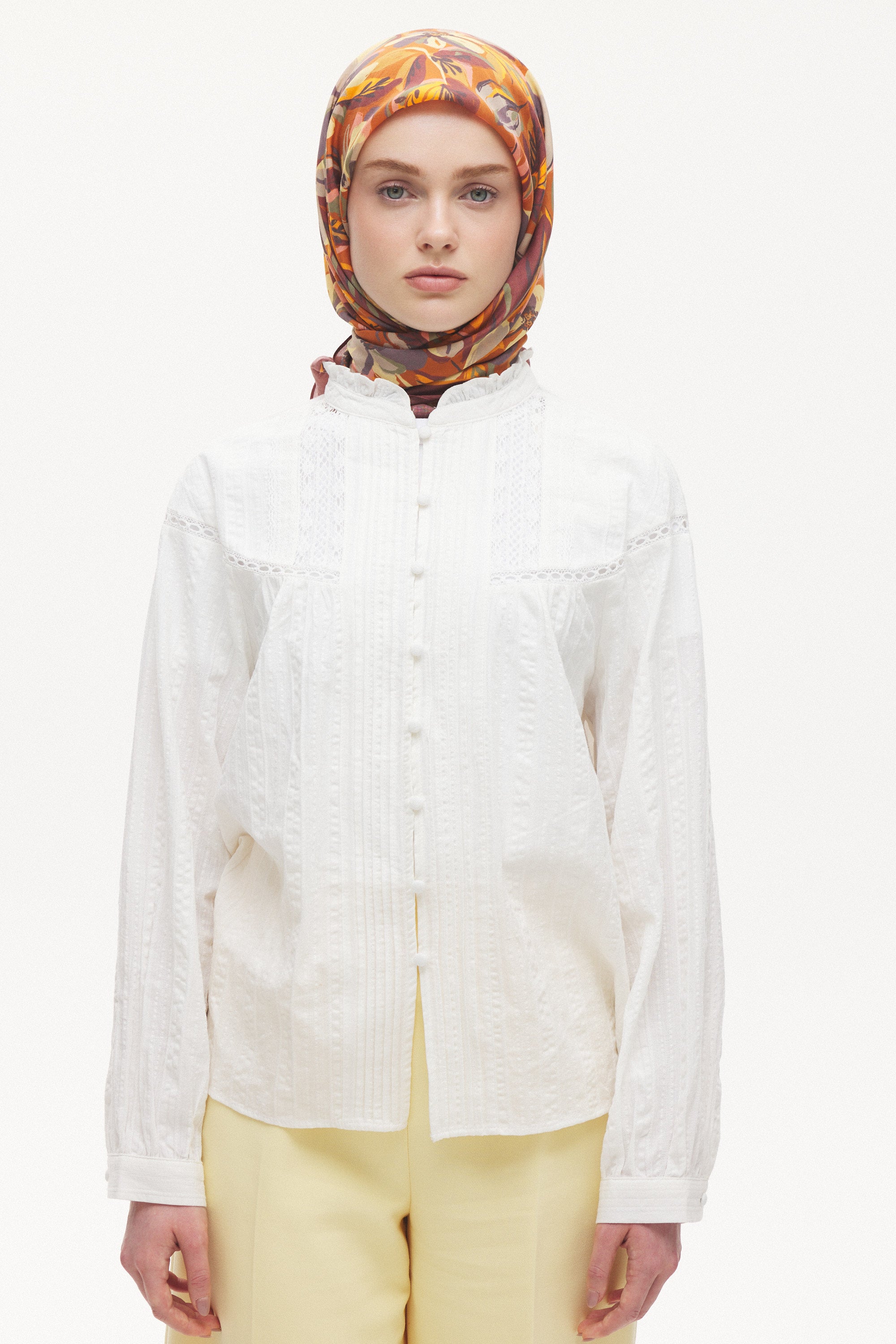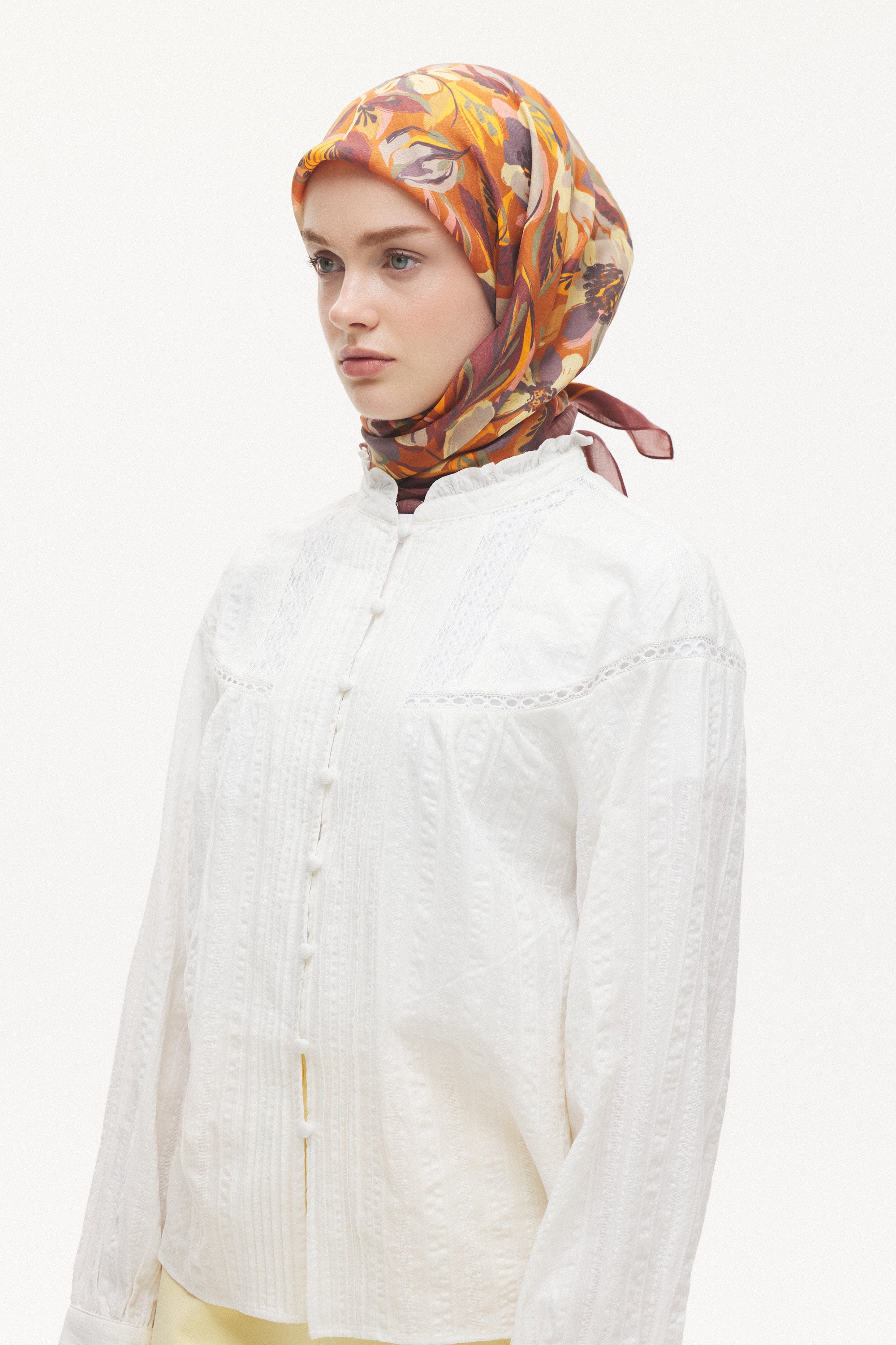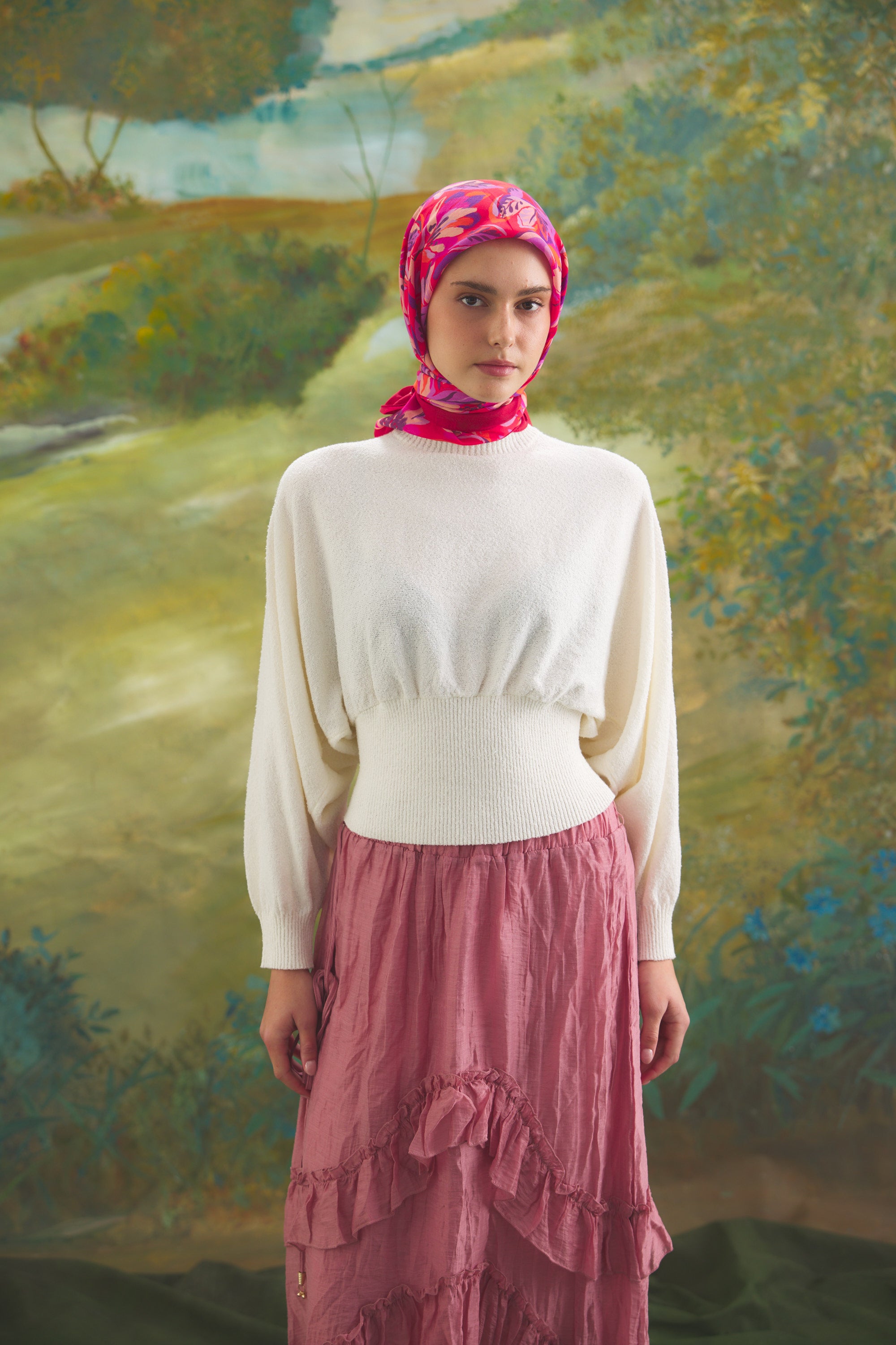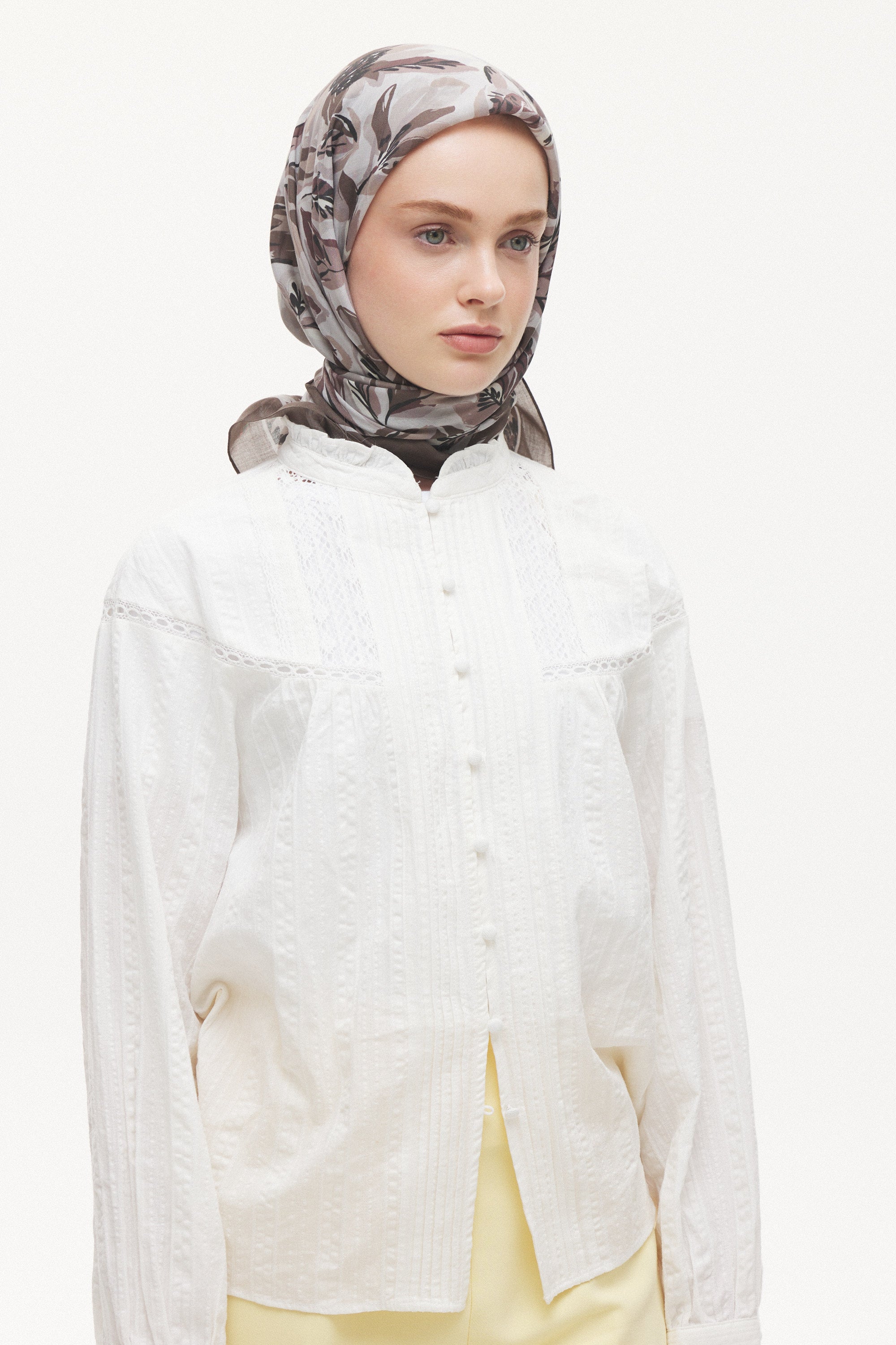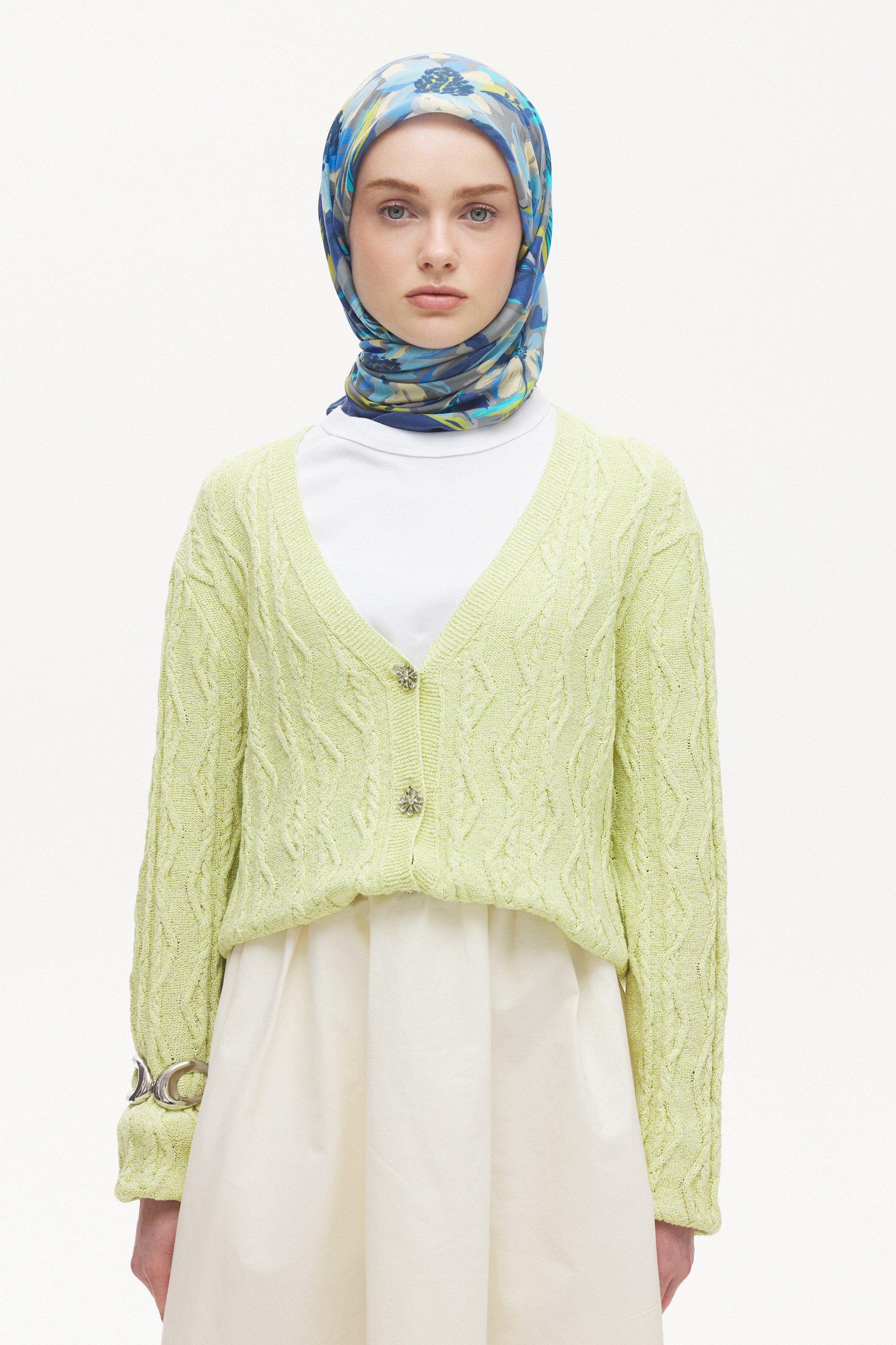 Maison Botanique desen, rafine renk geçişleri ve dengeli motif yapısıyla zamansız bir stil sunar. Günlük kombinlere yumuşak bir hareket katarken, özel anlarda zarif ve seçkin bir tamamlayıcıya dönüşür. Doğal esintilerle şekillenen bu tasarım, abartıdan uzak ama karakter sahibi bir görünüm yaratır.