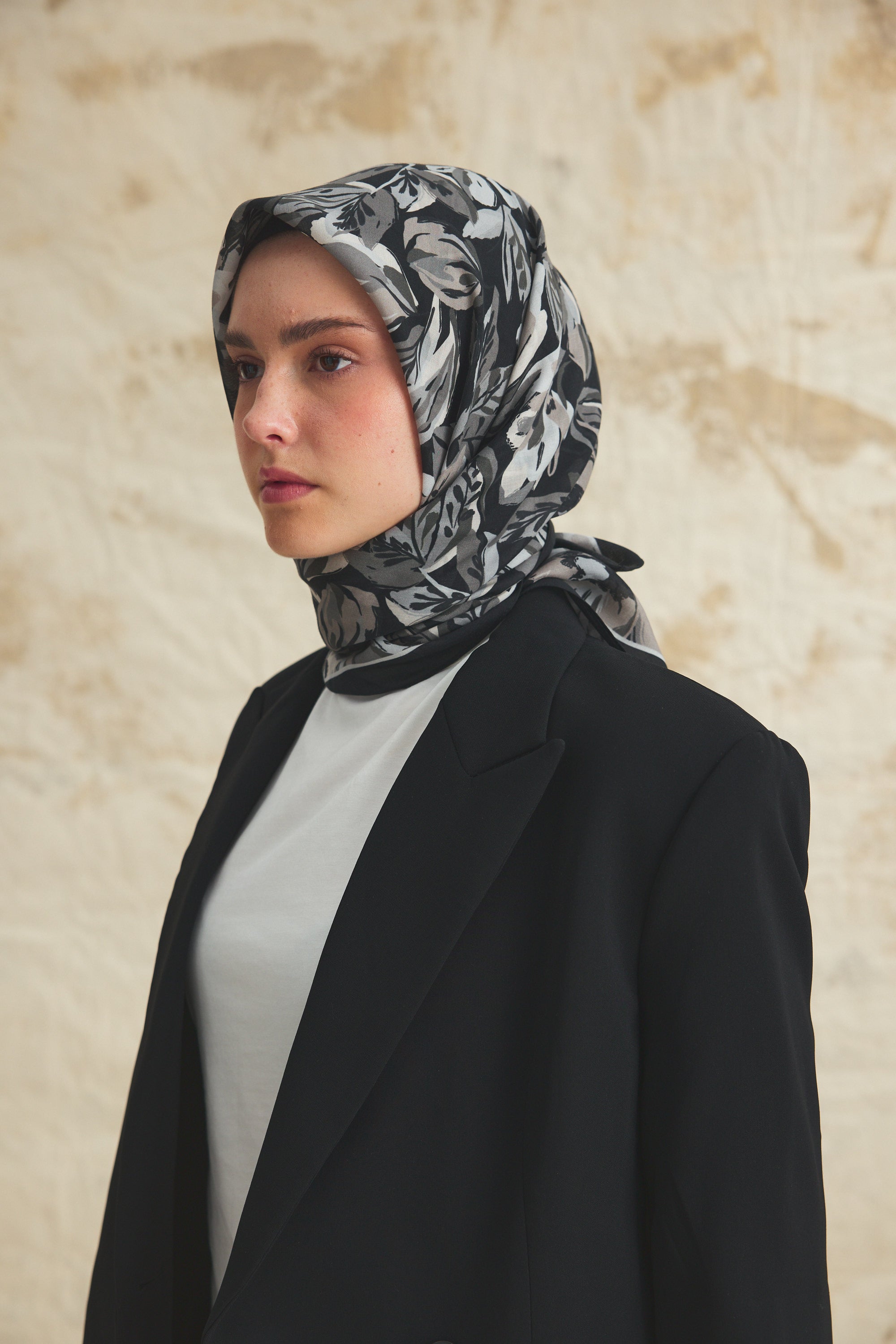 %55 Lyocell ve %45 Floş içeriğe sahip Velune eşarplar, hafiflik ve akışkanlığı estetik bir duruşla bir araya getirir. Lyocell’in nefes alabilen yapısı eşarba doğal bir konfor kazandırırken, Floş ipliğin ipeksi parlaklığı desenin inceliklerini ön plana çıkarır. Bu özel kumaş karışımı, hem formunu koruyan hem de kolay şekil alan bir kullanım sunar.