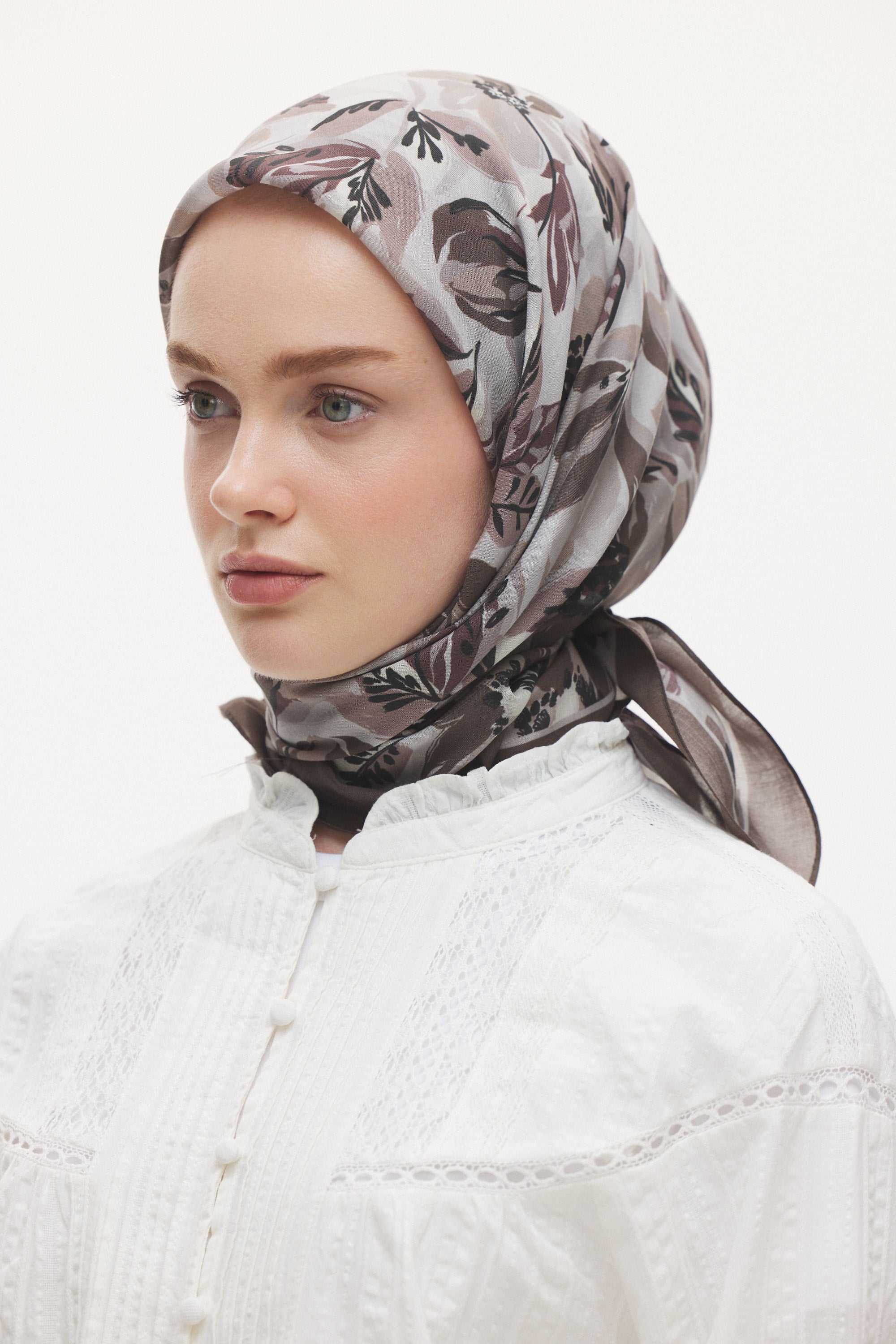 Velune Eşarp – Maison Botanique Desen, doğanın zarif detaylarından ilham alan sofistike bir tasarım yorumudur. Botanik motiflerin modern bir kompozisyonla buluştuğu bu desen, stiline doğal bir zarafet katmak isteyen kadınlar için tasarlanmıştır.