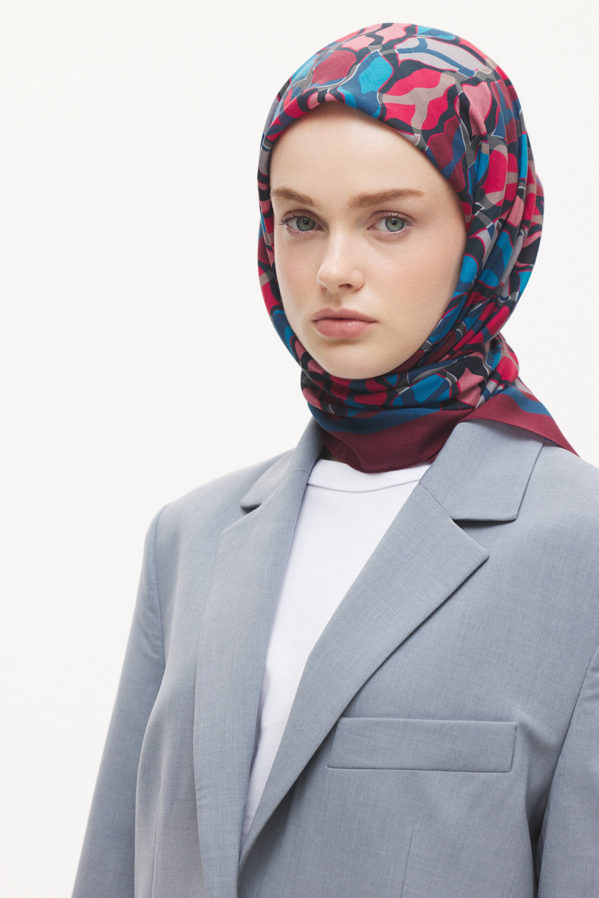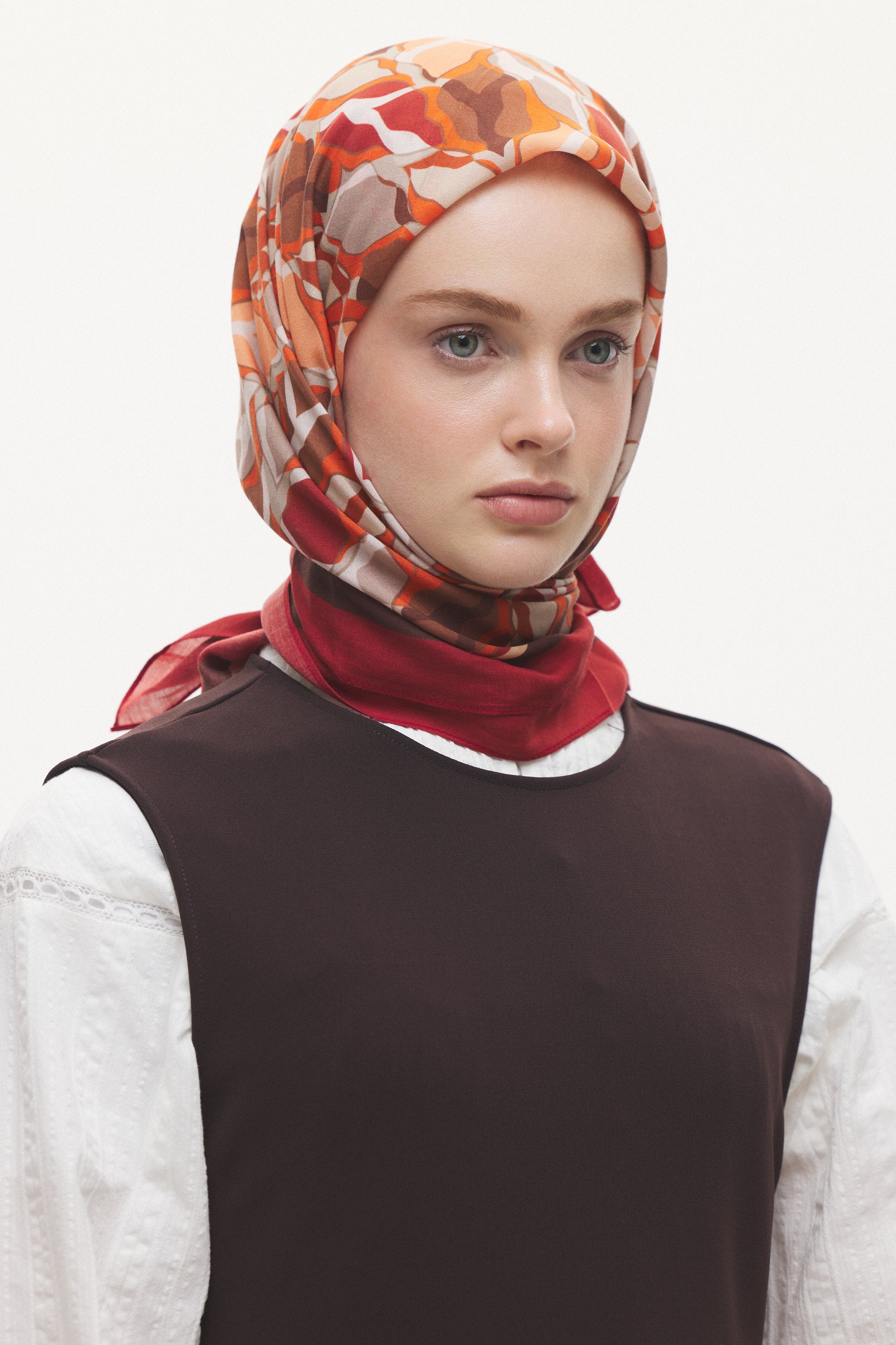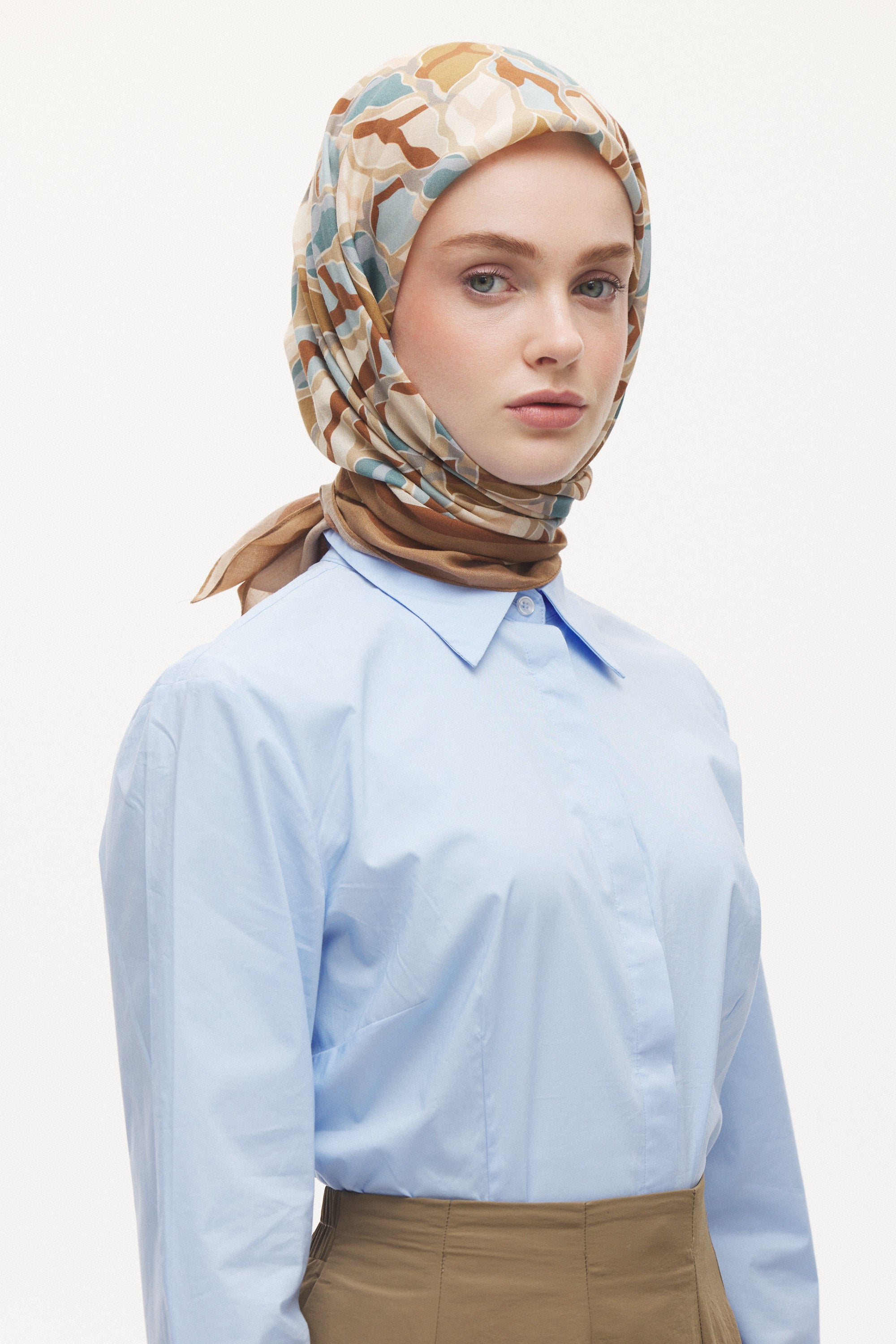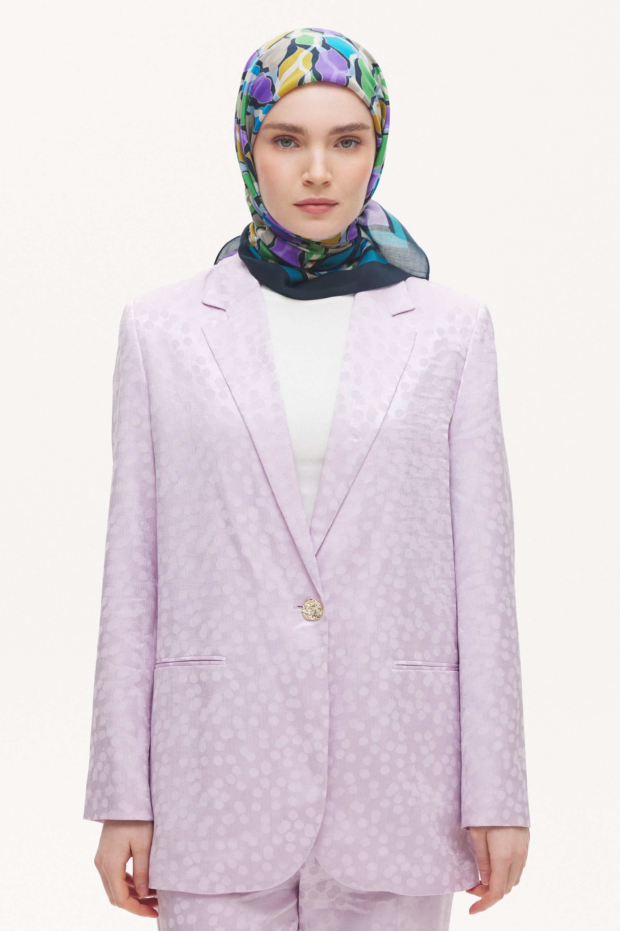 %55 Lyocell ve %45 Floş içeriğe sahip Velune eşarplar, hafiflik ve sofistike duruşu bir araya getirir. Lyocell’in nefes alabilen ve doğal akış sağlayan yapısı eşarba yumuşak bir form kazandırırken, Floş ipliğin ipeksi parlaklığı desenin hareketini zarif biçimde vurgular. Bu özel kumaş karışımı, formunu koruyan ve gün boyu konfor sunan bir kullanım deneyimi sağlar.
