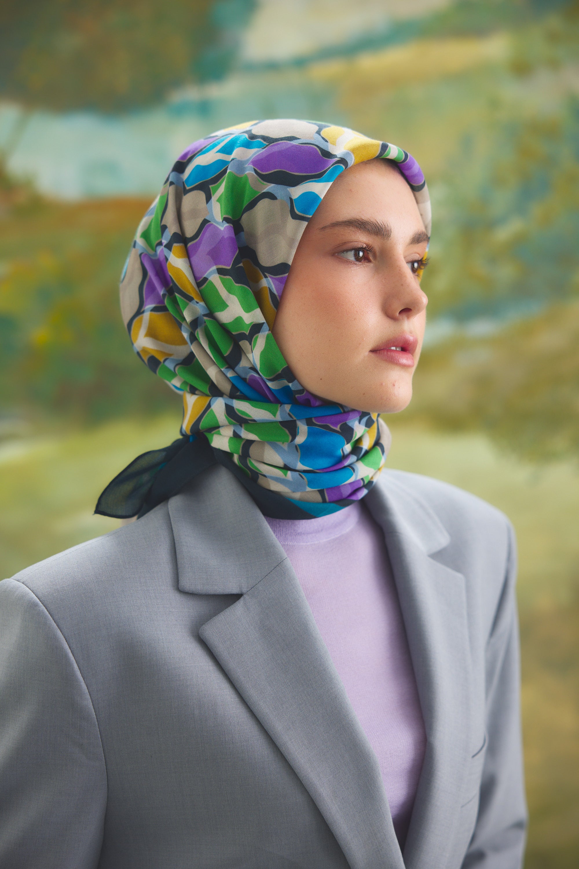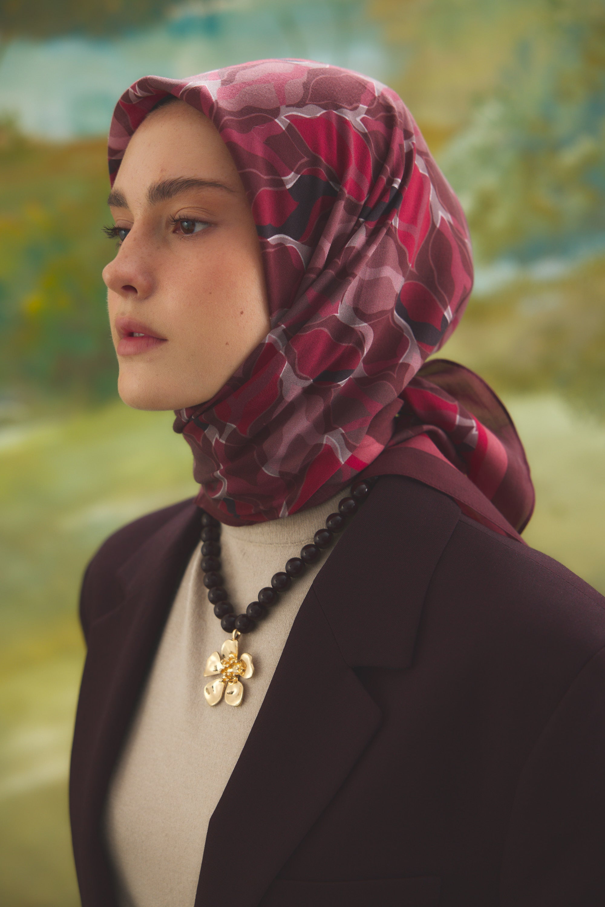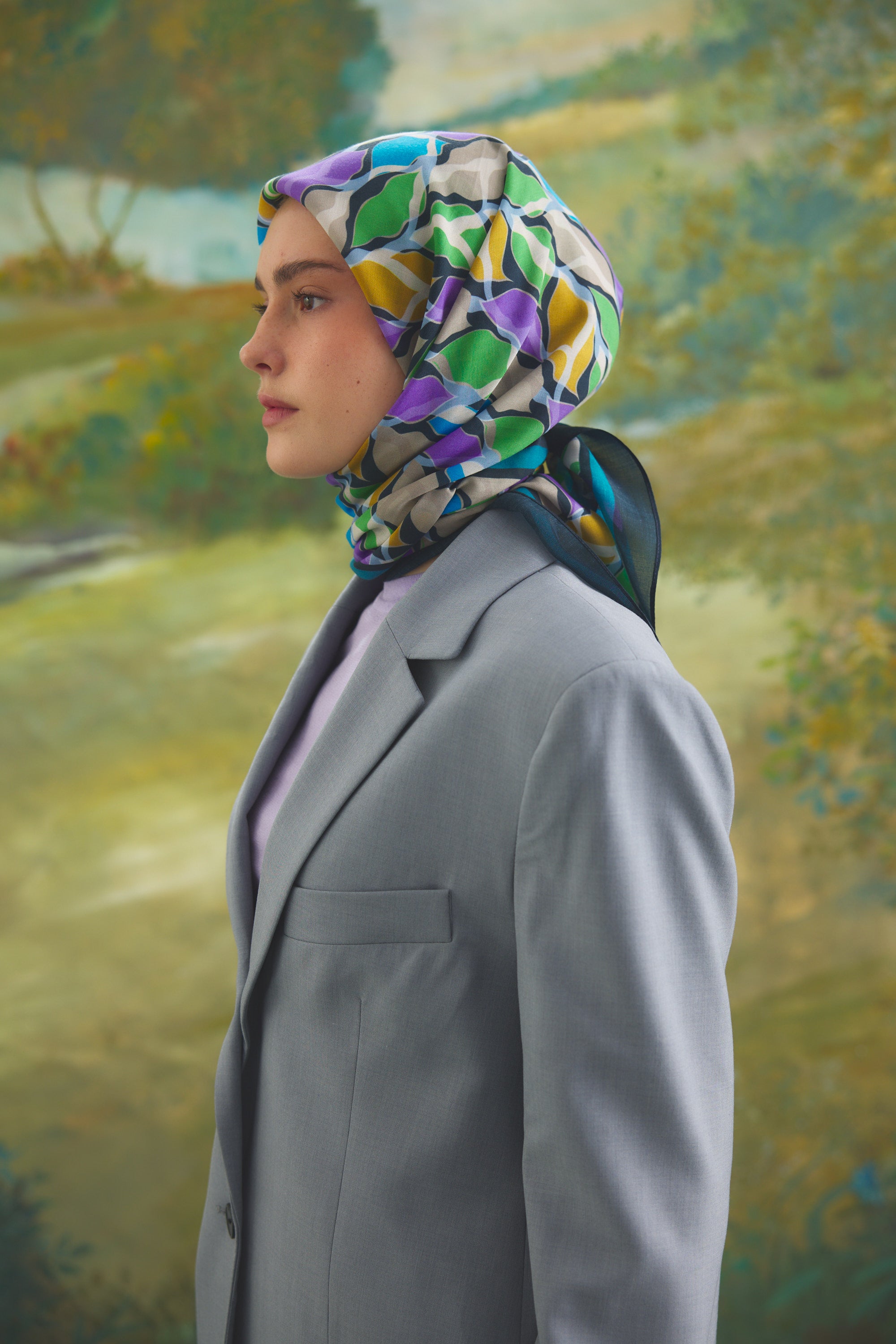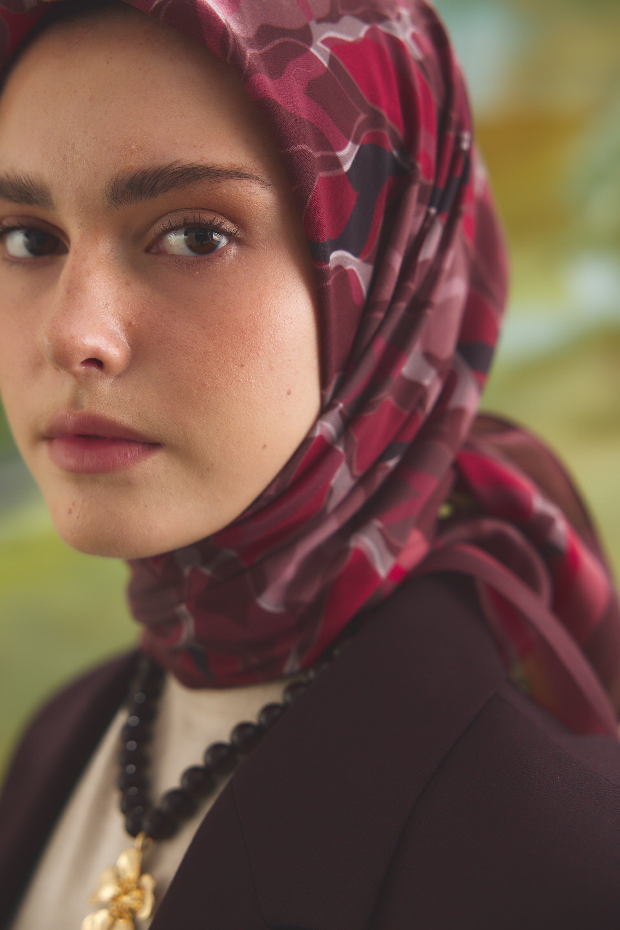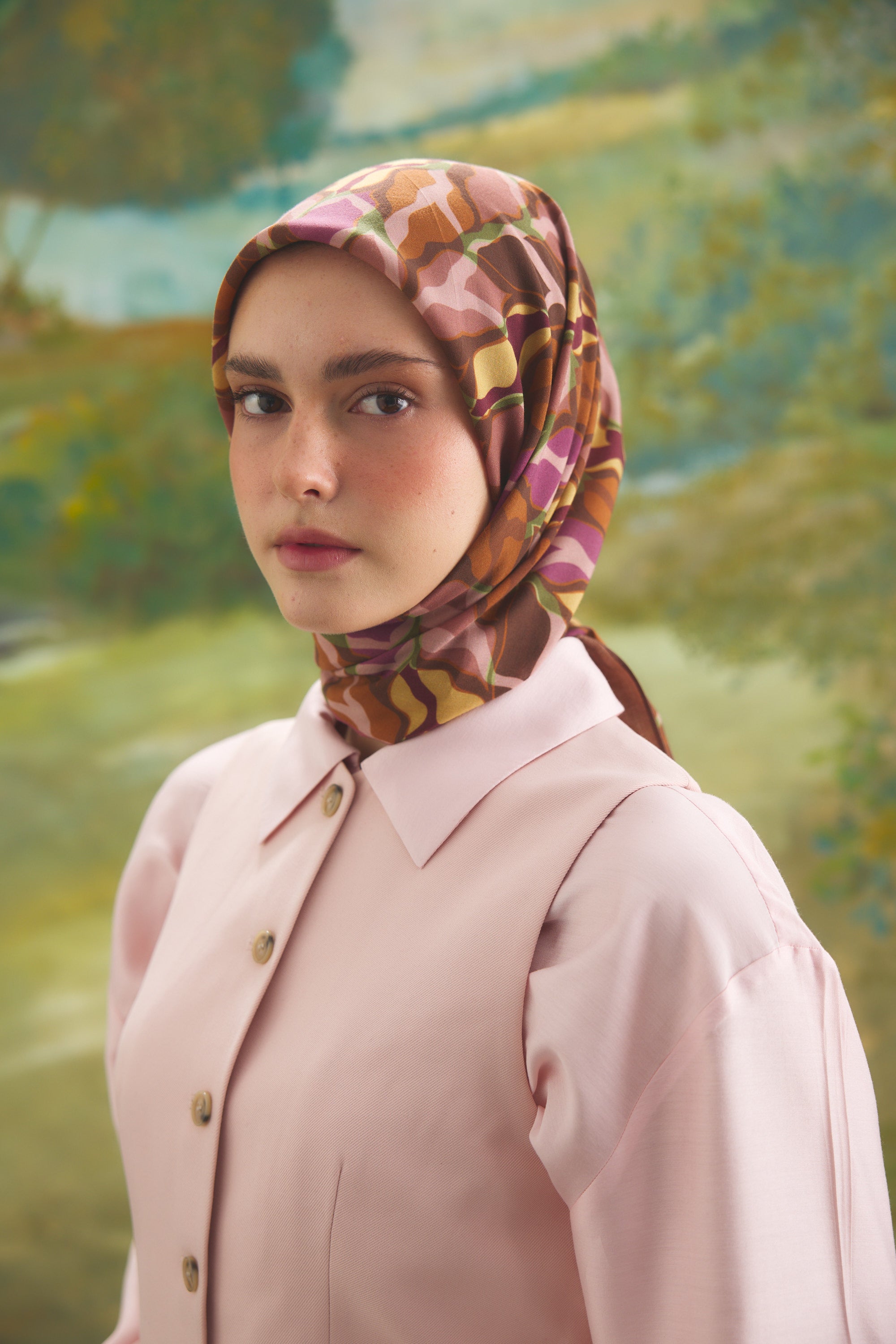 %55 Lyocell ve %45 Floş içeriğe sahip Velune eşarplar, hafiflik ve sofistike duruşu bir araya getirir. Lyocell’in nefes alabilen ve doğal akış sağlayan yapısı eşarba yumuşak bir form kazandırırken, Floş ipliğin ipeksi parlaklığı desenin hareketini zarif biçimde vurgular. Bu özel kumaş karışımı, formunu koruyan ve gün boyu konfor sunan bir kullanım deneyimi sağlar.