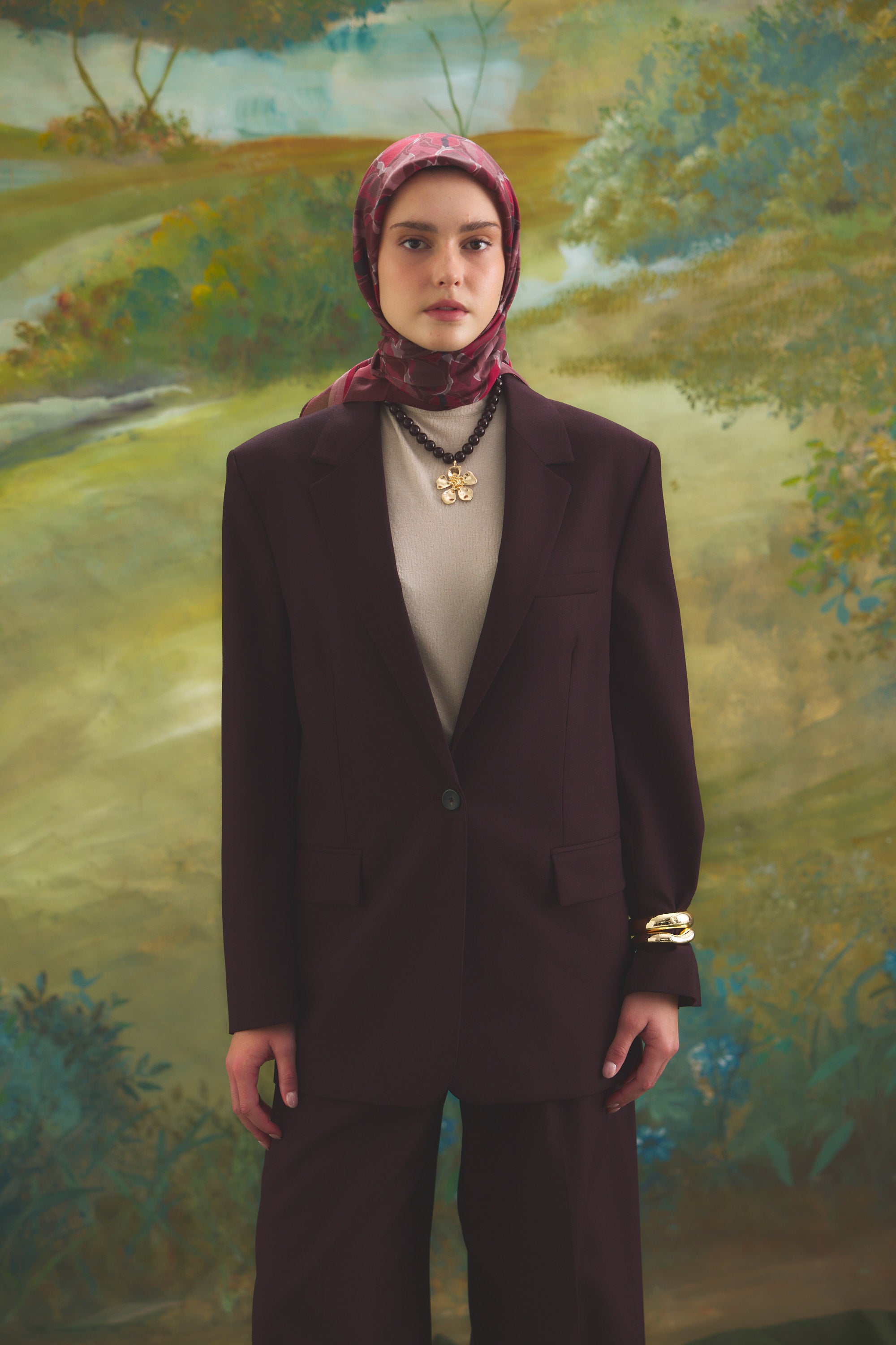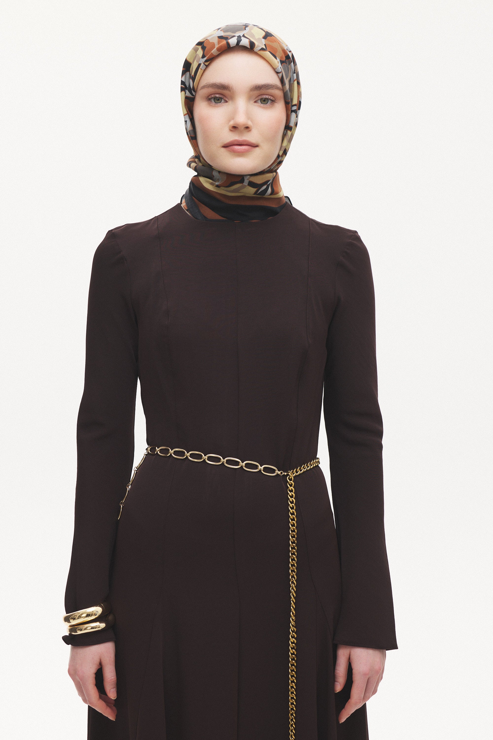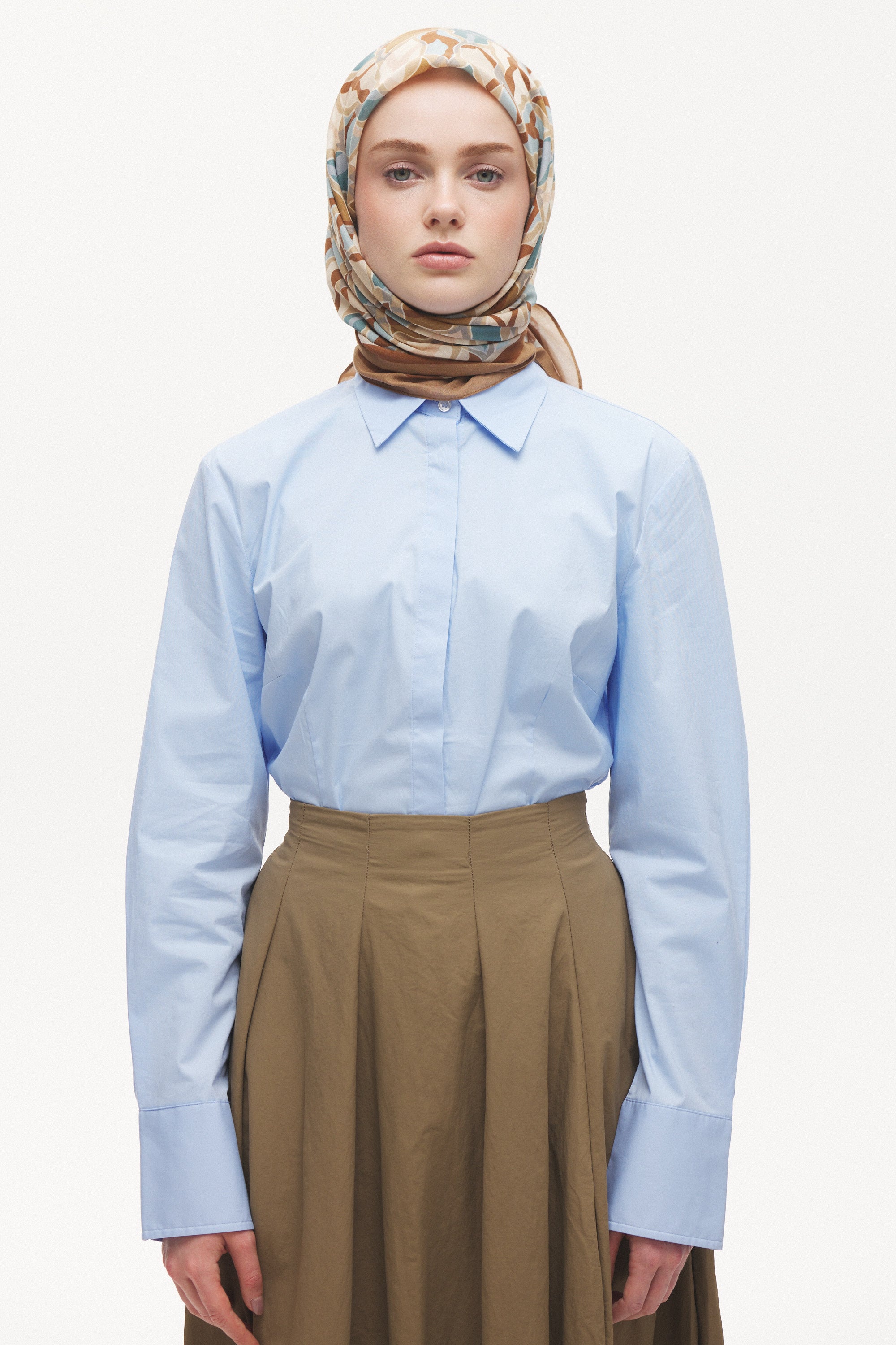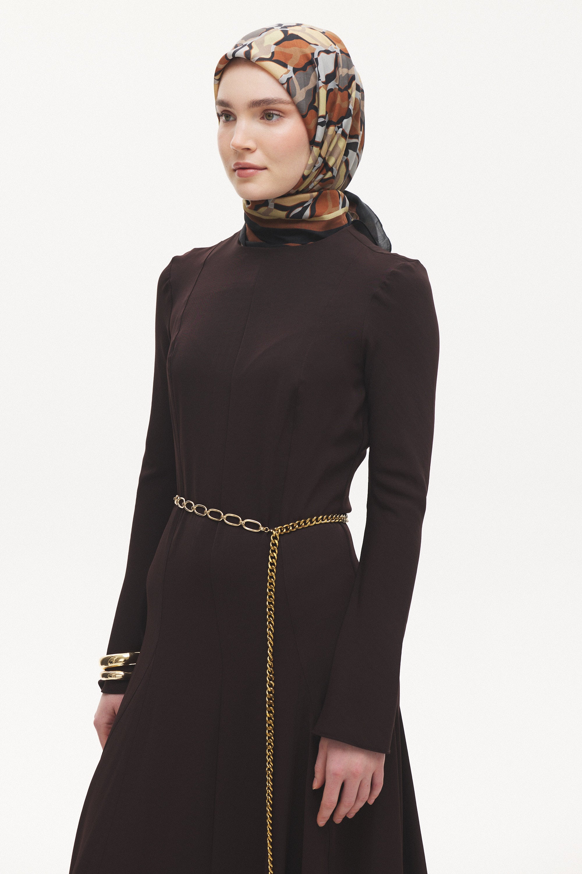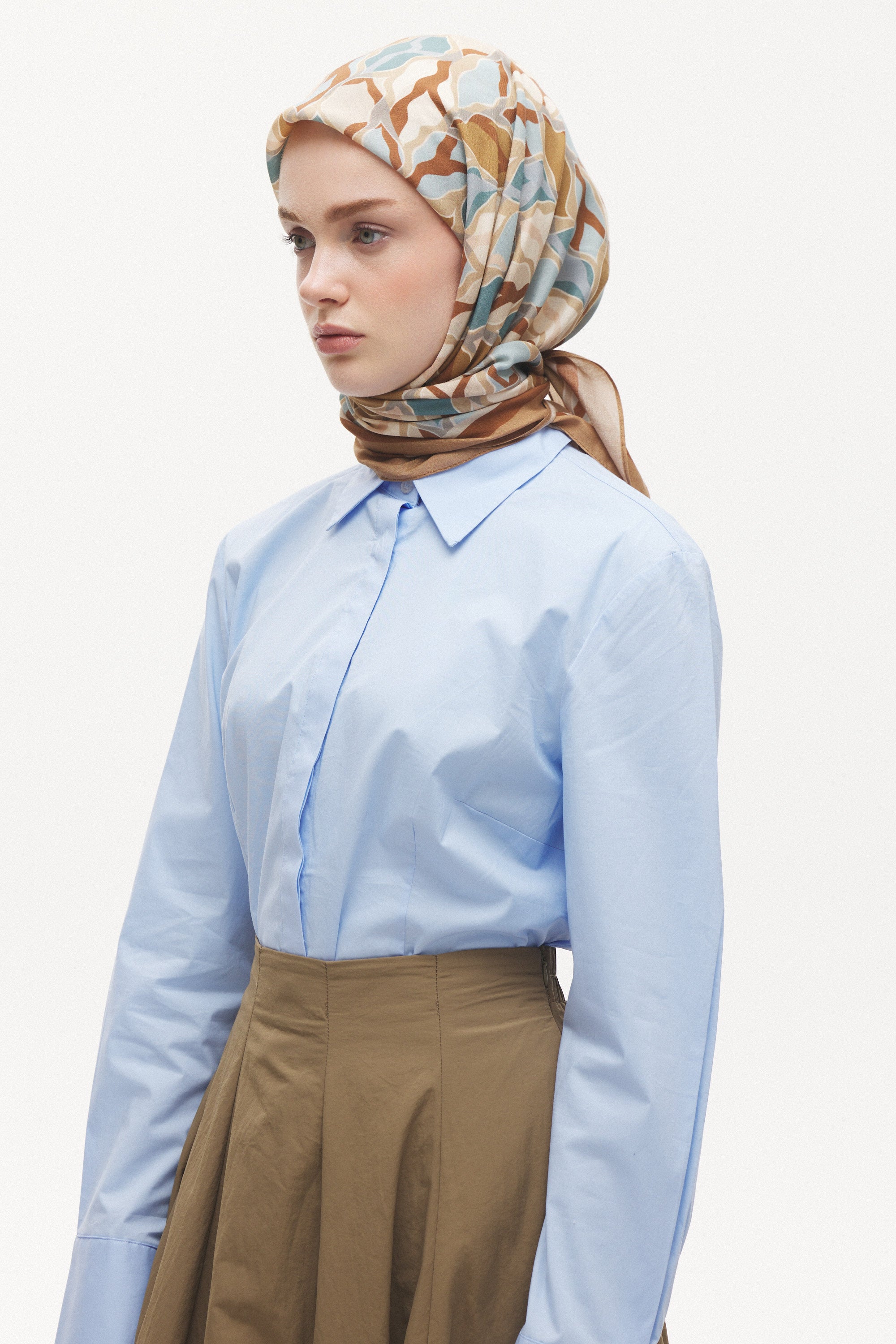 %55 Lyocell ve %45 Floş içeriğe sahip Velune eşarplar, hafiflik ve sofistike duruşu bir araya getirir. Lyocell’in nefes alabilen ve doğal akış sağlayan yapısı eşarba yumuşak bir form kazandırırken, Floş ipliğin ipeksi parlaklığı desenin hareketini zarif biçimde vurgular. Bu özel kumaş karışımı, formunu koruyan ve gün boyu konfor sunan bir kullanım deneyimi sağlar.