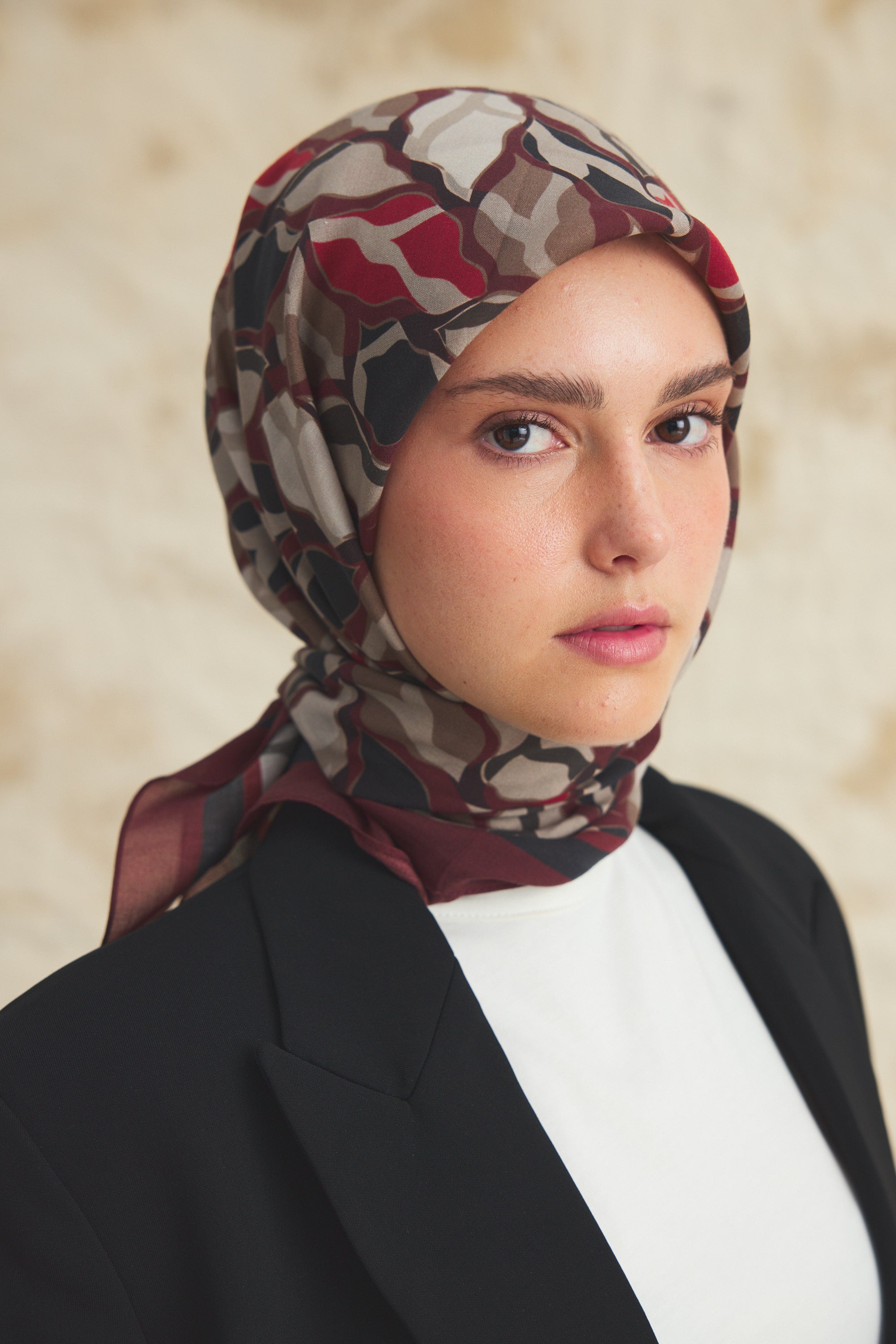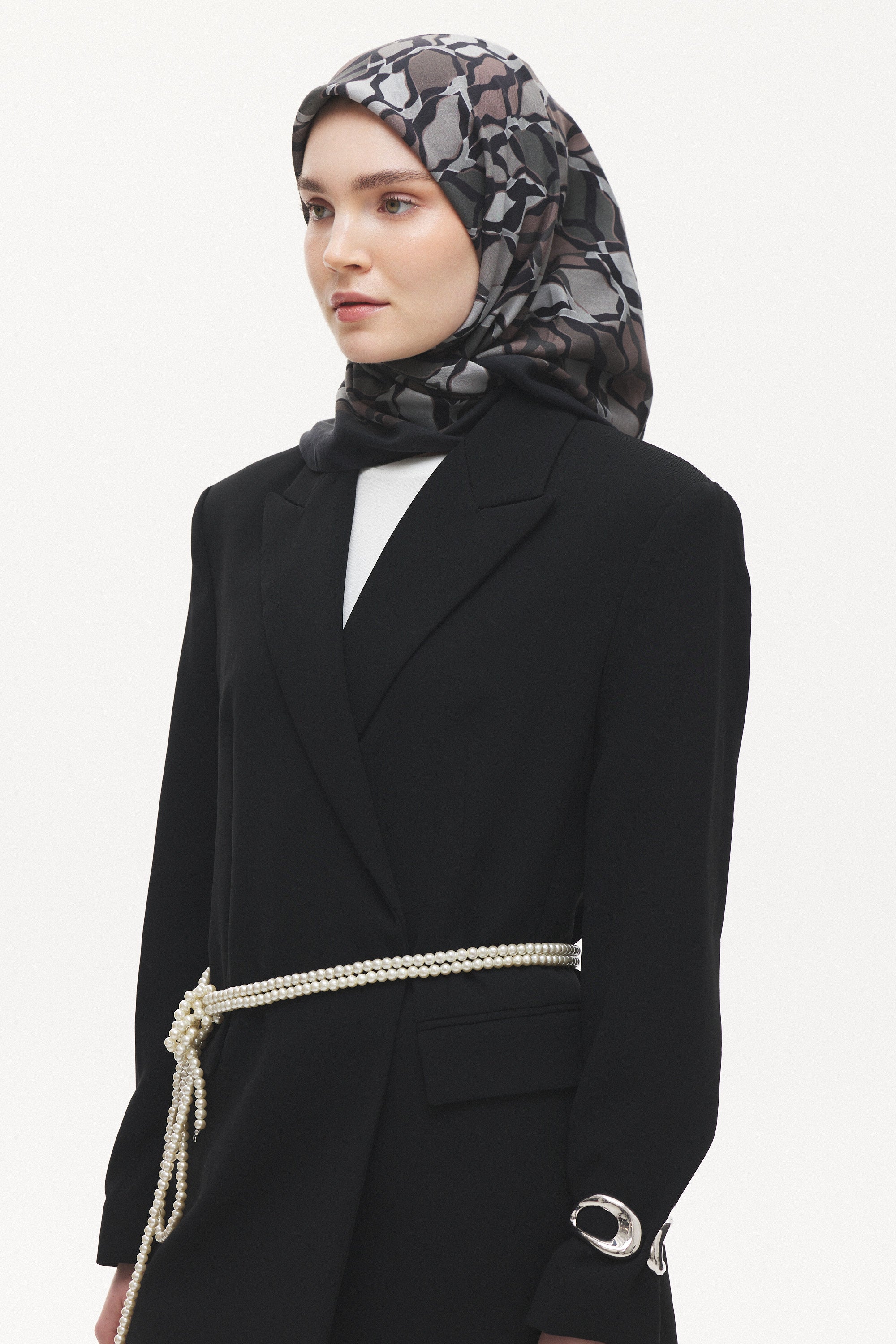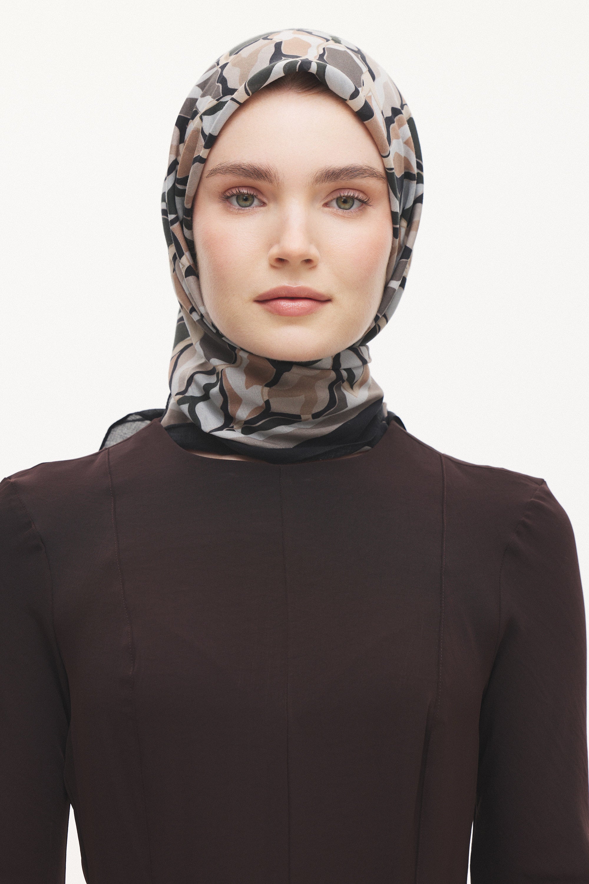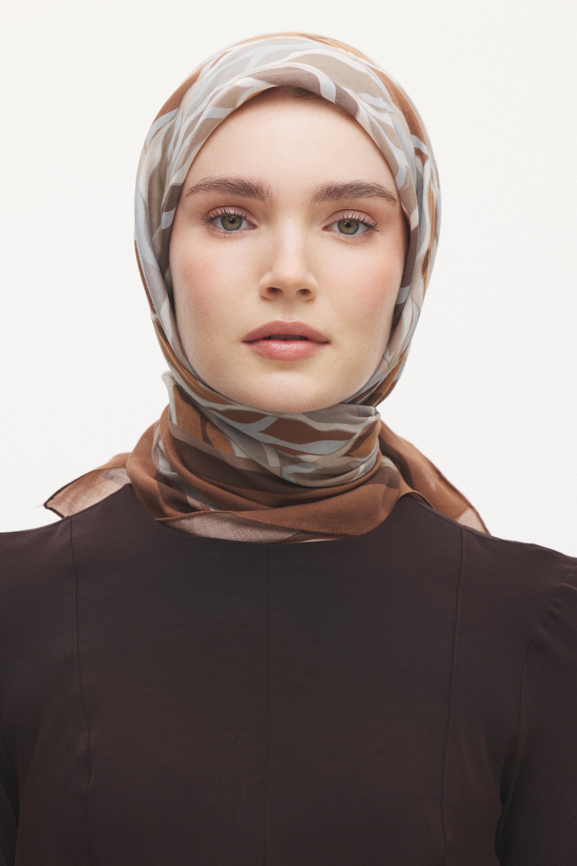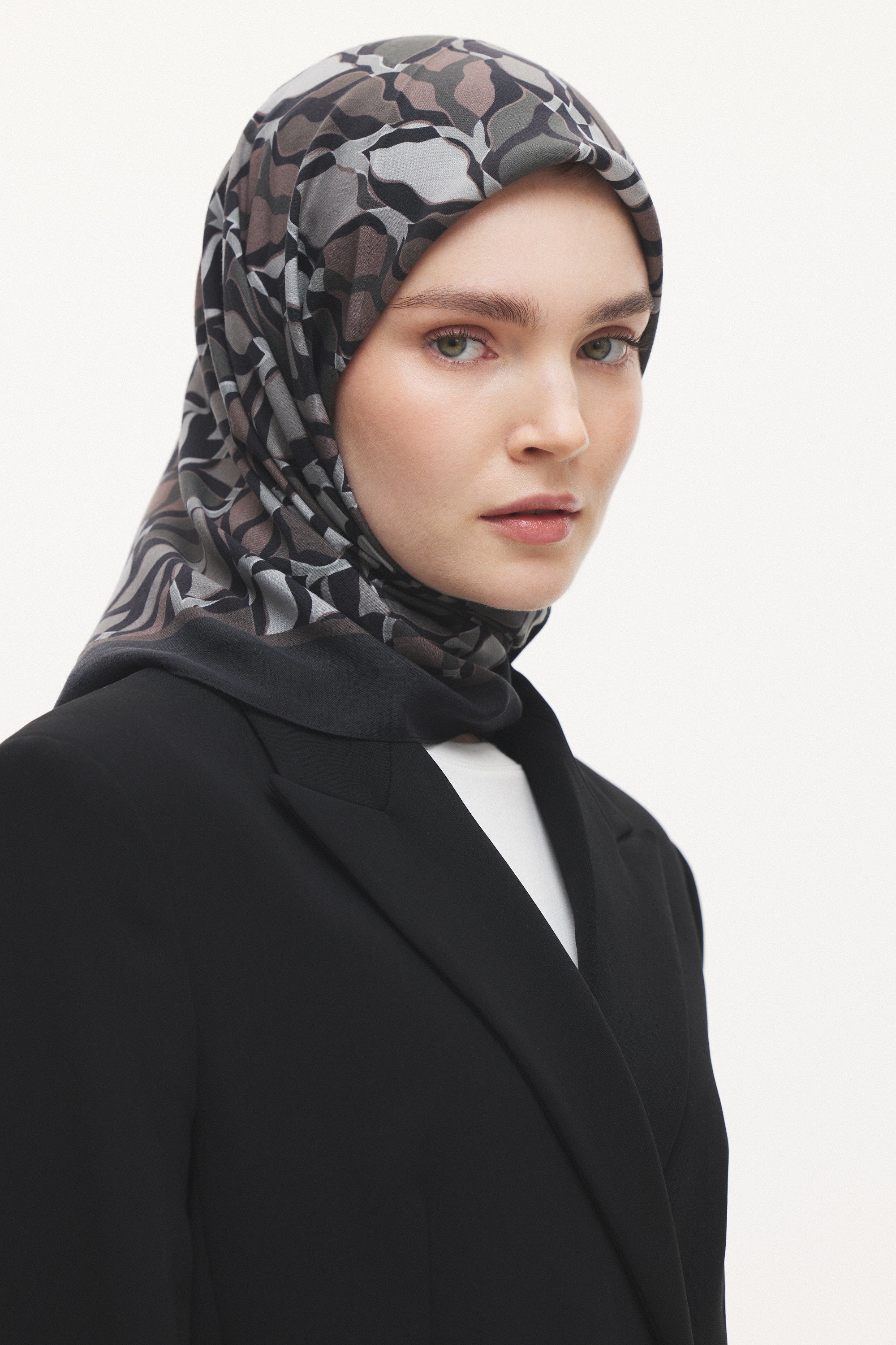 Velune Eşarp – Serena Wave Desen, akışkan çizgilerin zarif bir ritimle buluştuğu modern bir tasarım yorumudur. Dalga formundan ilham alan desen kompozisyonu, dinamik ama dengeli bir estetik sunar.