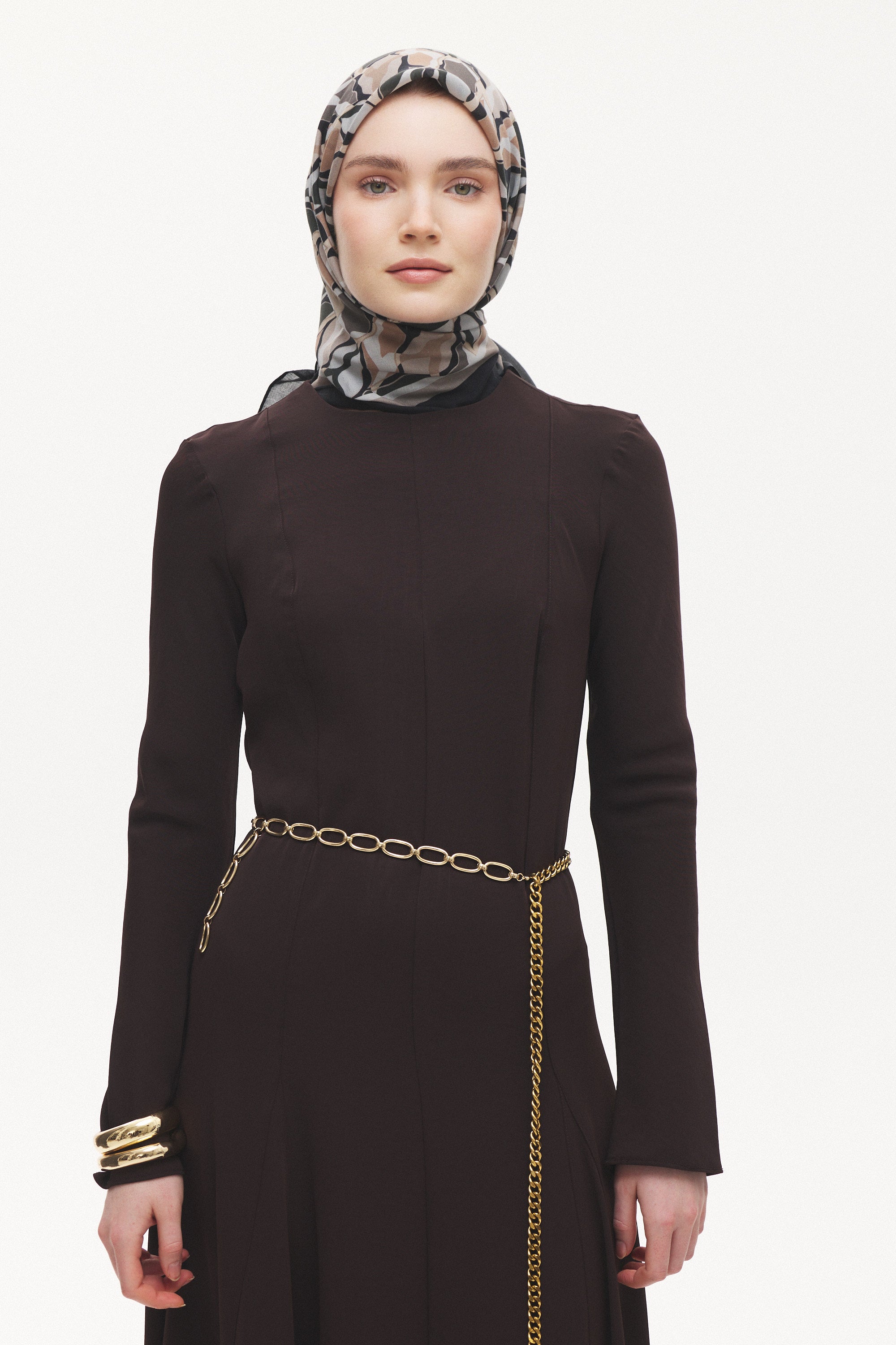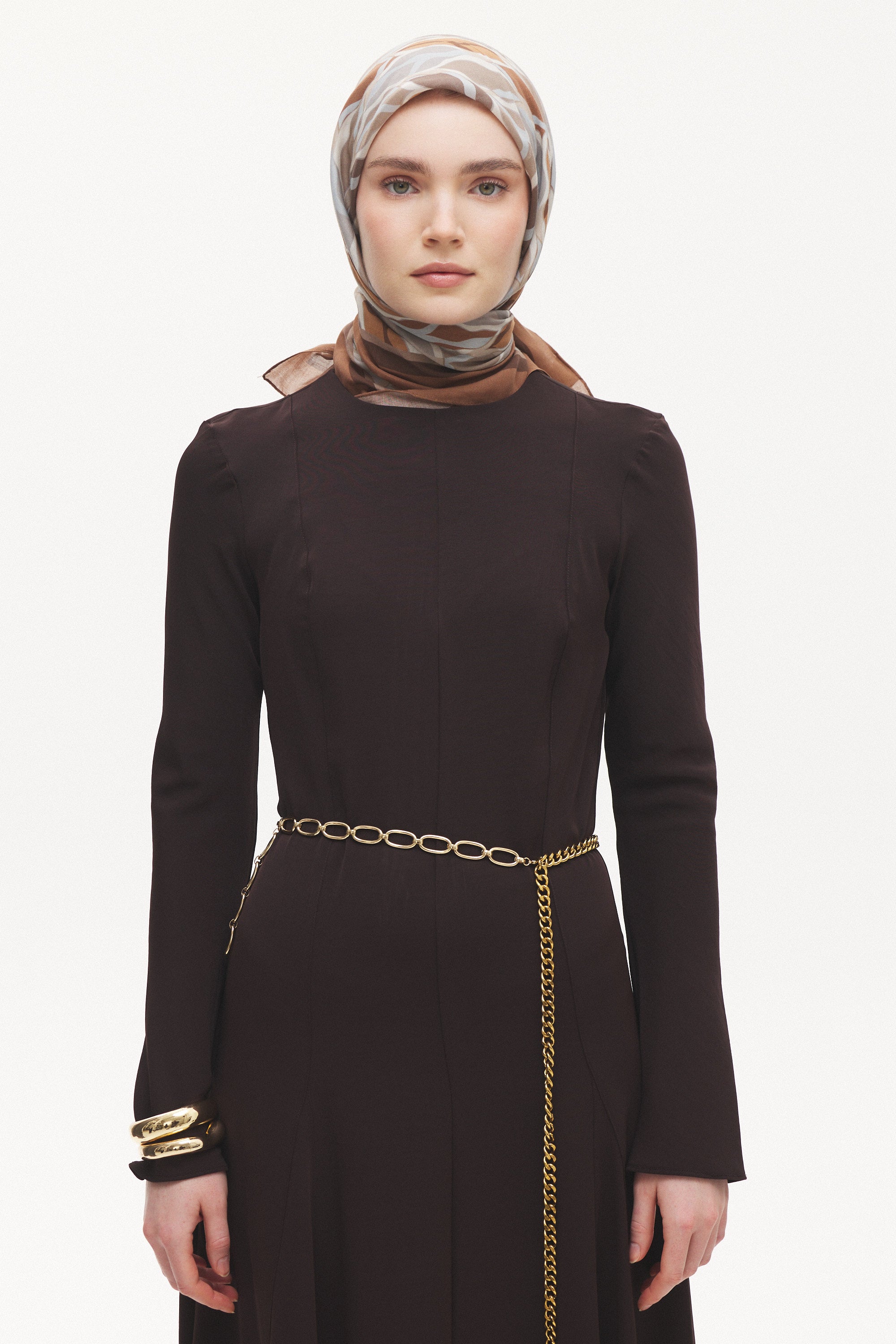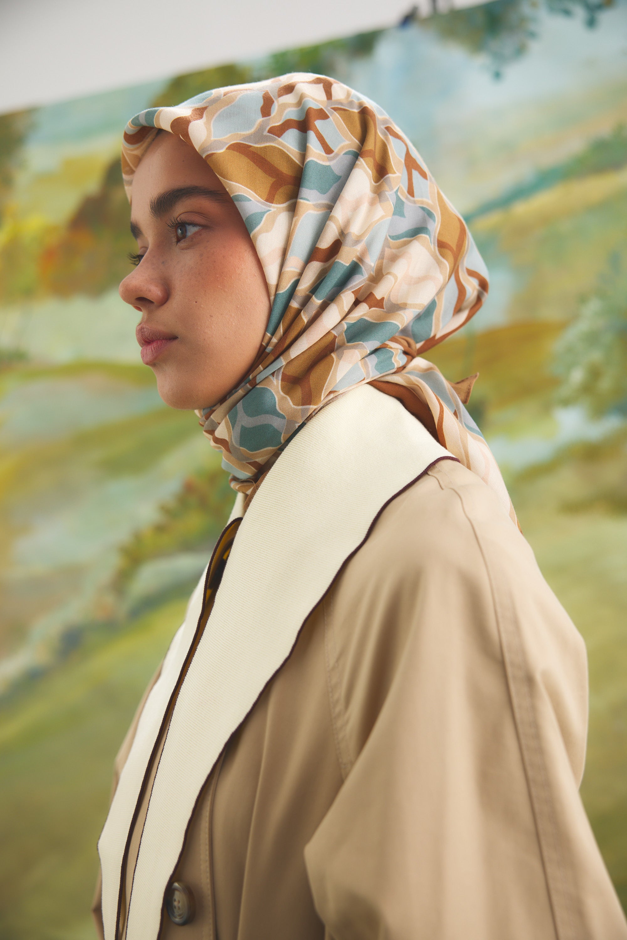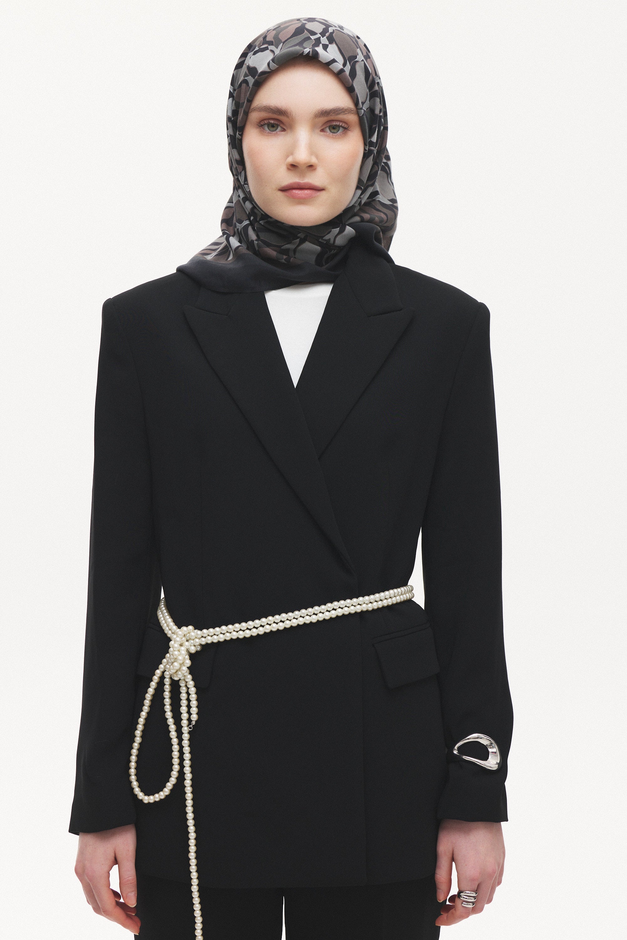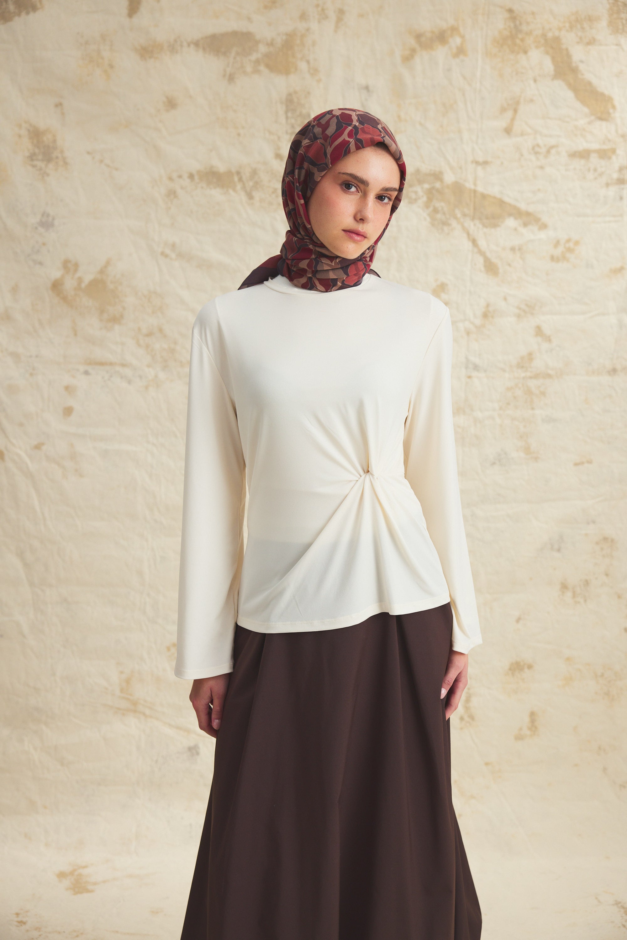 Velune Eşarp – Serena Wave Desen, akışkan çizgilerin zarif bir ritimle buluştuğu modern bir tasarım yorumudur. Dalga formundan ilham alan desen kompozisyonu, dinamik ama dengeli bir estetik sunar.