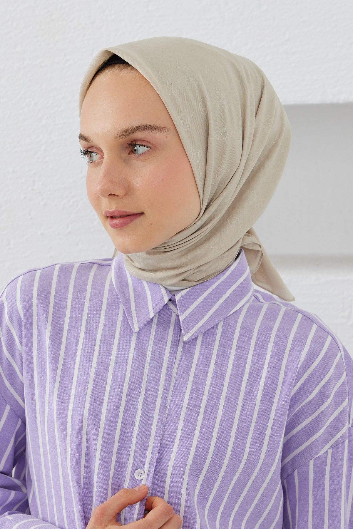 Monogram Pattern Scarf, which is not see-through with its cottony texture and does not require ironing, is suitable for use in all seasons, the front is easy to shape, you can use it upright or round according to your preference.