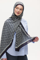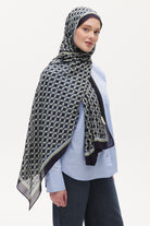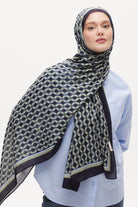 Organik Pamuk Loa Desen Viscon Şal - Lacivert - Yeşil
