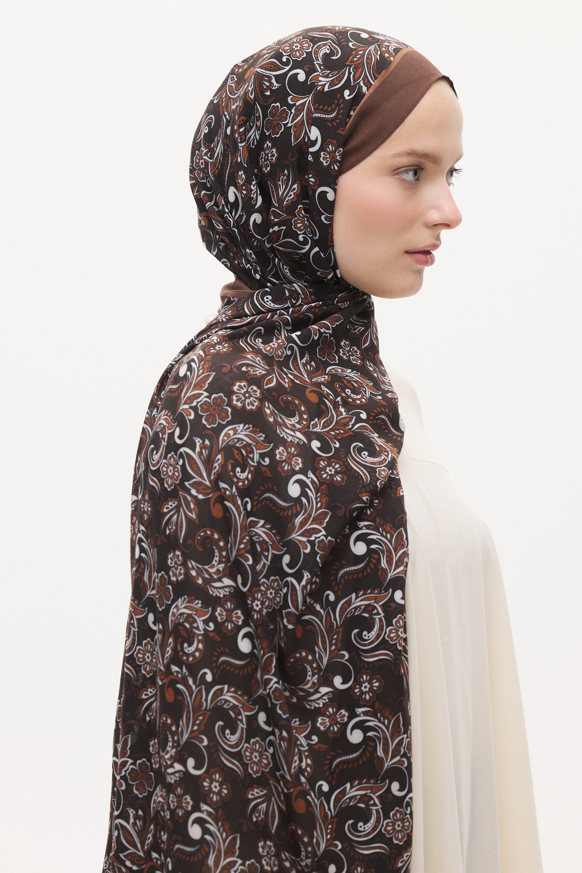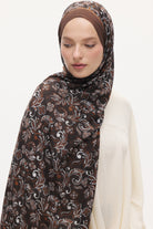 Organik Pamuk Mira Desen Viscon Şal - Acı Kahve