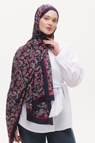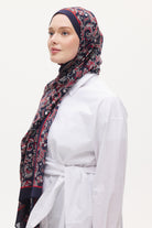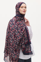 Organik Pamuk Mira Desen Viscon Şal - Lacivert - Kırmızı