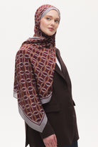 Organik Pamuk Nora Desen Viscon Şal - Bordo-Taş