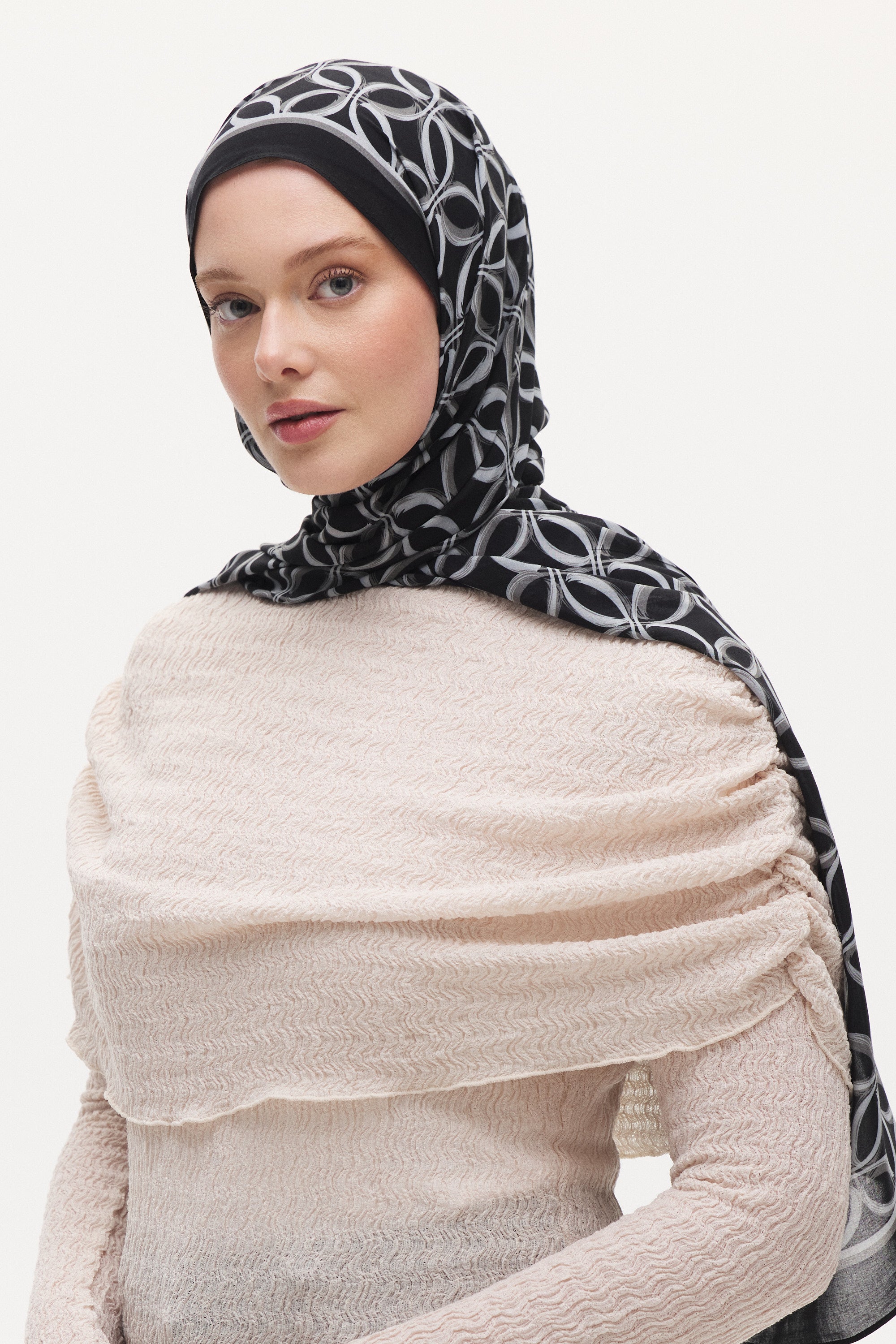 Organik Pamuk Nora Desen Viscon Şal - Siyah - Gri