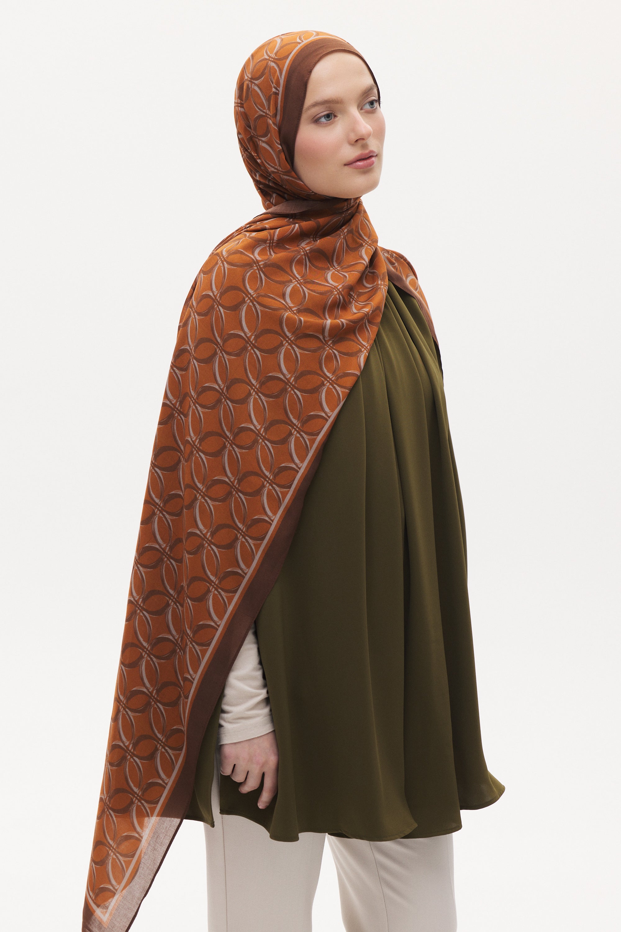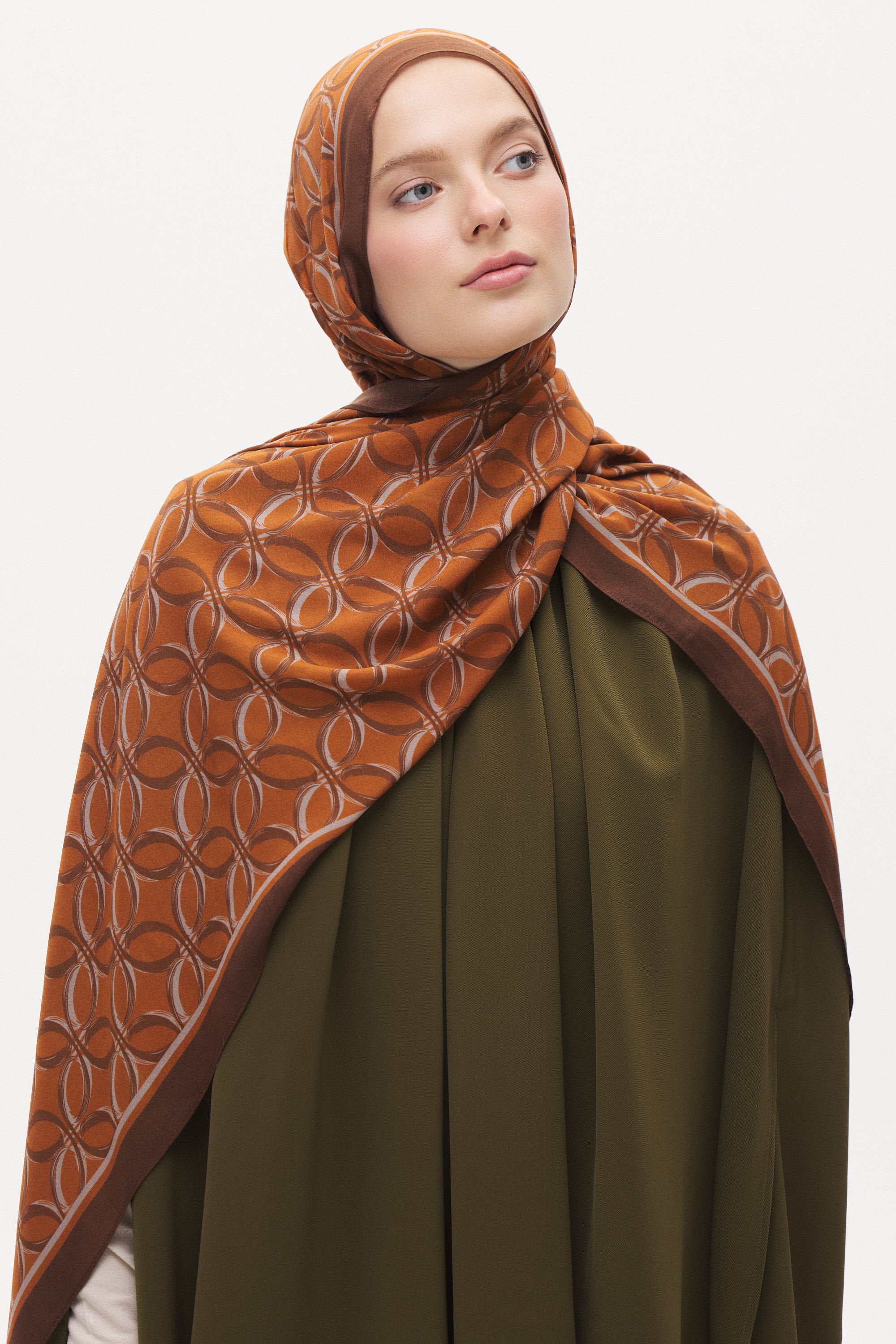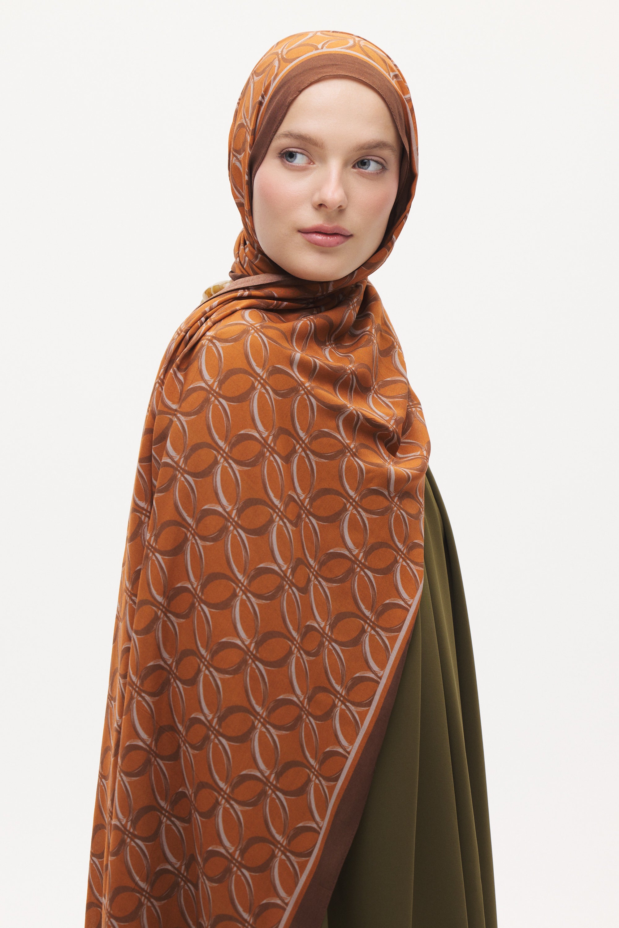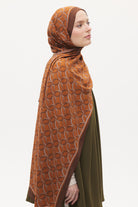 Organik Pamuk Nora Desen Viscon Şal - Taba