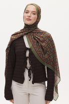 Organik Pamuk Nora Desen Viscon Şal - Zeytin Yeşil