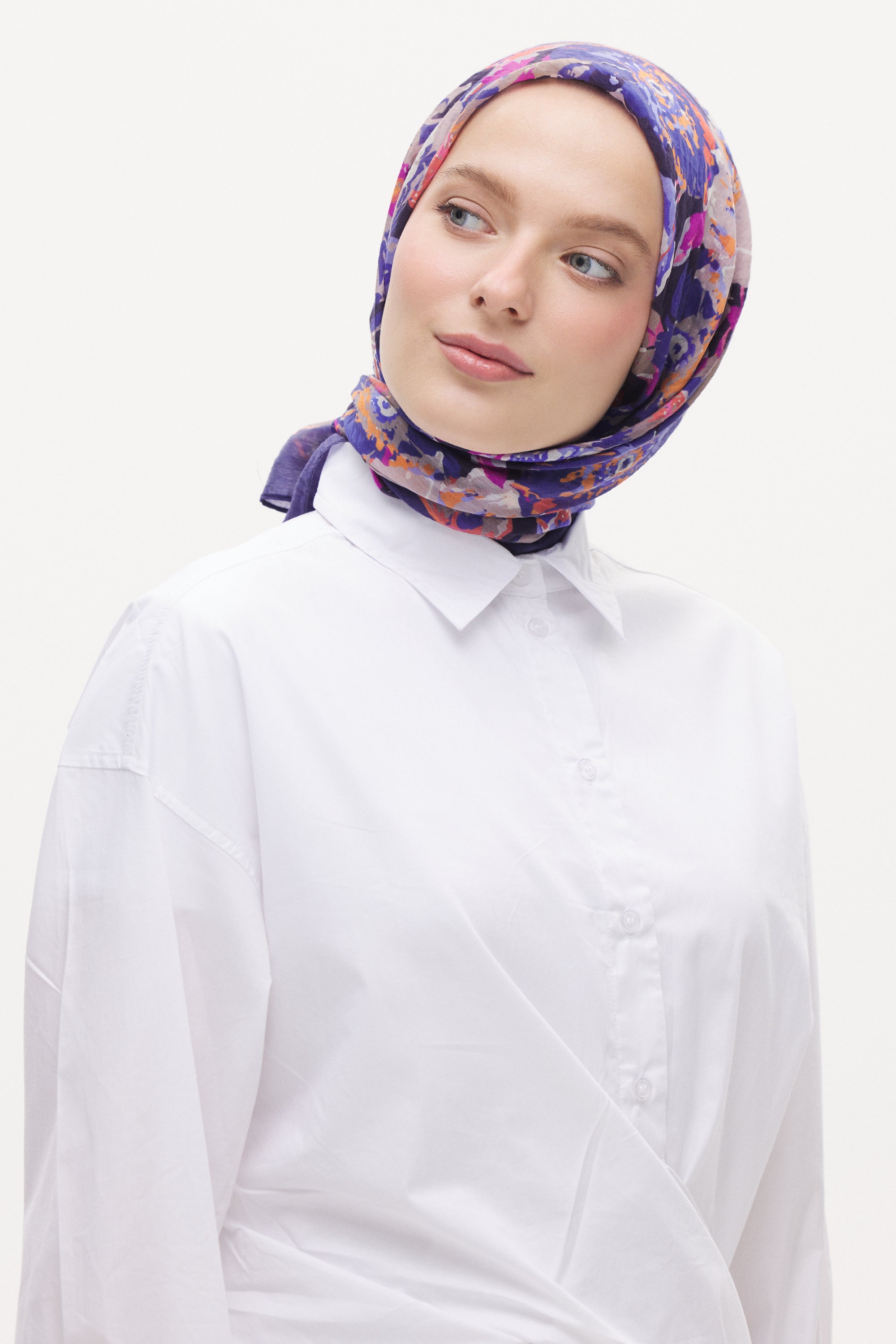 Florenza desenin yoğun çiçek formu eşarba hareketli ve dengeli bir görünüm kazandırır. Doğal ve akıcı desen yapısı sayesinde sade kombinleri tamamlayan zarif bir stil oluşturur.