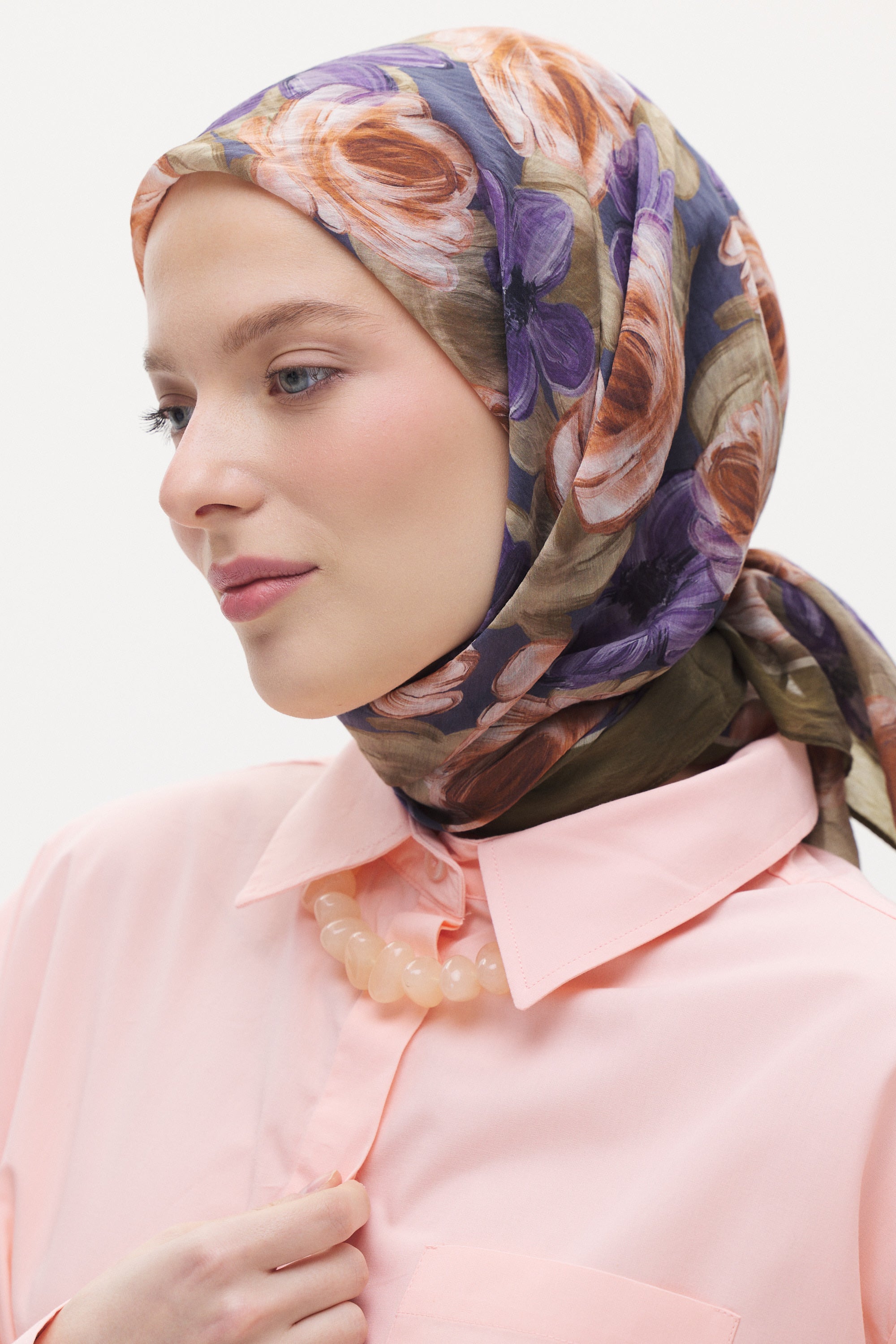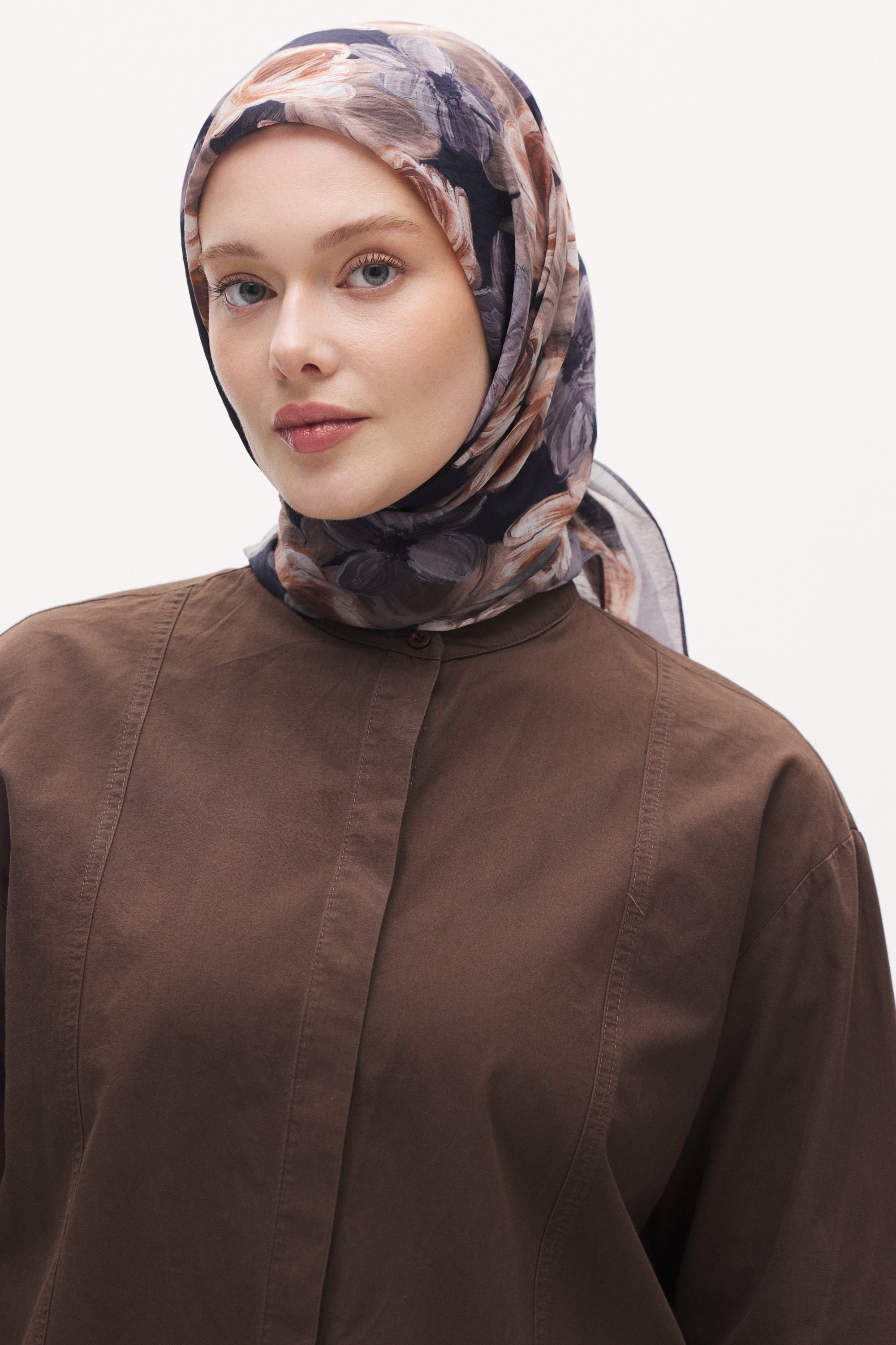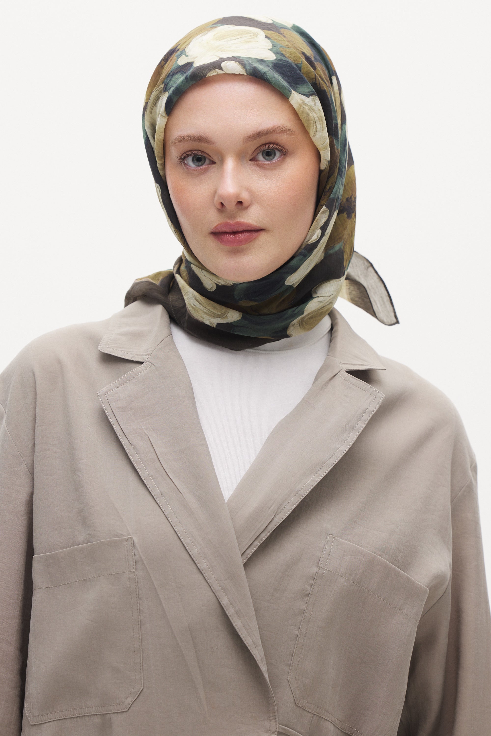 Rosella desenin yoğun gül formu eşarba romantik ve zarif bir görünüm kazandırır. Akıcı ve dengeli desen yapısı sayesinde sade kombinleri tamamlayan şık ve zamansız bir stil oluşturur.