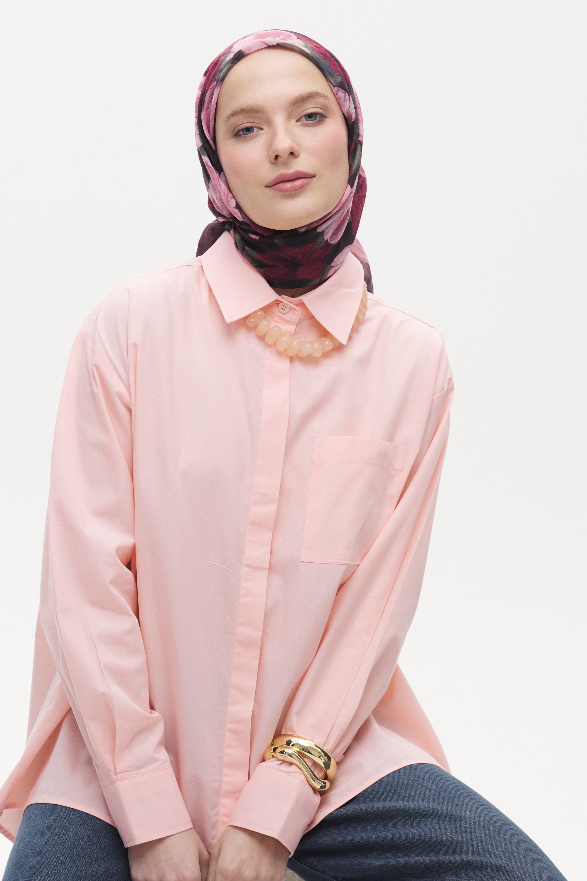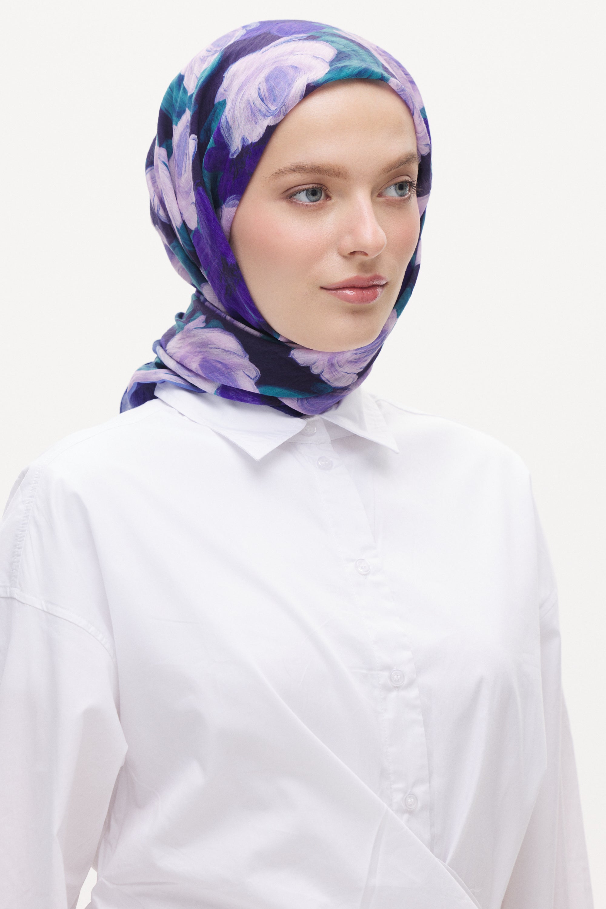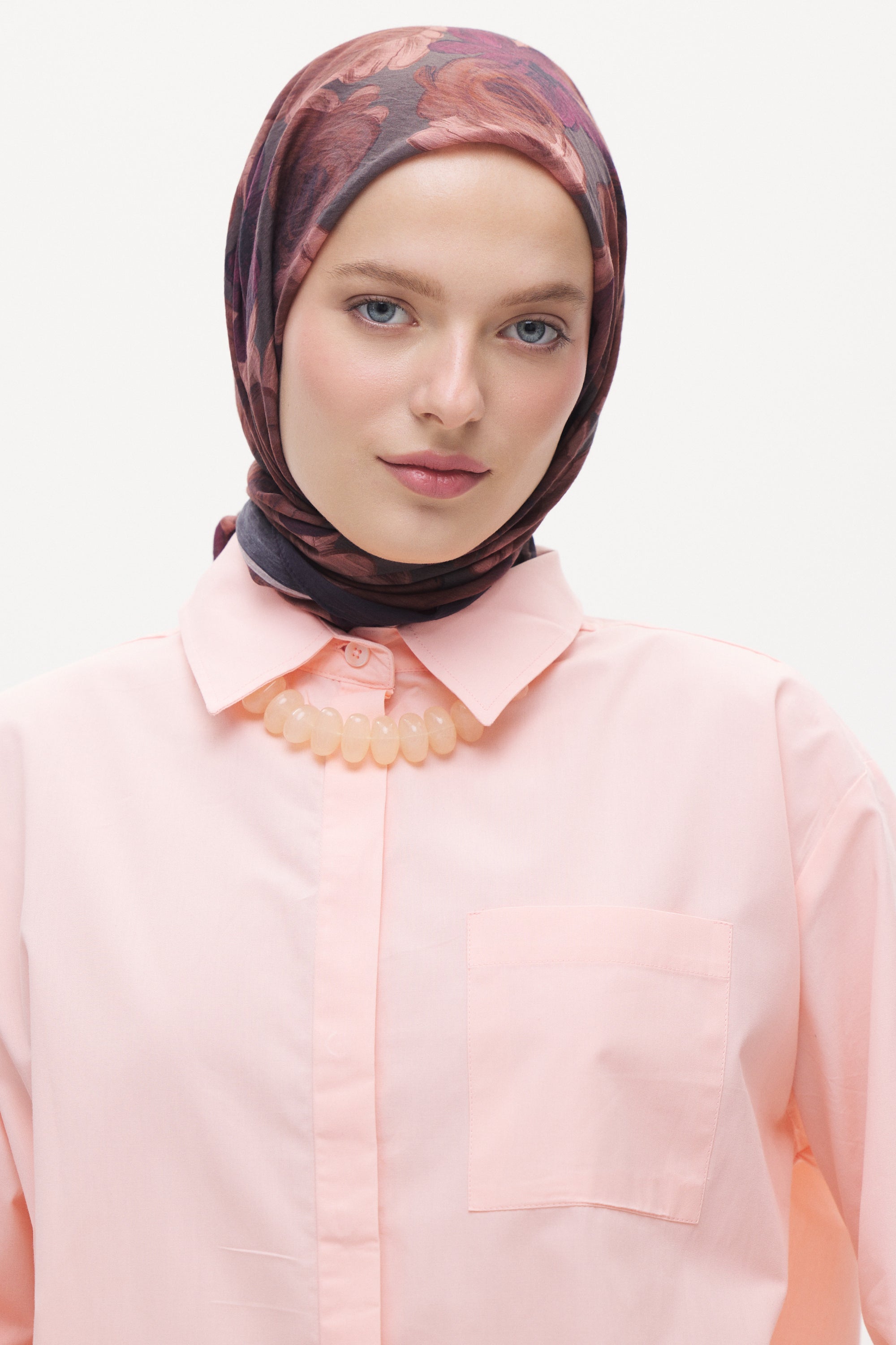 Rosella desenin yoğun gül formu eşarba romantik ve zarif bir görünüm kazandırır. Akıcı ve dengeli desen yapısı sayesinde sade kombinleri tamamlayan şık ve zamansız bir stil oluşturur.