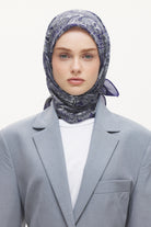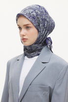 Velune Paisley Heritage Desen Lyocell Eşarp - Lacivert - Gri