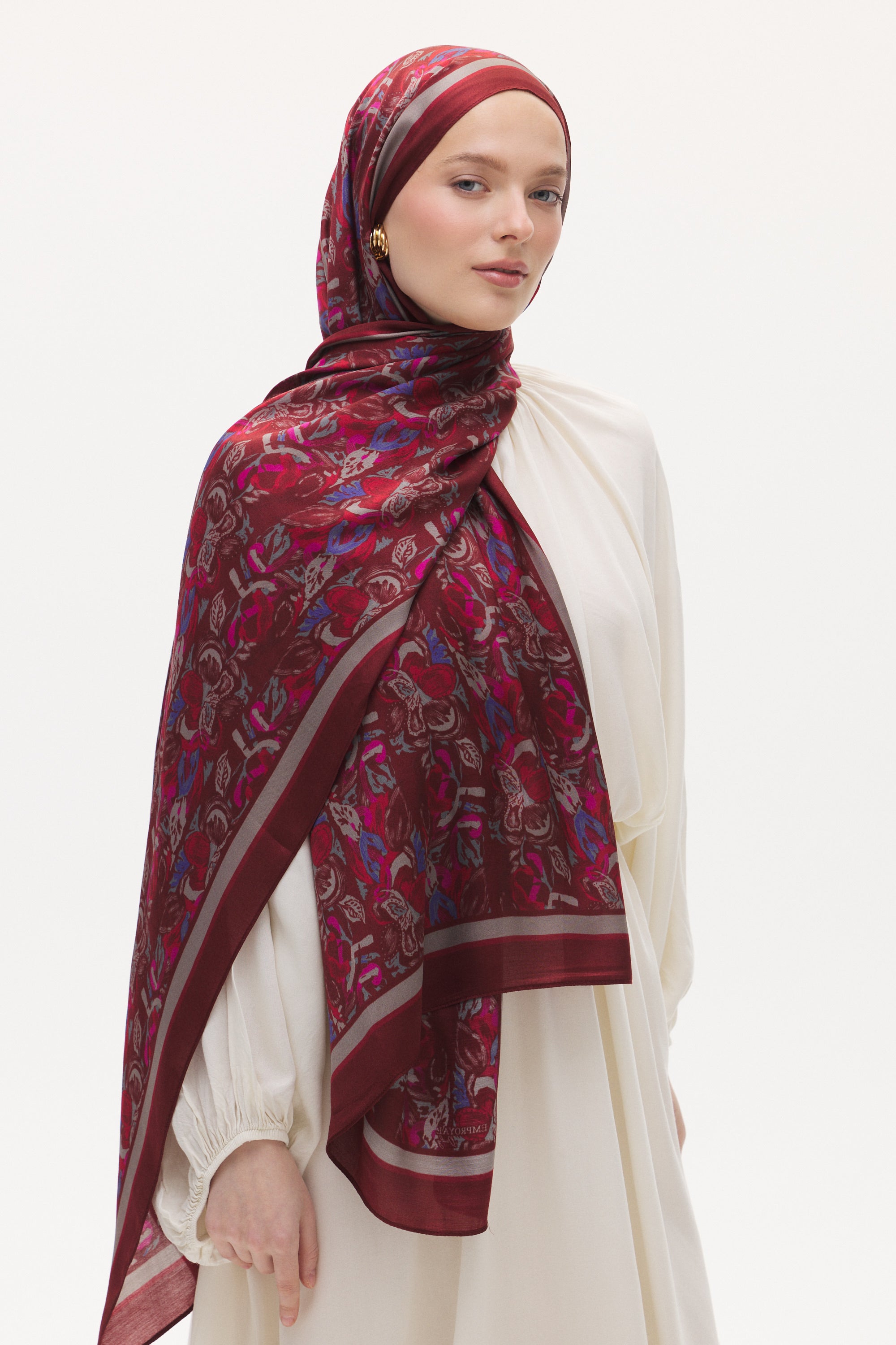 Zeyra Flow Armony Desen Floş - Viscon Şal - Burgundy