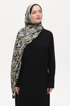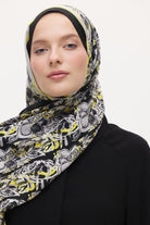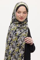 Zeyra Flow Armony Desen Floş - Viscon Şal - Siyah - Sarı