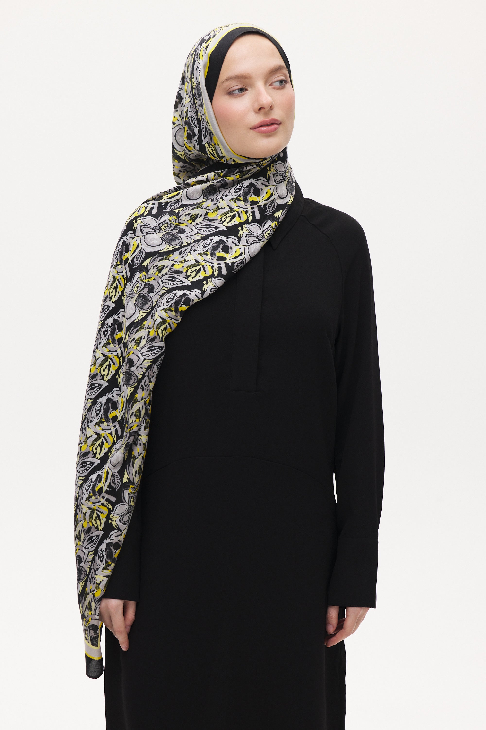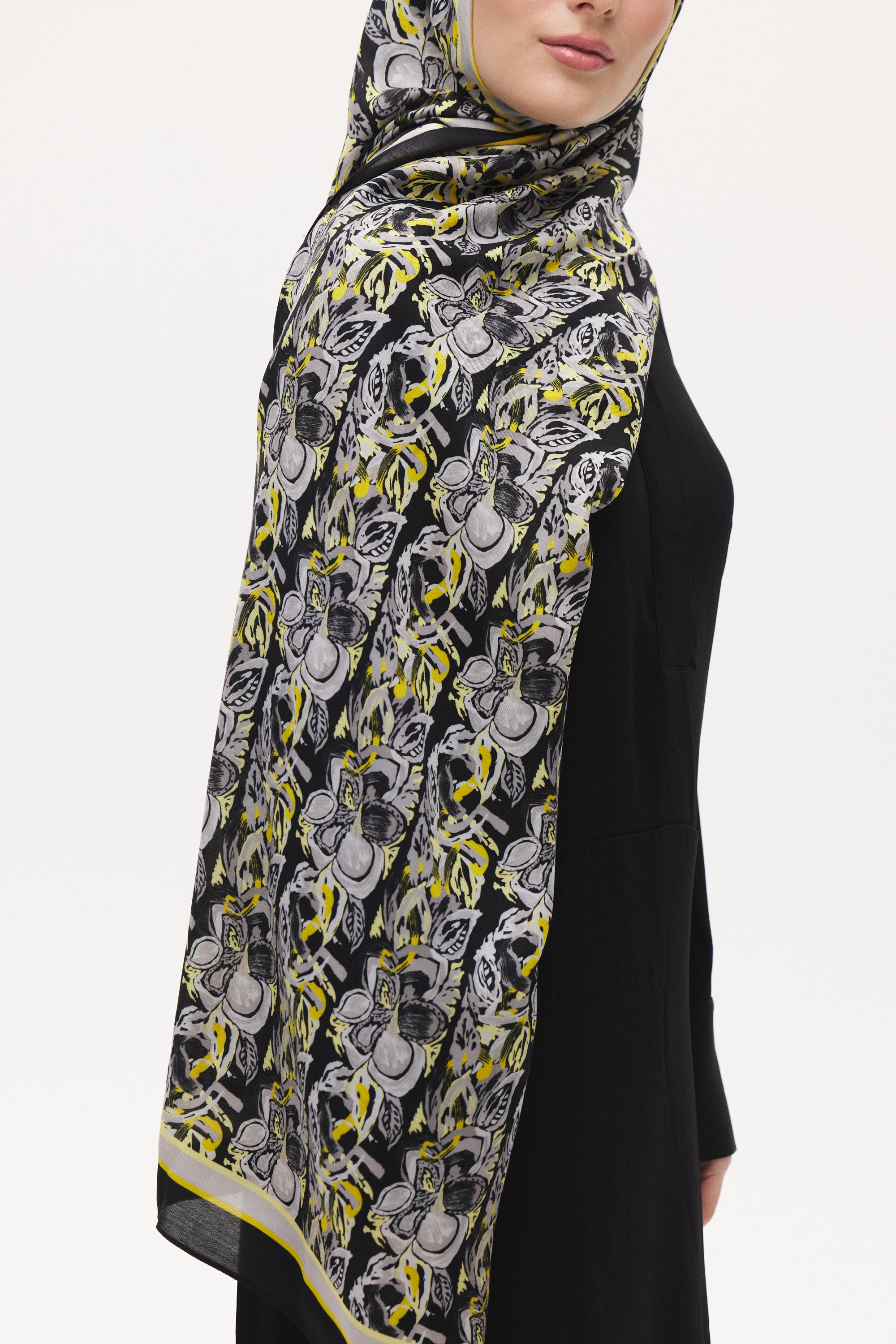Armony desenin akışkan çiçek ve yaprak formu şala hareketli ve dengeli bir görünüm kazandırır. Doğal ve sanatsal çizgileri sayesinde sade kombinleri tamamlayan zarif bir dokunuş sağlar.