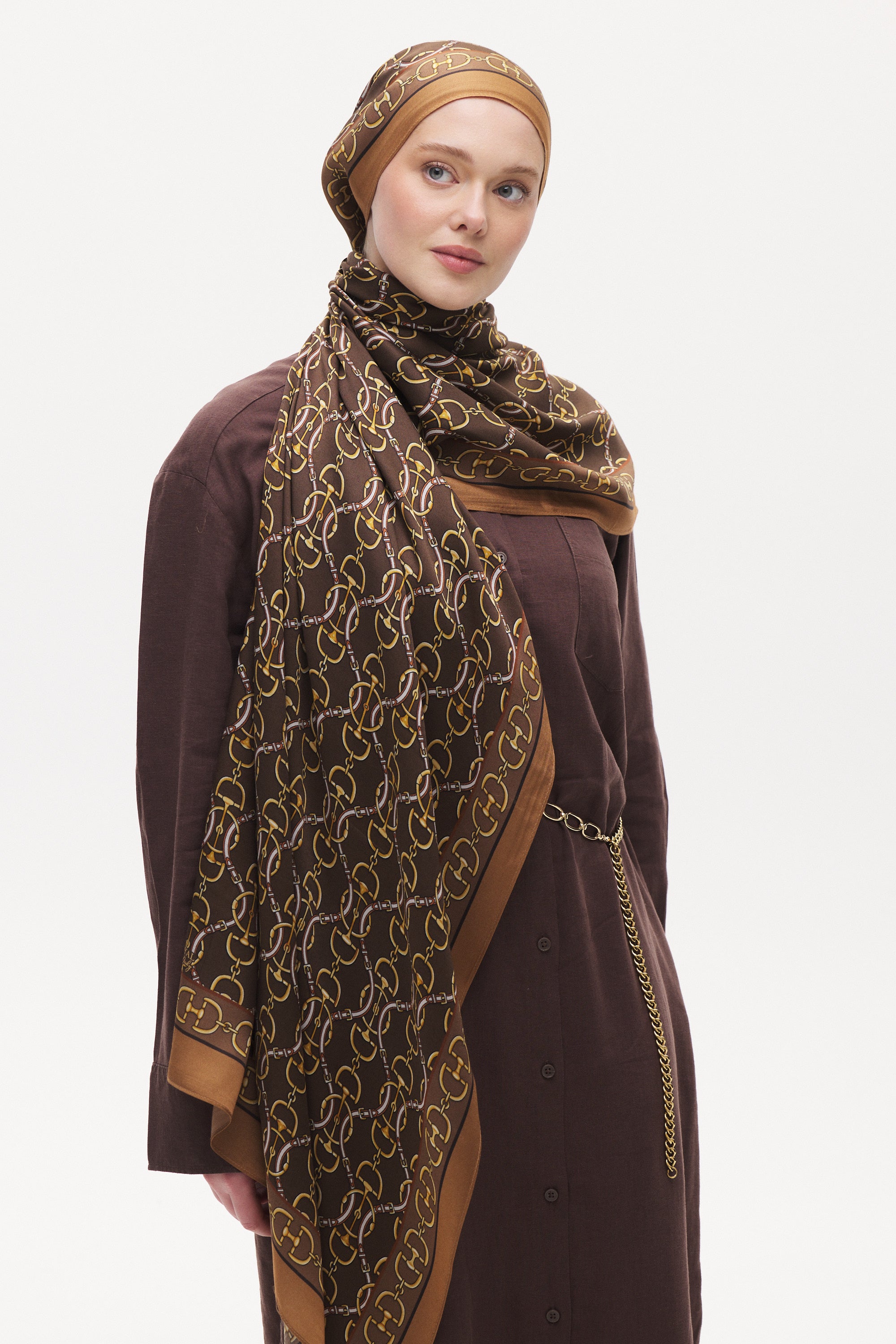 Zeyra Flow Cavallo Desen Floş - Viscon Şal - Bronz Kahve