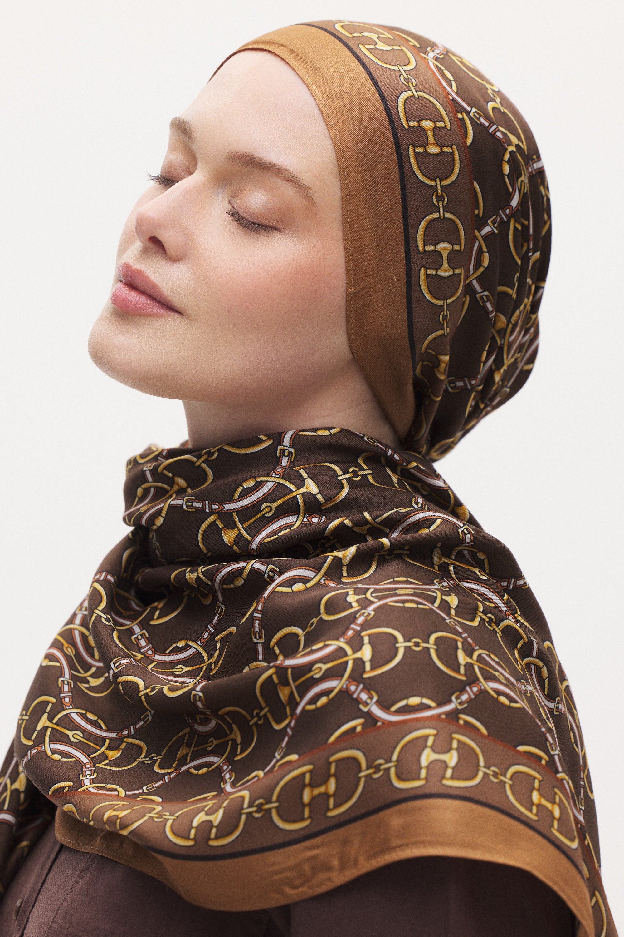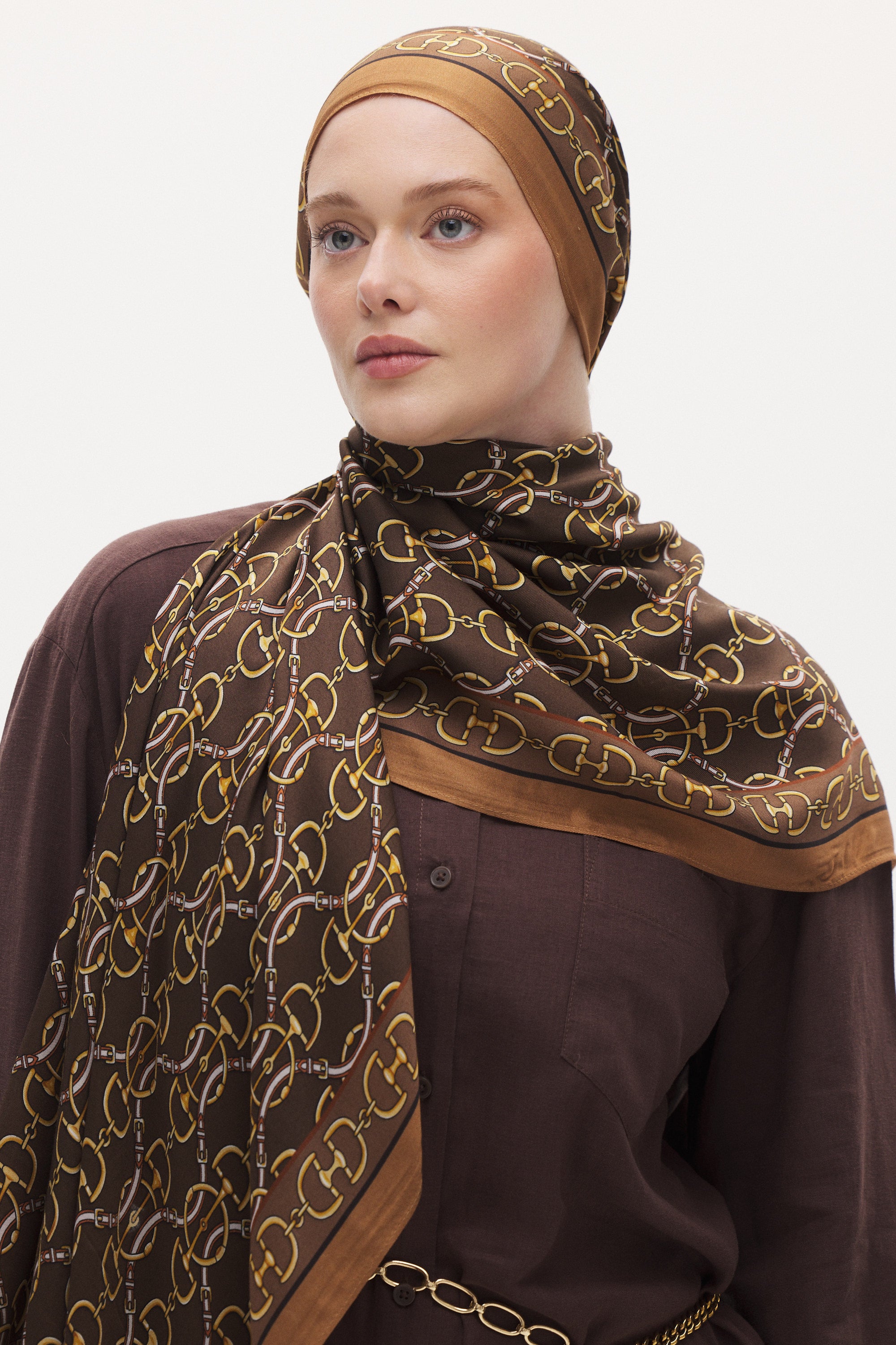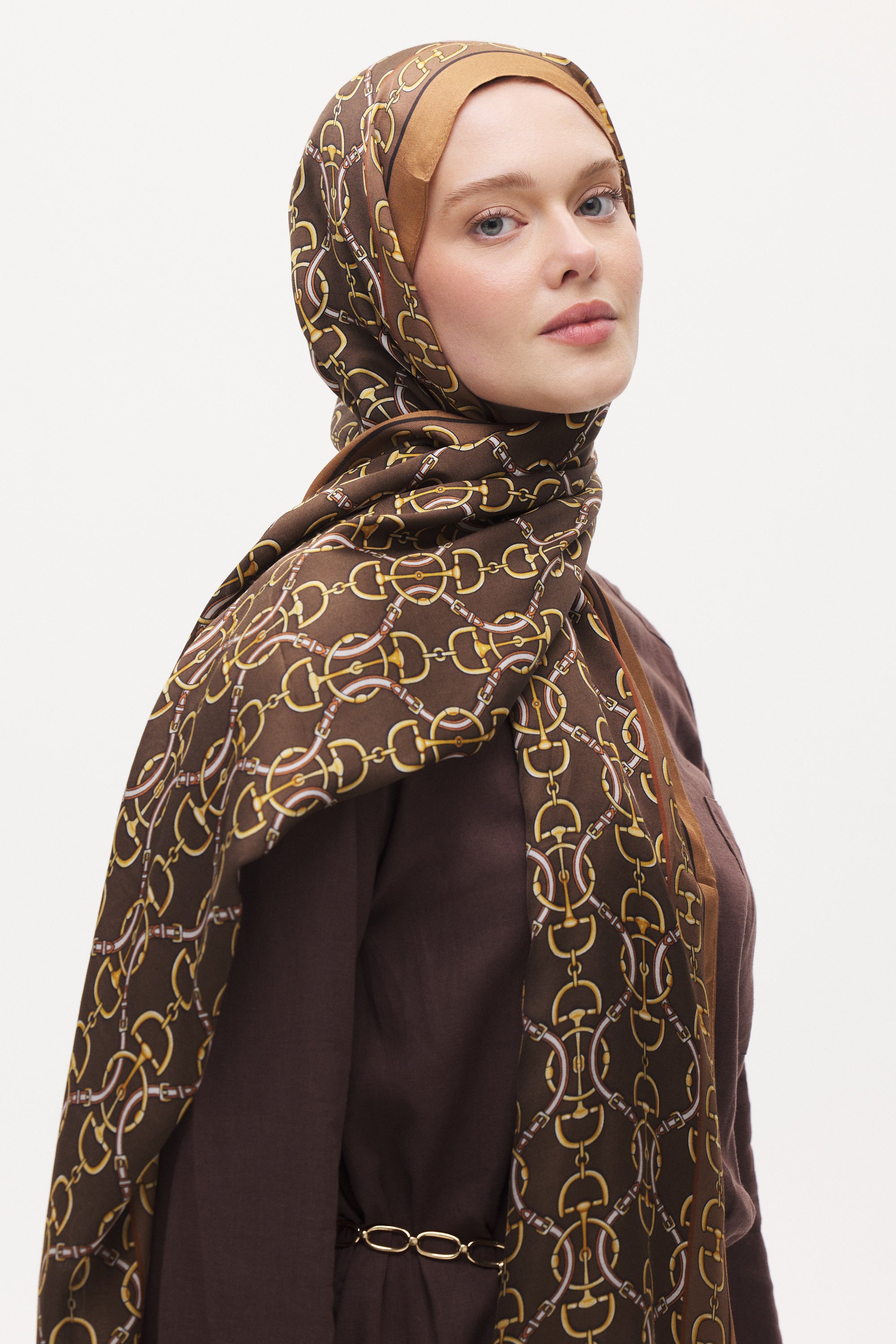 Cavallo desenin zarif zincir ve aksesuar formu şala güçlü ve klasik bir görünüm kazandırır. Dengeli desen yapısı sayesinde sade kombinleri tamamlayan şık ve zamansız bir stil sunar.