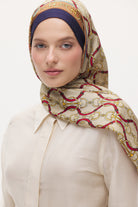 Cavallo desenin zarif zincir ve aksesuar formu şala güçlü ve klasik bir görünüm kazandırır. Dengeli desen yapısı sayesinde sade kombinleri tamamlayan şık ve zamansız bir stil sunar.