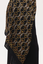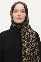 Cavallo desenin zarif zincir ve aksesuar formu şala güçlü ve klasik bir görünüm kazandırır. Dengeli desen yapısı sayesinde sade kombinleri tamamlayan şık ve zamansız bir stil sunar.