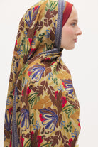 Zeyra Flow Floren Desen Floş - Viscon Şal - Bej - Bordo