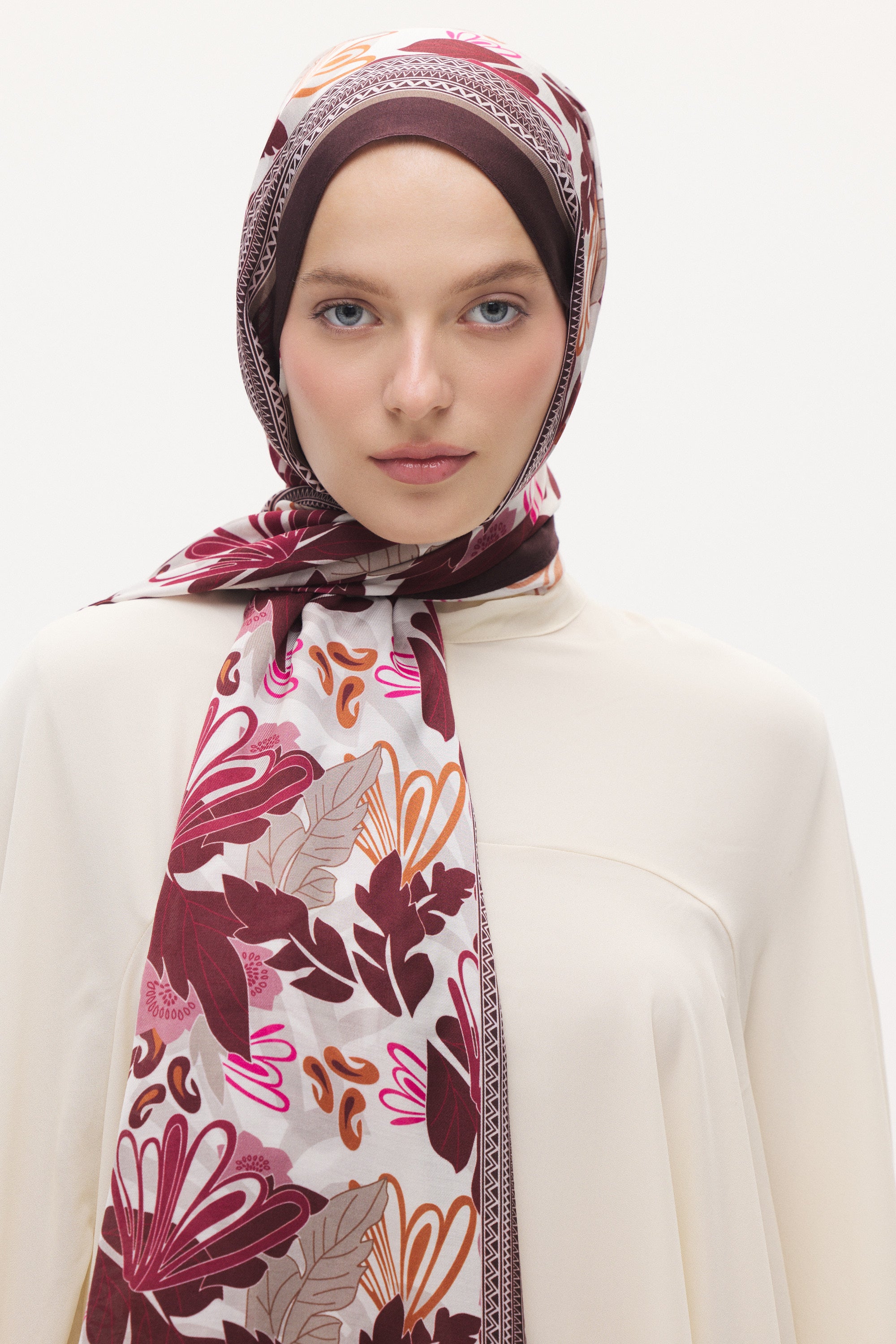 Zeyra Flow Floren Desen Floş - Viscon Şal - Burgundy