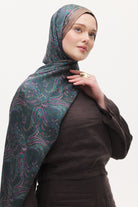 Zeyra Flow Safir Desen Floş - Viscon Şal - Vizon-Zümrüt